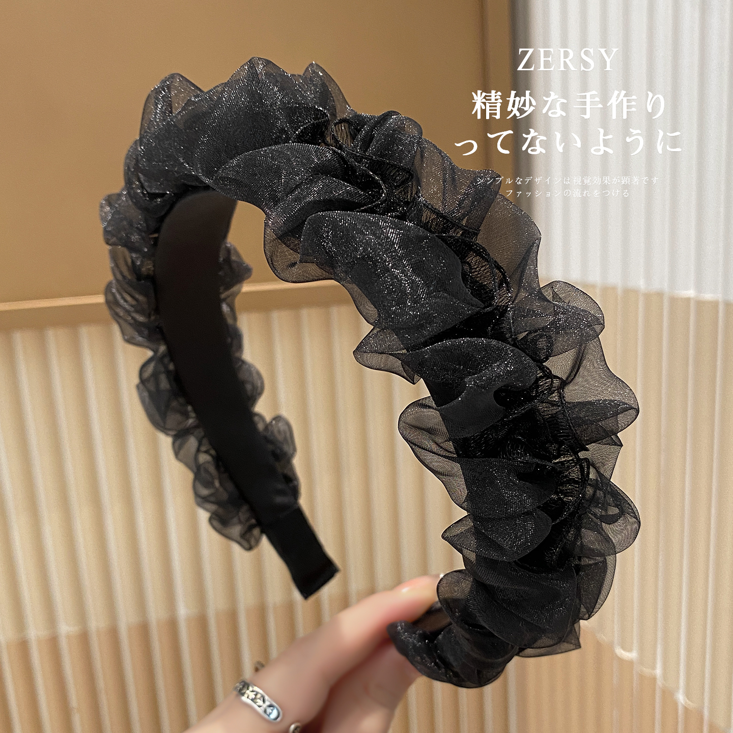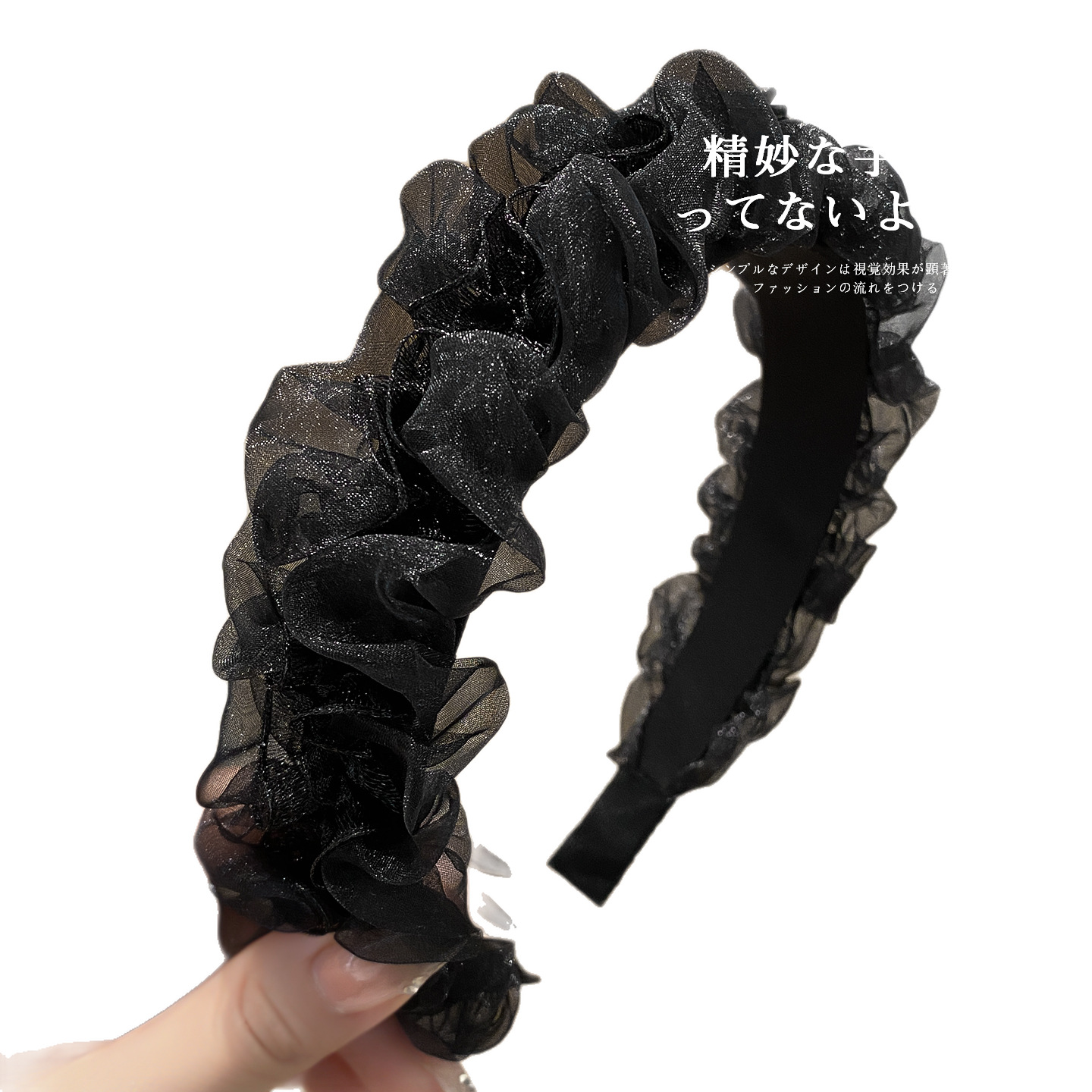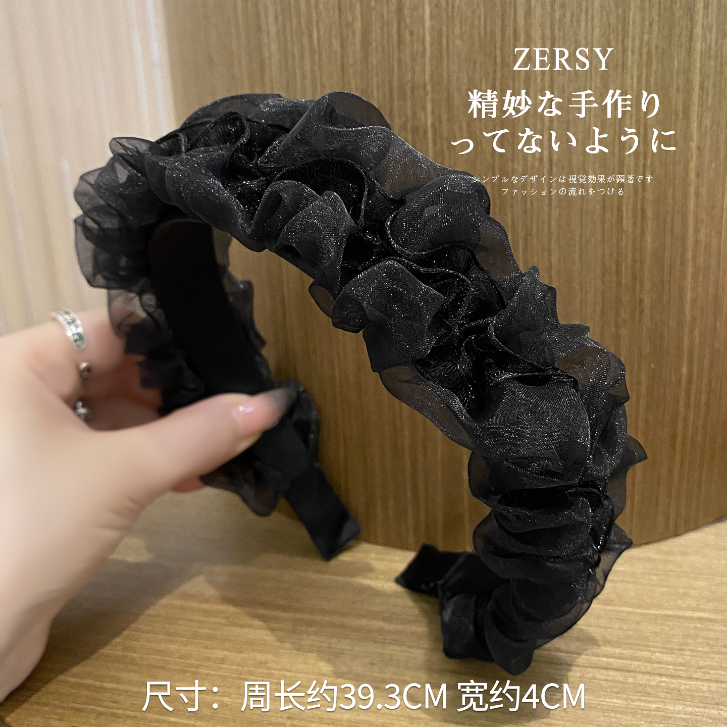 高颅顶褶皱发箍女网红洗脸防滑发带显脸小蝴蝶结宽边遮白发头箍