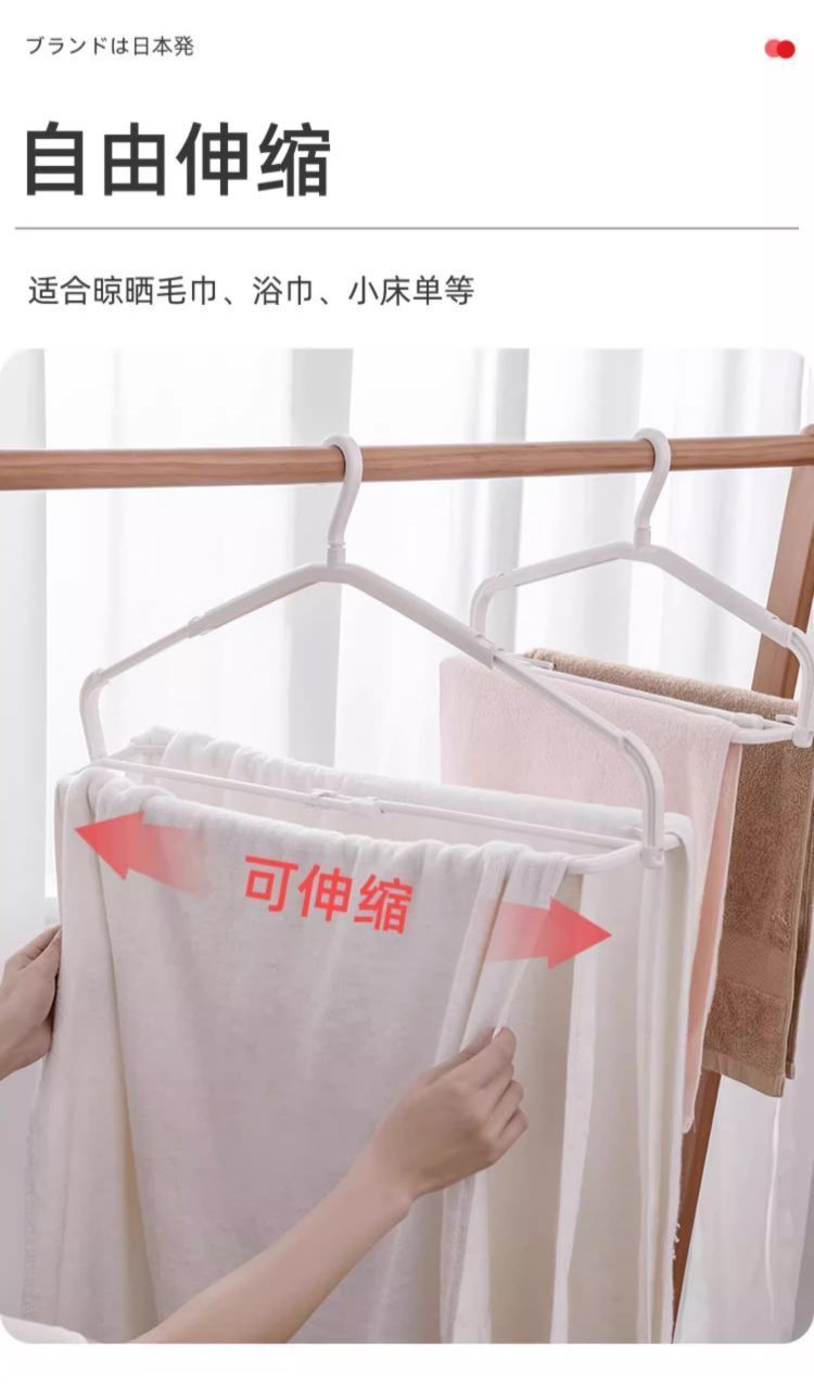 整理师推荐可伸缩大衣架家用阳台晾晒浴巾被子床单无痕防滑可折叠