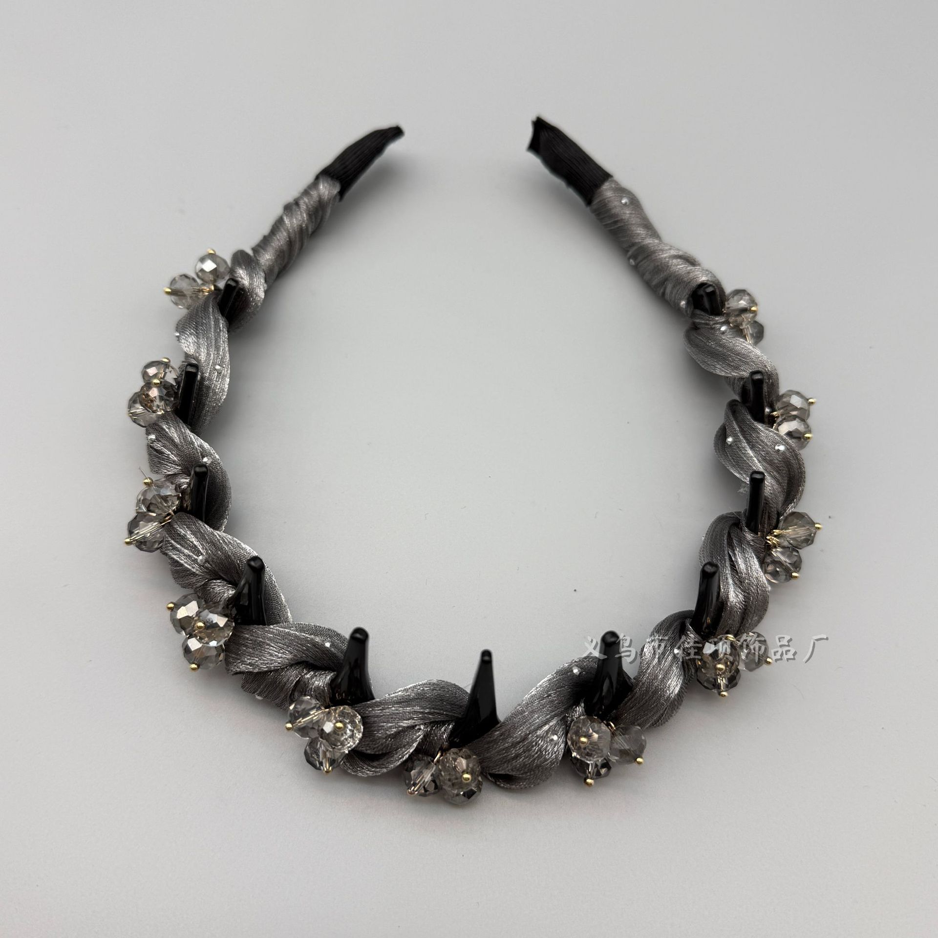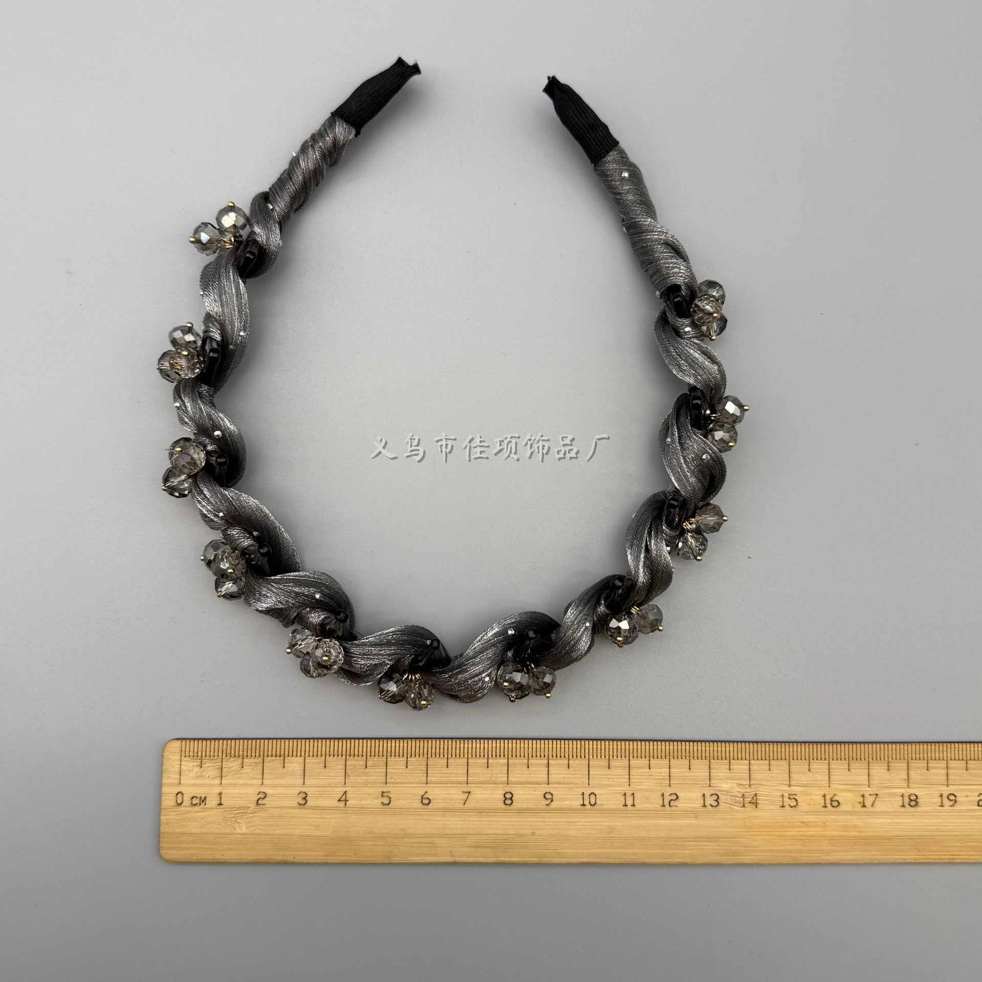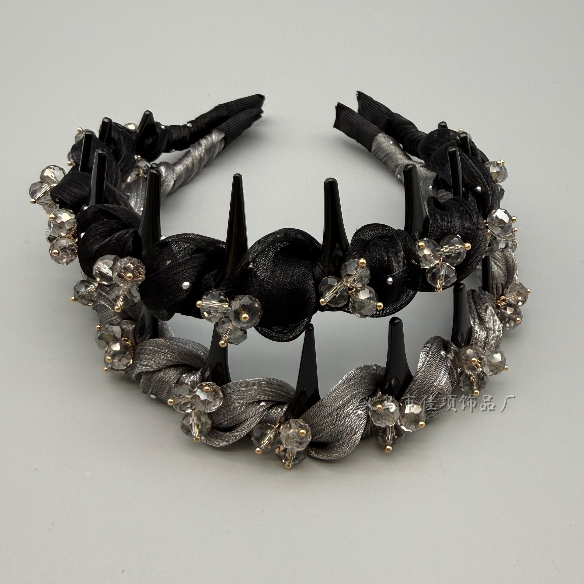 新款烫钻纱布水晶发箍轻奢蓬松气质带齿梳防滑设计感发饰头饰头箍