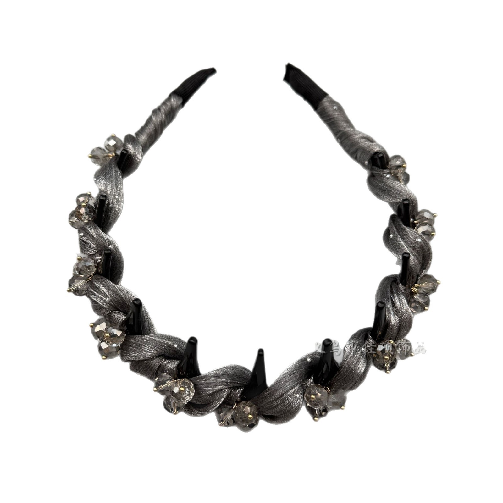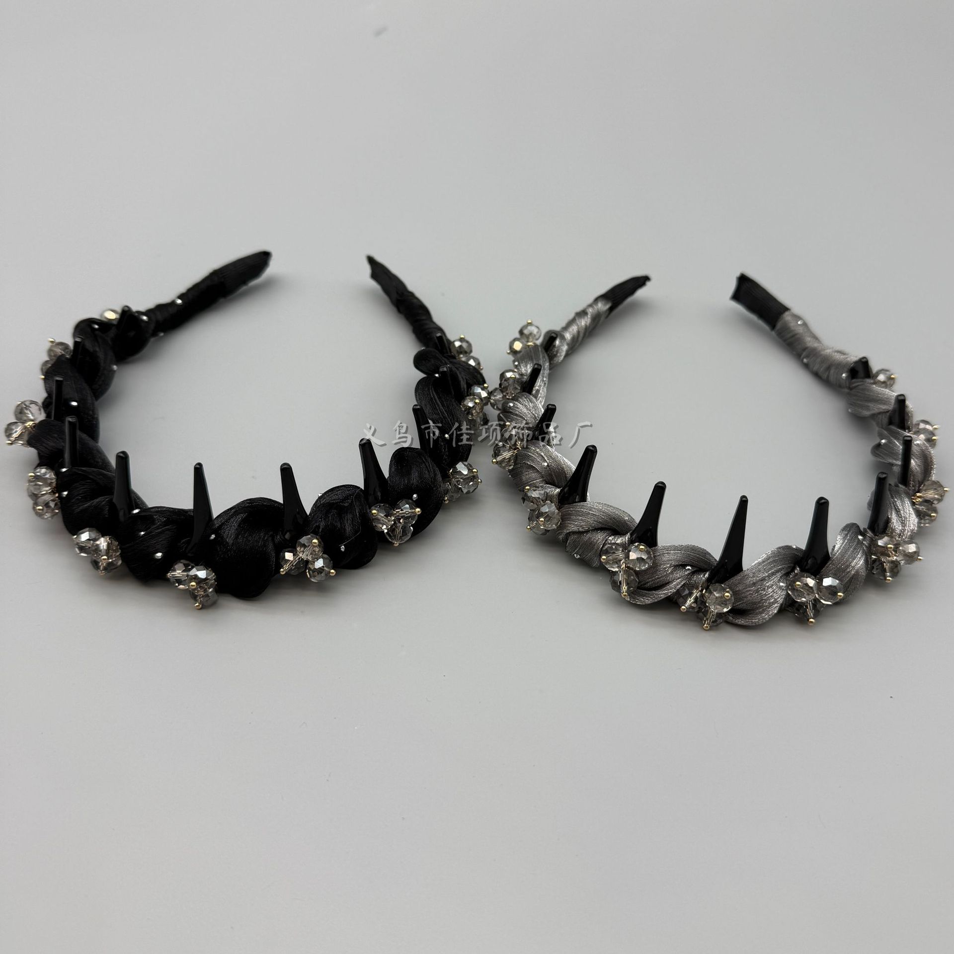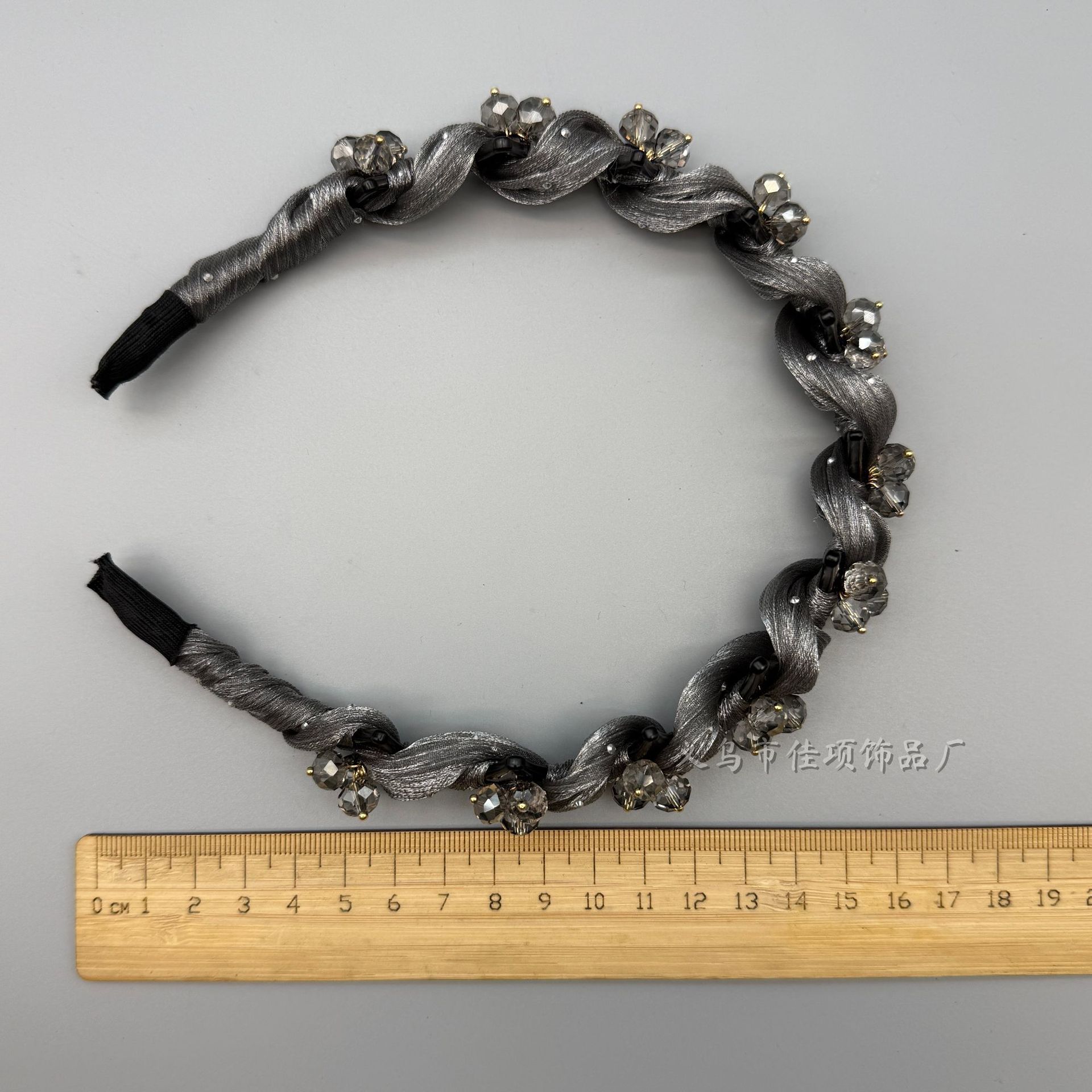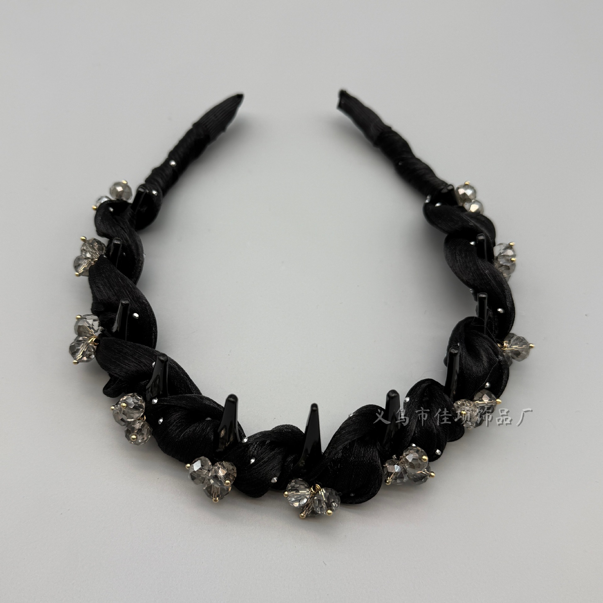 新款烫钻纱布水晶发箍轻奢蓬松气质带齿梳防滑设计感发饰头饰头箍