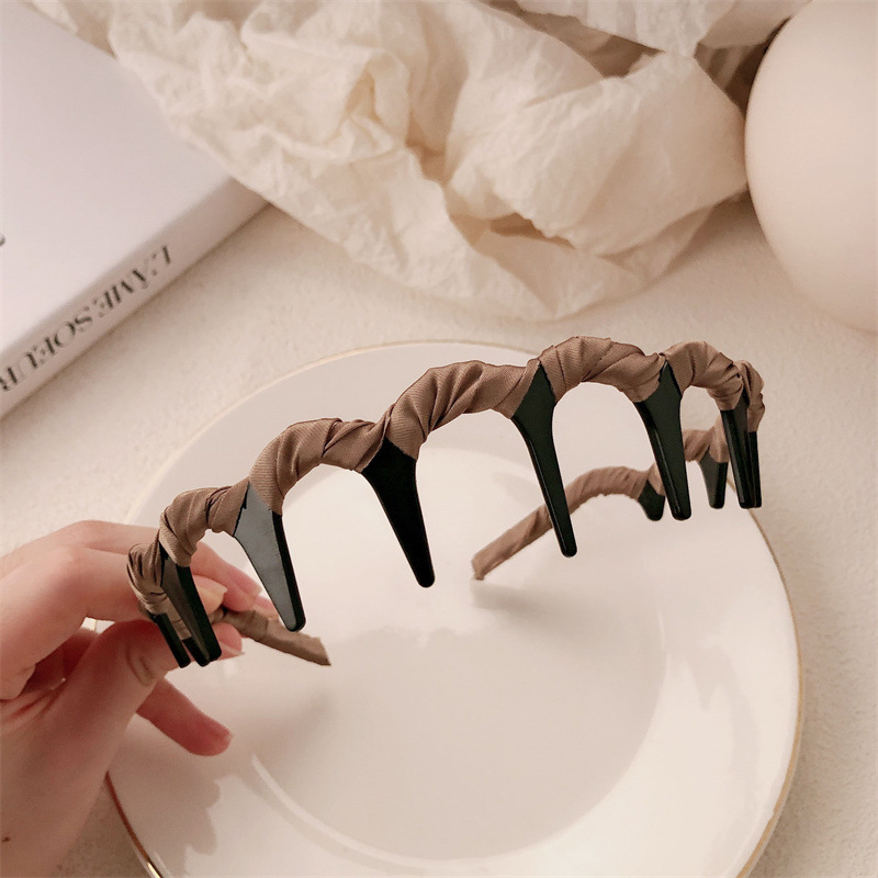 新款发箍夏季女洗脸发卡波浪蓬松纹理感带齿梳碎发整理发箍防滑