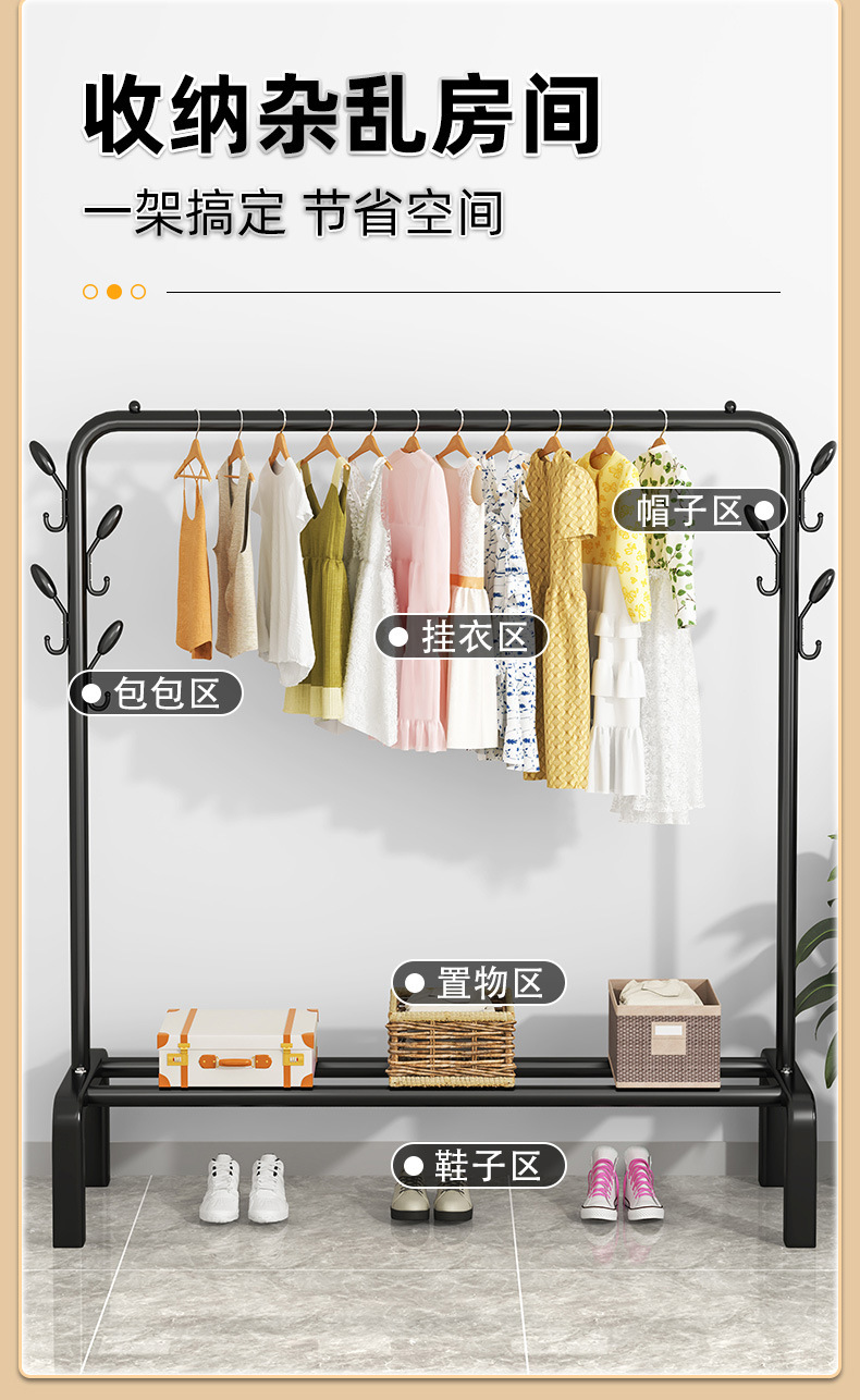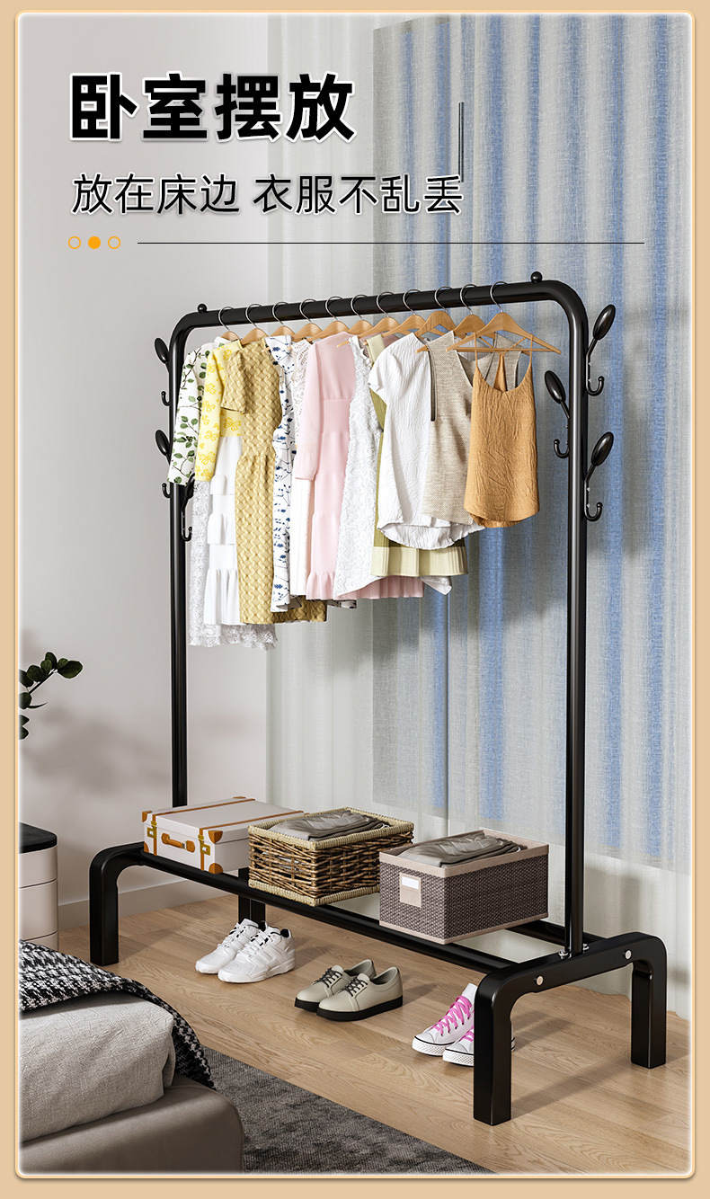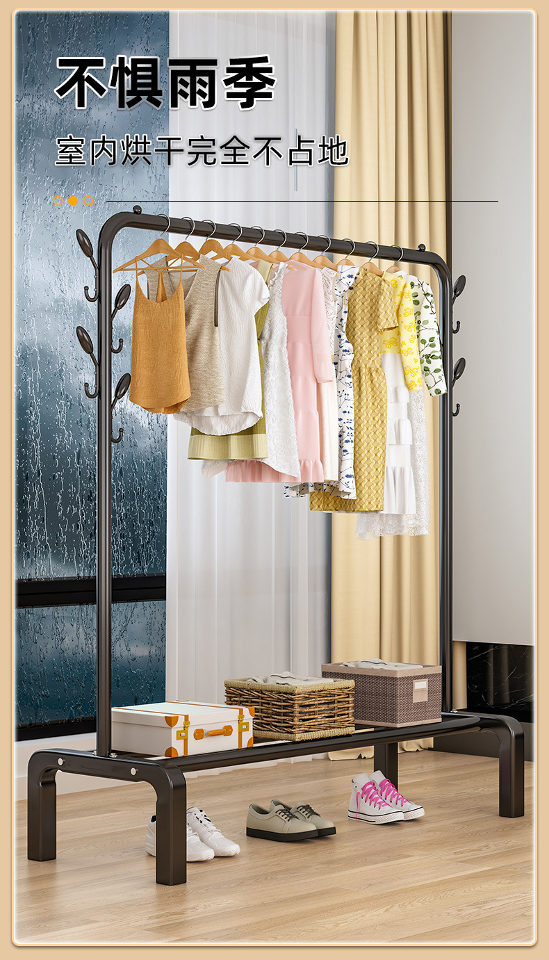 简易晾衣架落地家用挂衣架卧室宿舍折叠凉衣杆室内阳台晒衣服架子