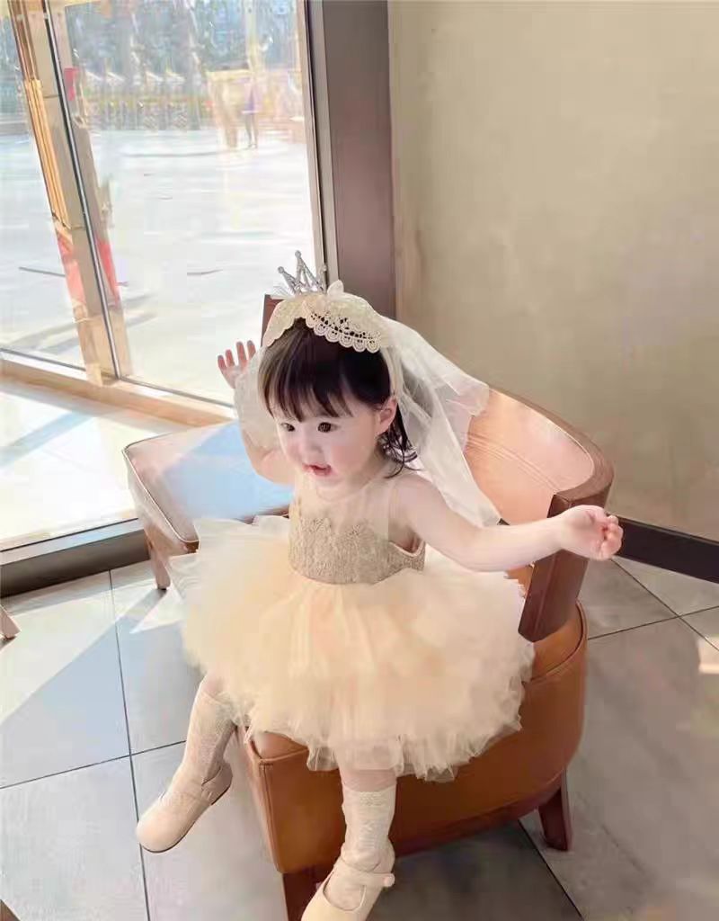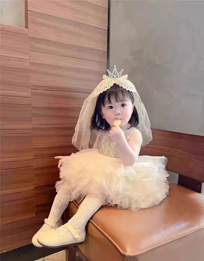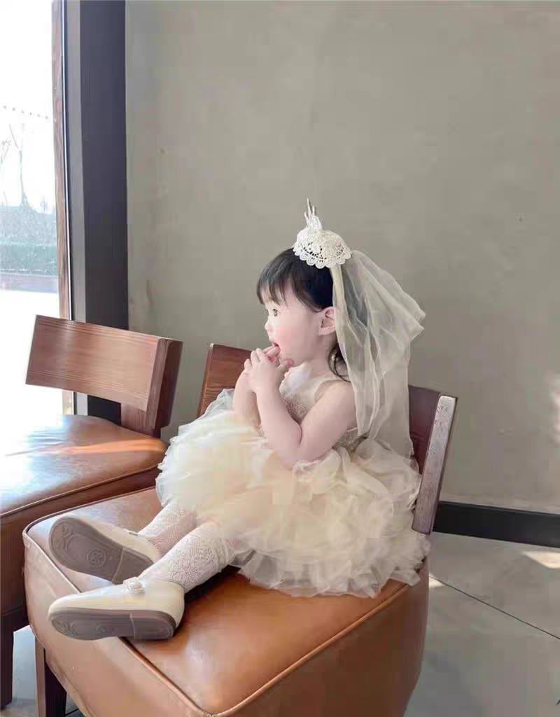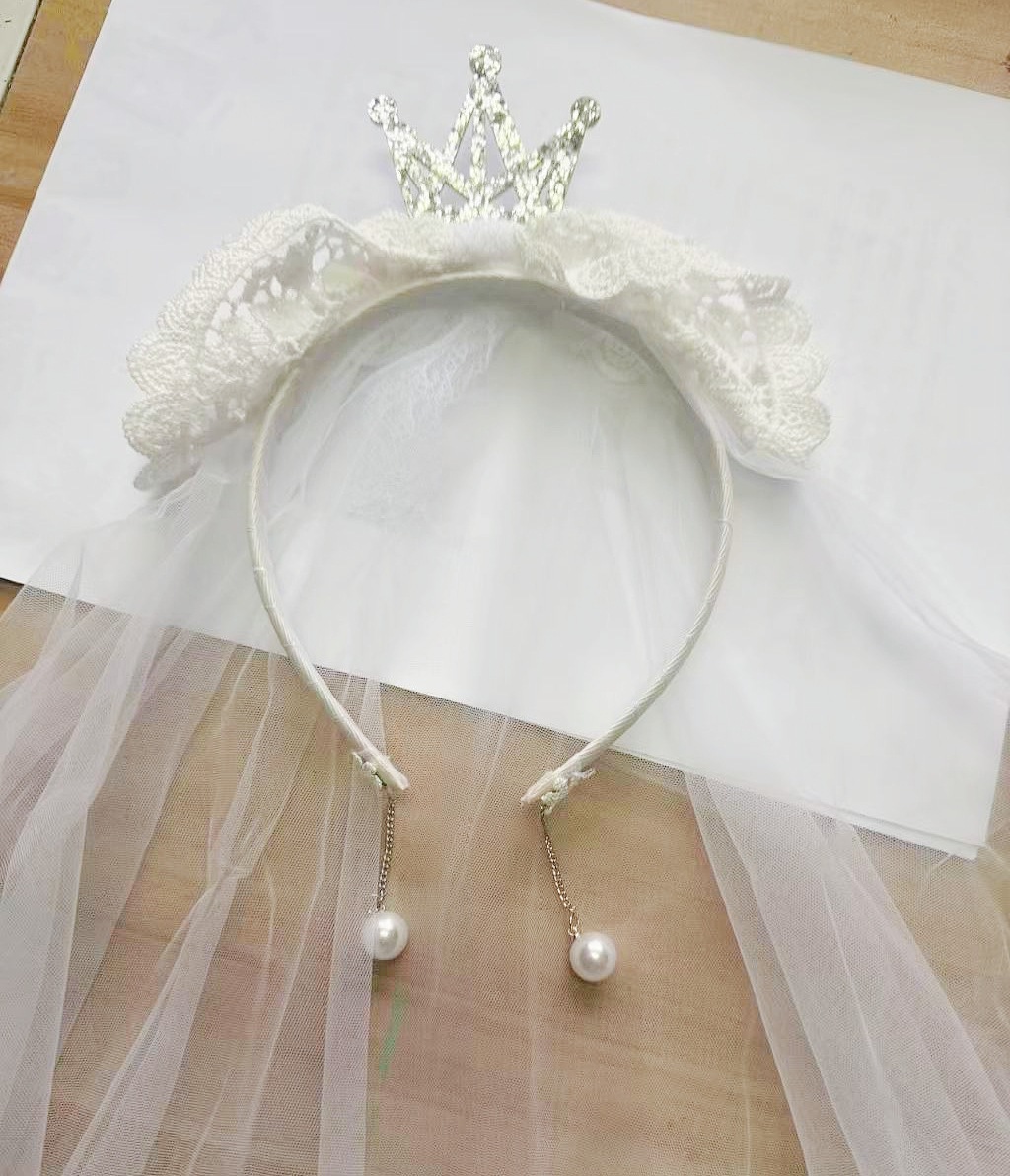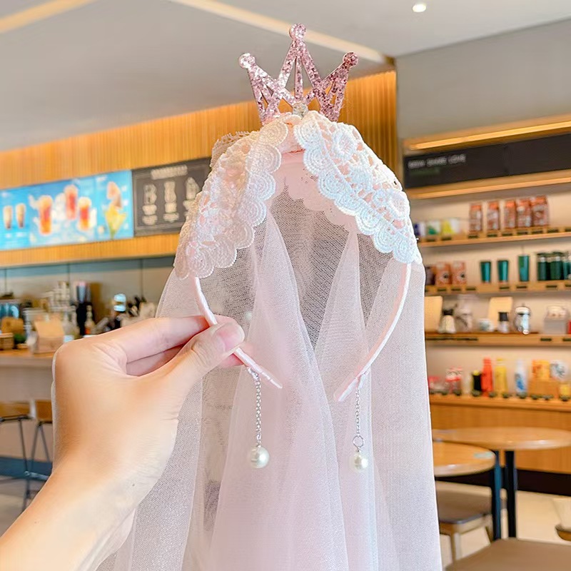 女童宝宝周岁生日头纱甜美公主头饰洛丽塔皇冠蕾丝蝴蝶结披沙发箍