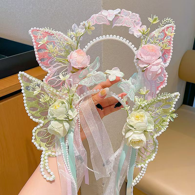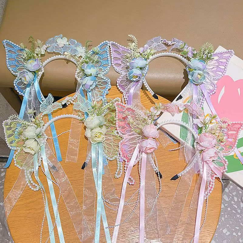 新款儿童蝴蝶发箍仙气公主流苏发饰女童头箍配饰头饰花仙子头饰