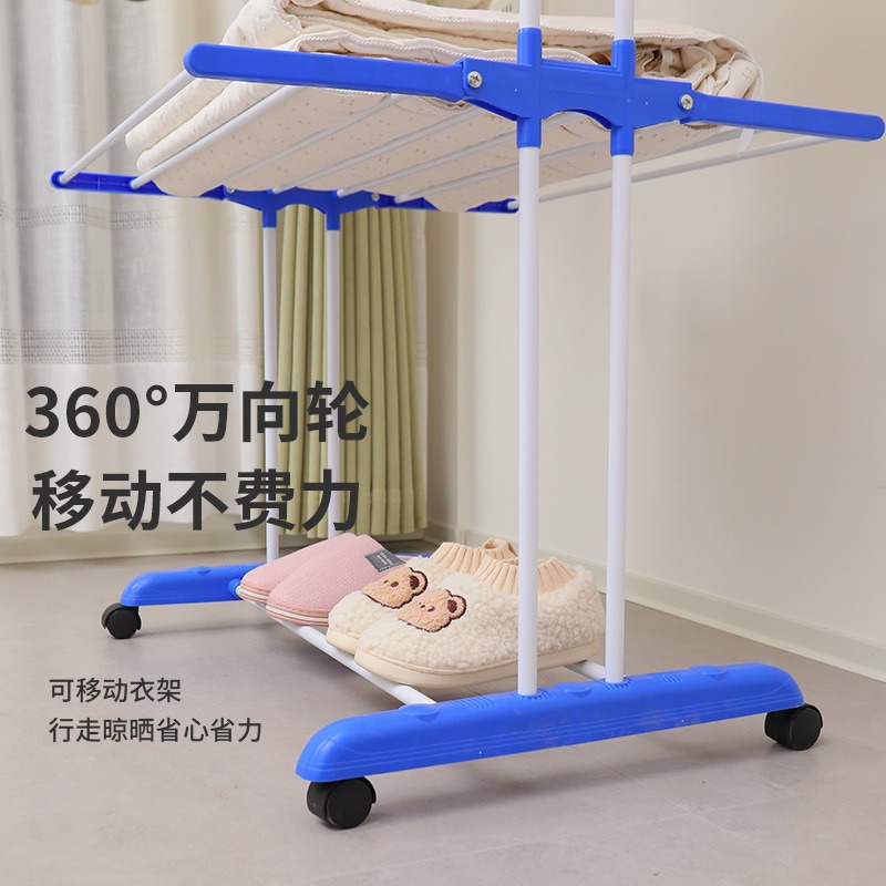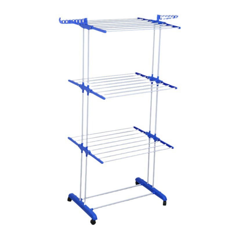 跨境多功能双杆落地晾衣架可移动三层毛巾架翼型可折叠伸缩晾晒架