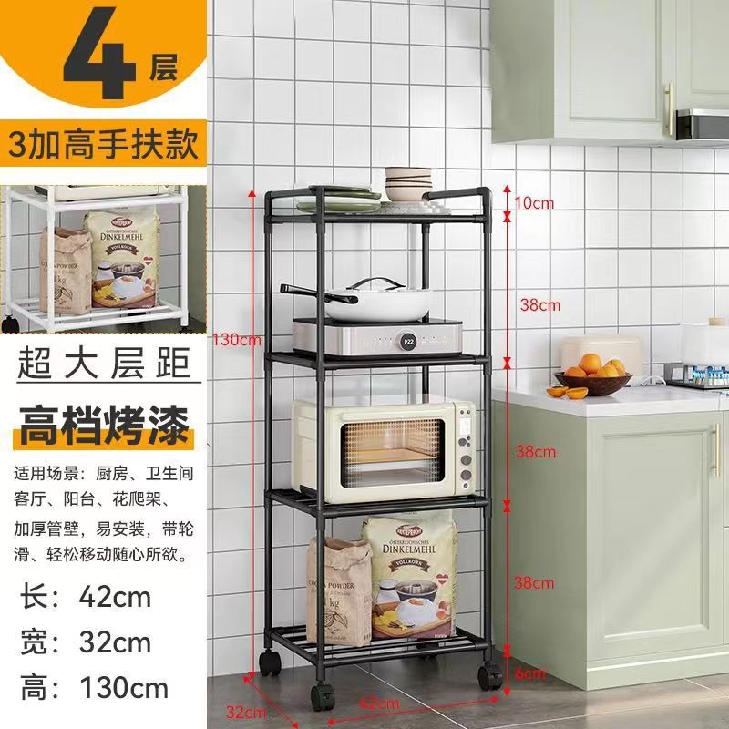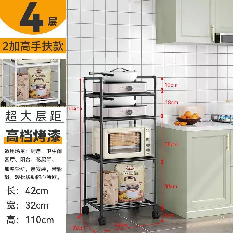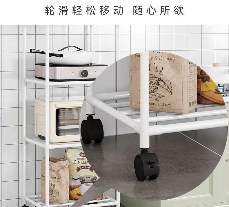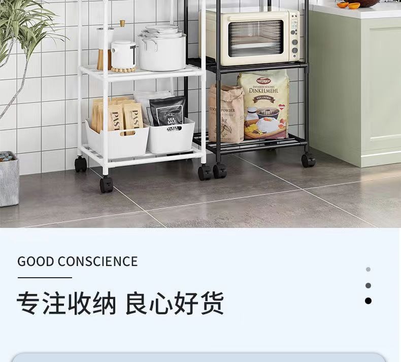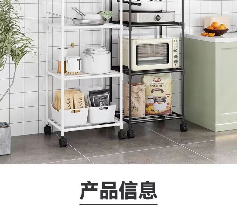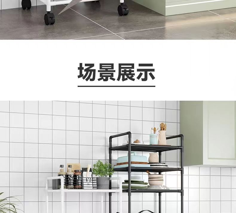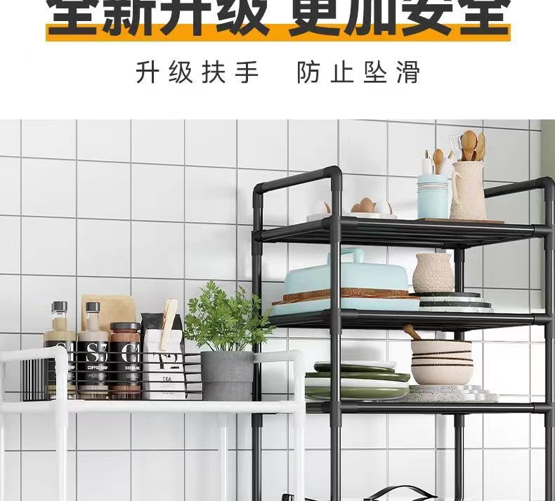 跨境厨房置物架小推车层新款时尚家用收纳架带滑轮微波炉置物架子