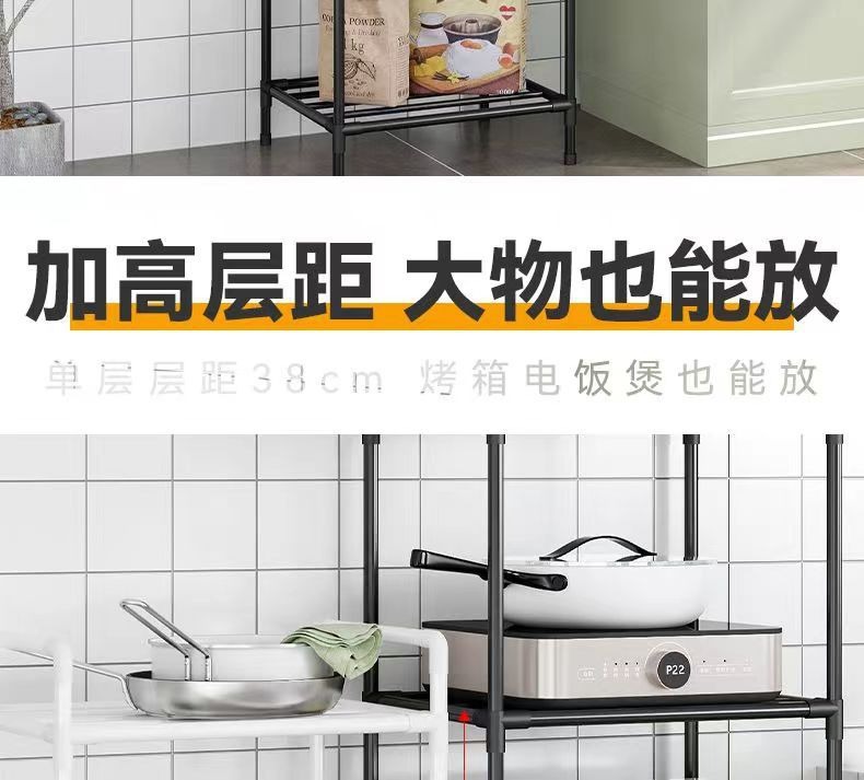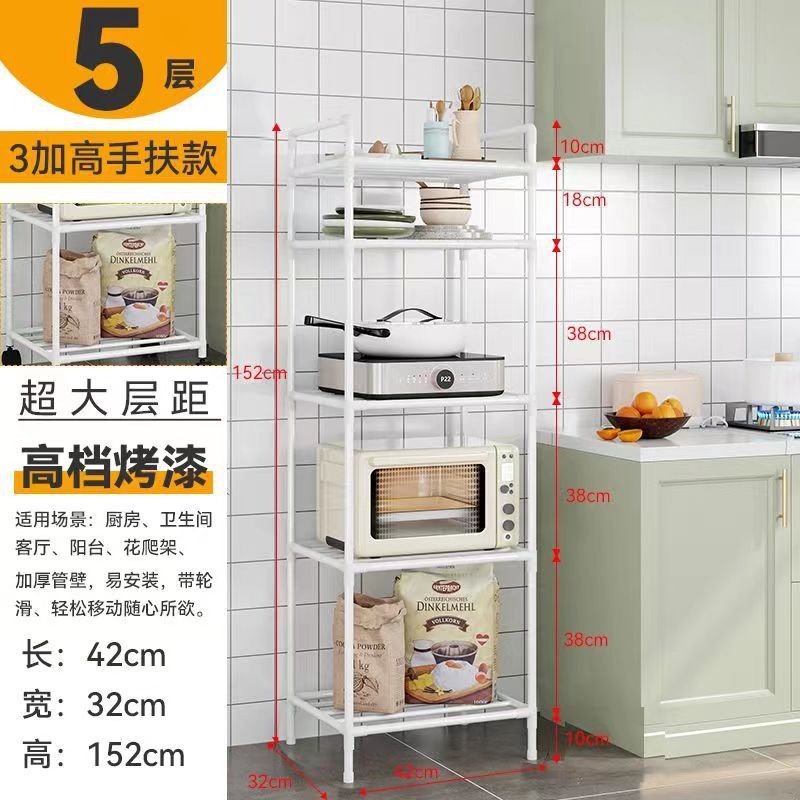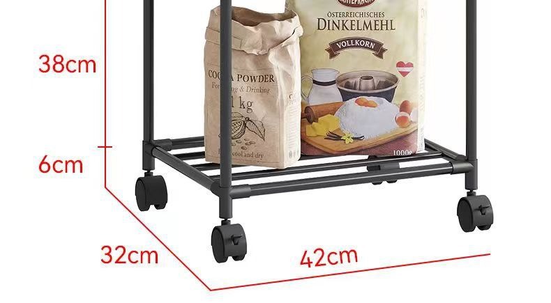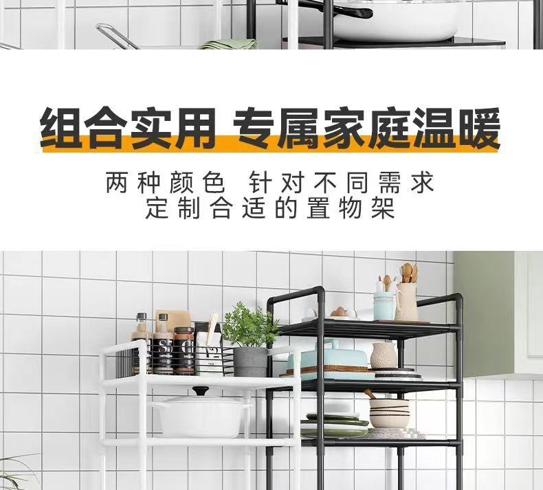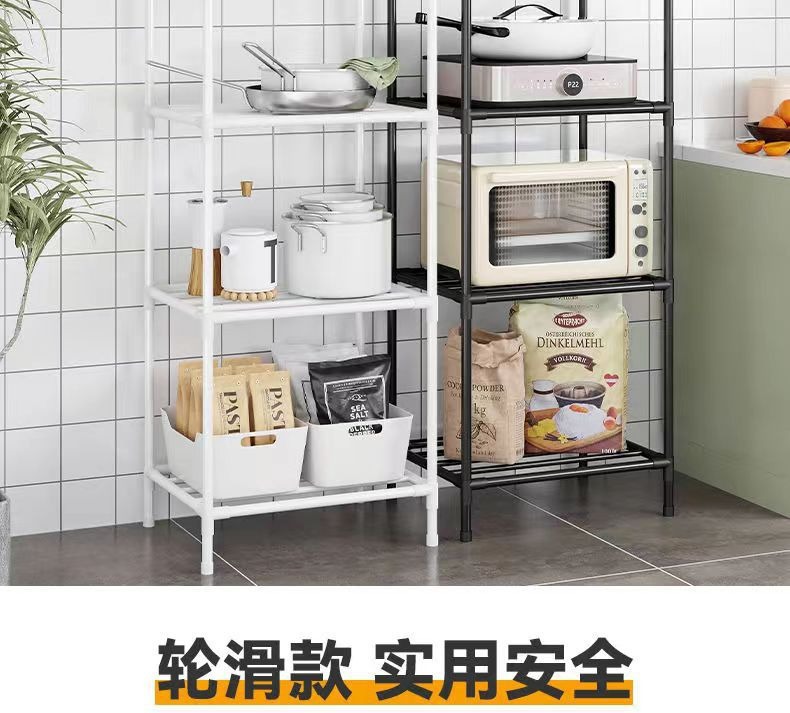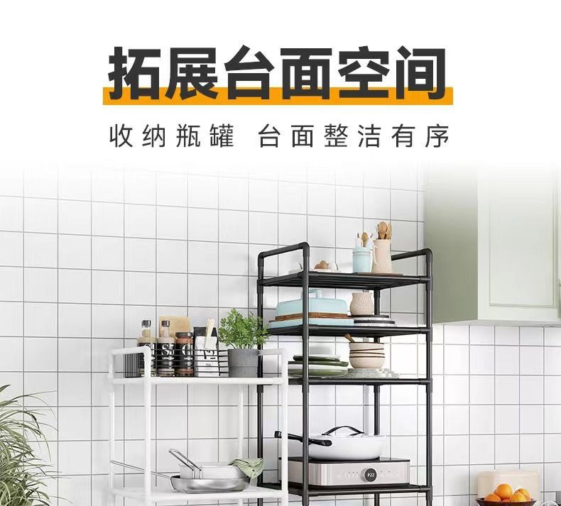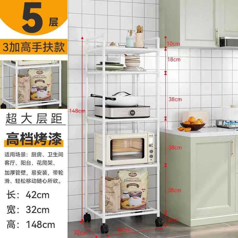 跨境厨房置物架小推车层新款时尚家用收纳架带滑轮微波炉置物架子