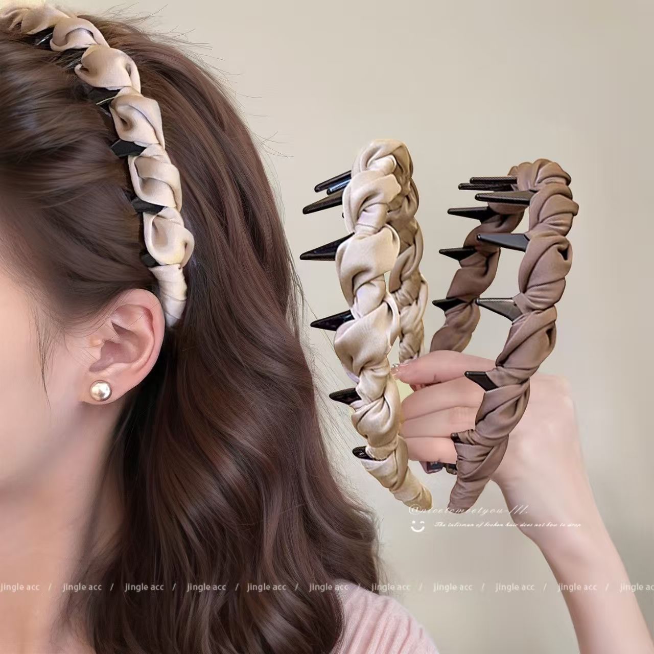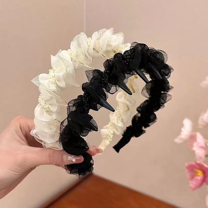 赫本风气质优雅发箍高级感带齿防滑洗脸发卡高颅顶头箍木耳边头饰
