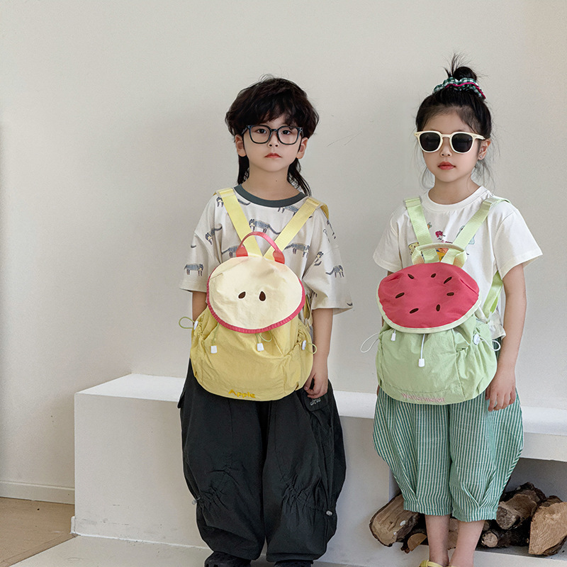 彩色多巴胺男女童双肩包夏季小清新宝宝水果书包个性抽绳儿童背包