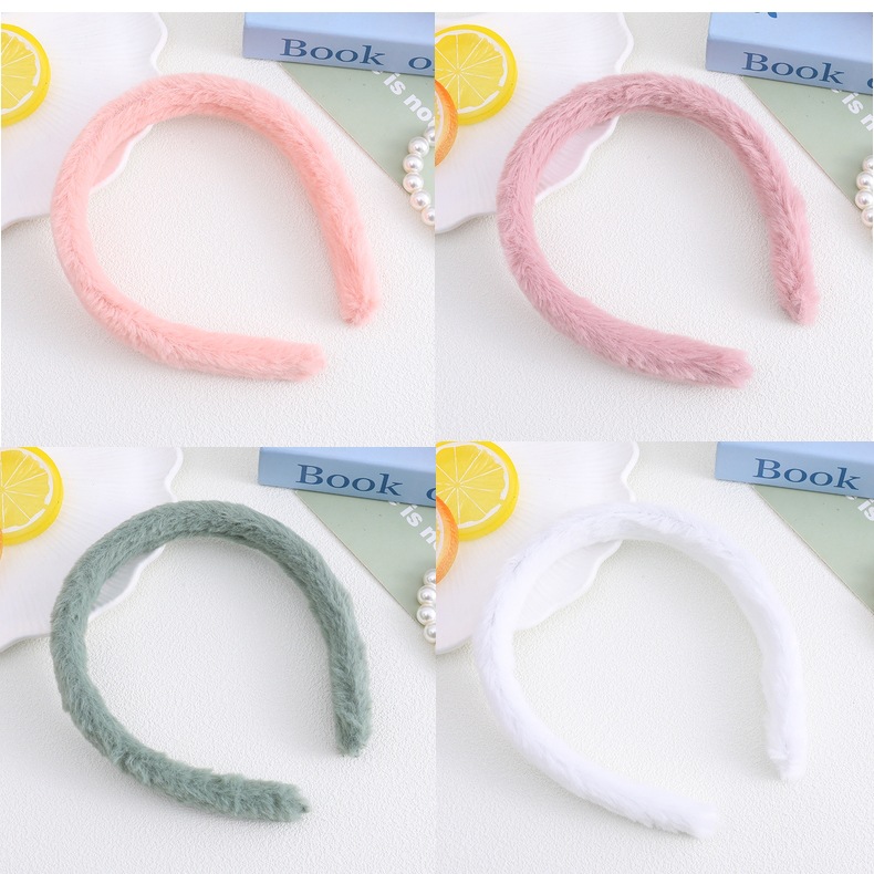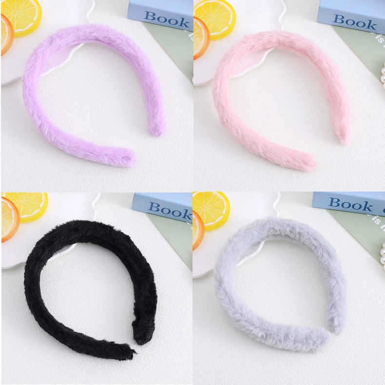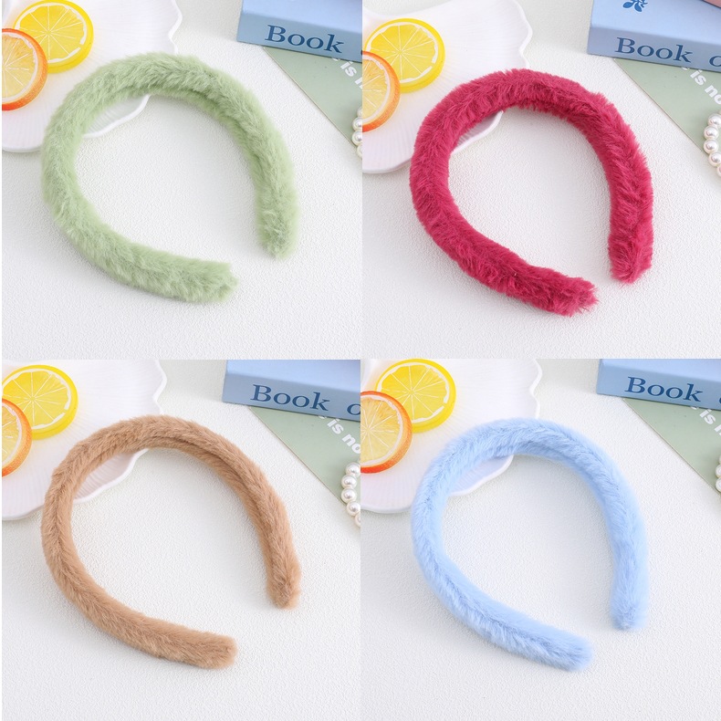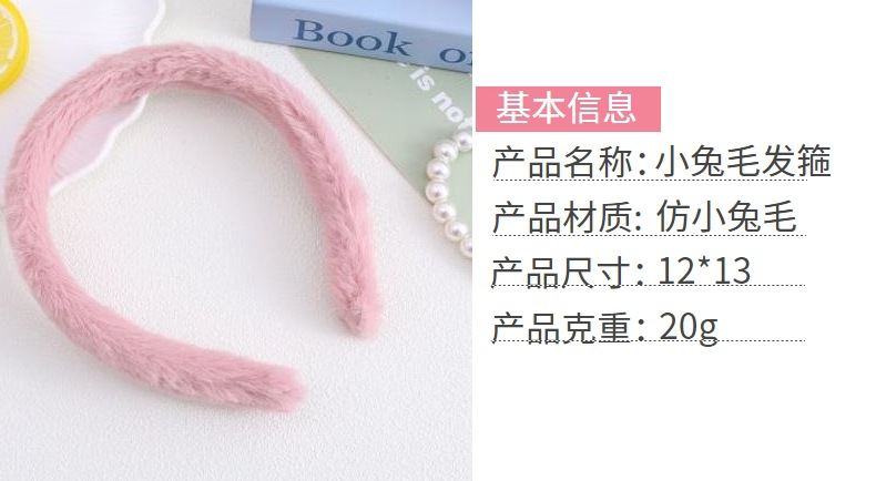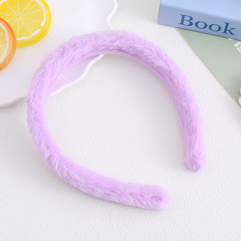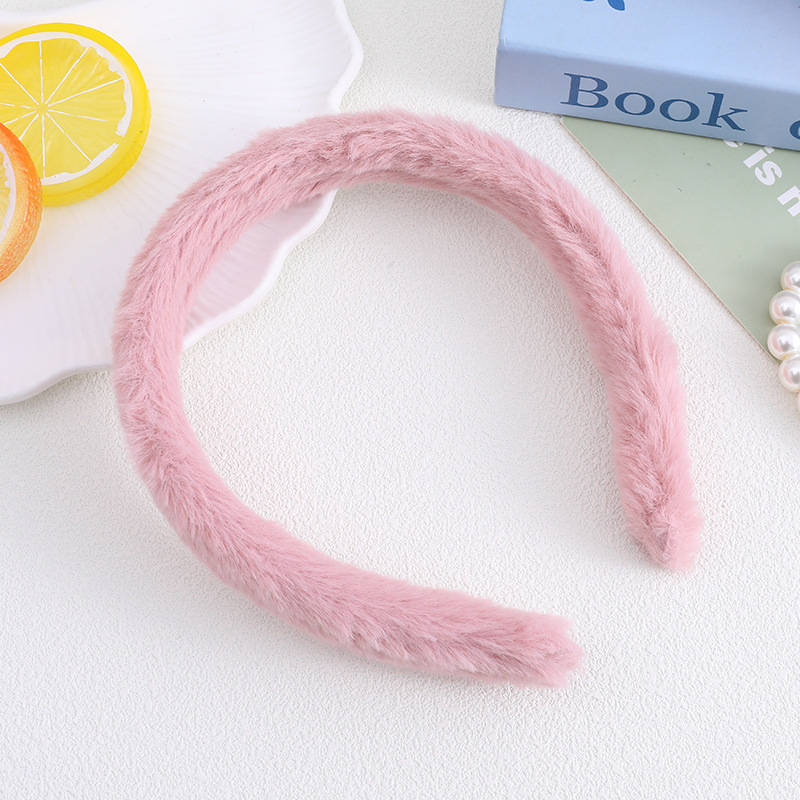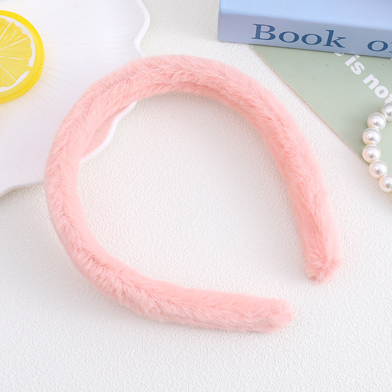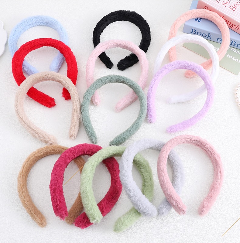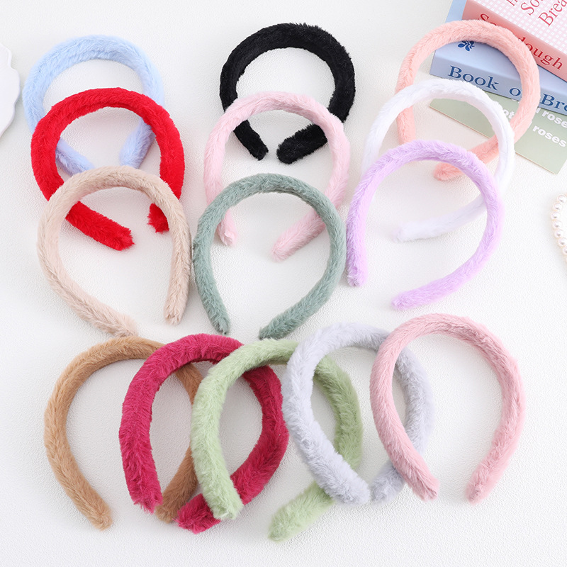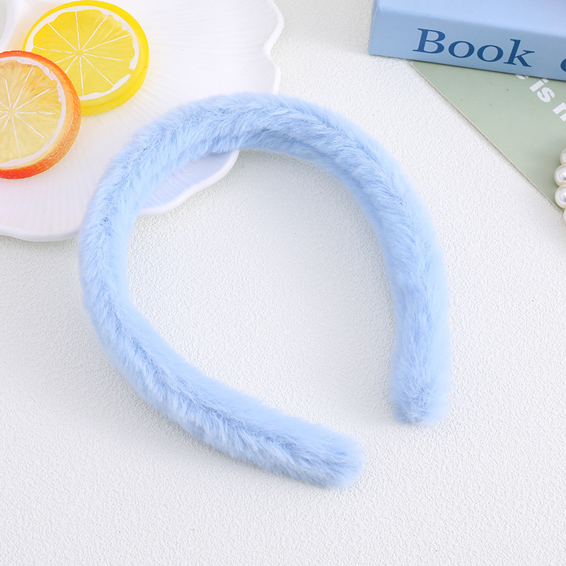 跨境热销高颅顶兔毛毛绒发箍洗脸化妆头箍简约糖果色压发头饰批发