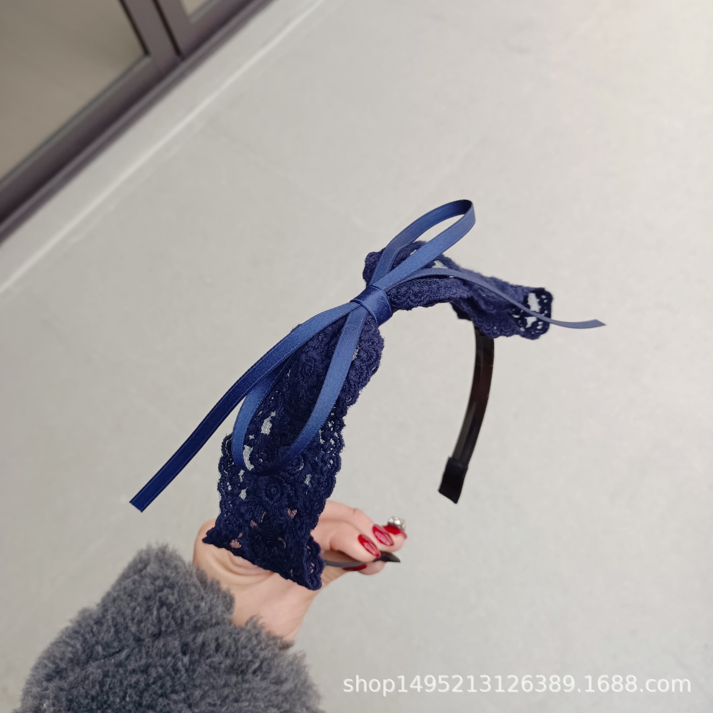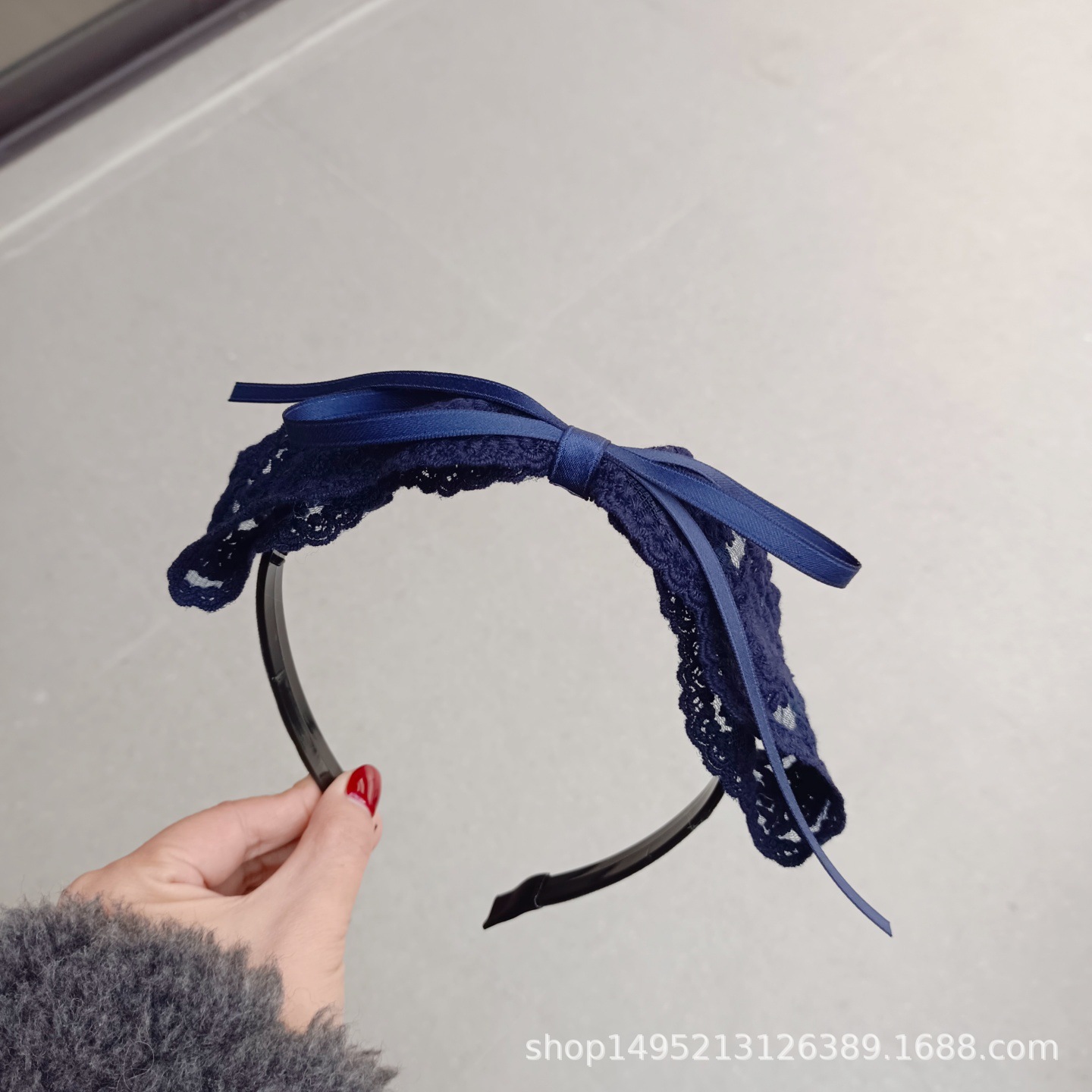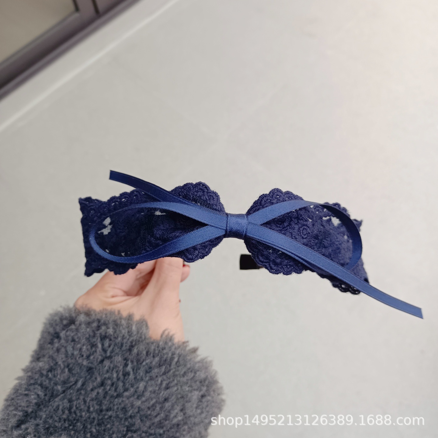 甜美儿童中小学生少女发箍藏蓝色蕾丝蝴蝶结压发发箍塑料带齿头箍