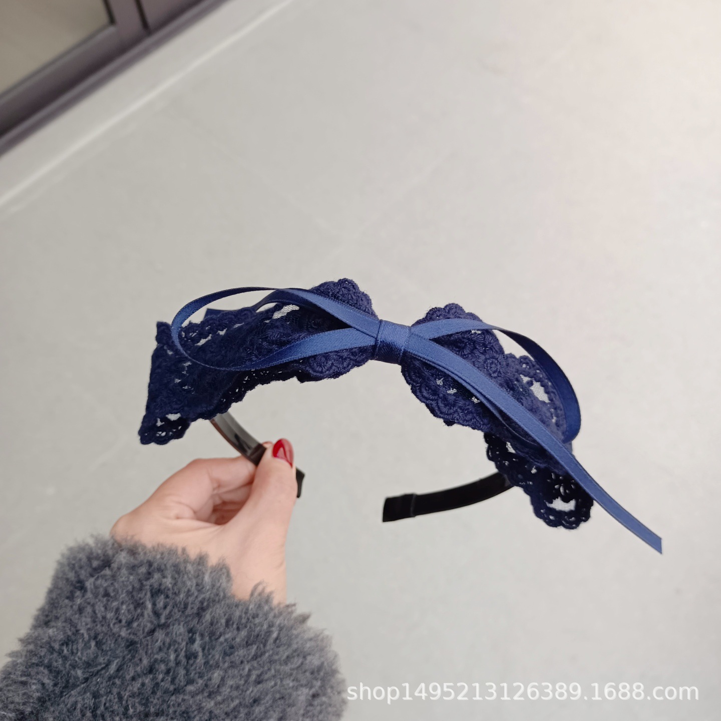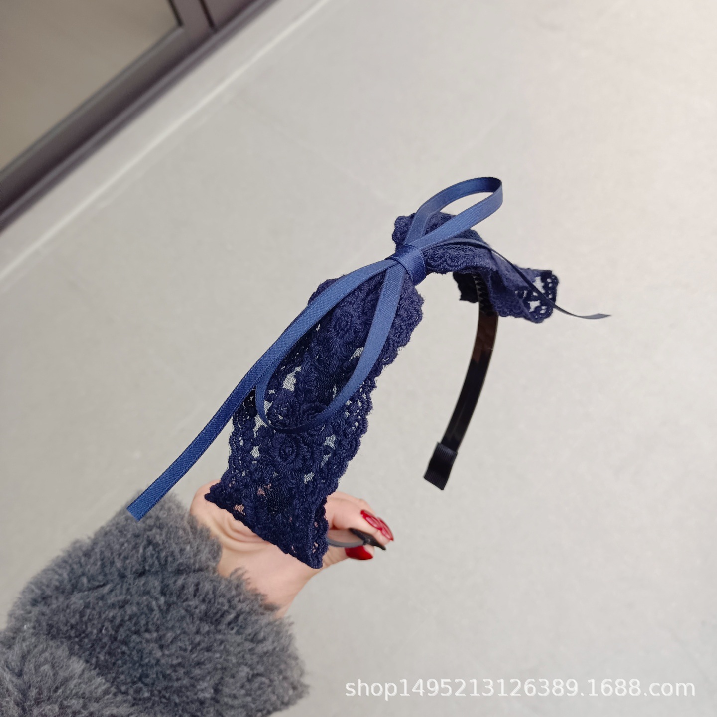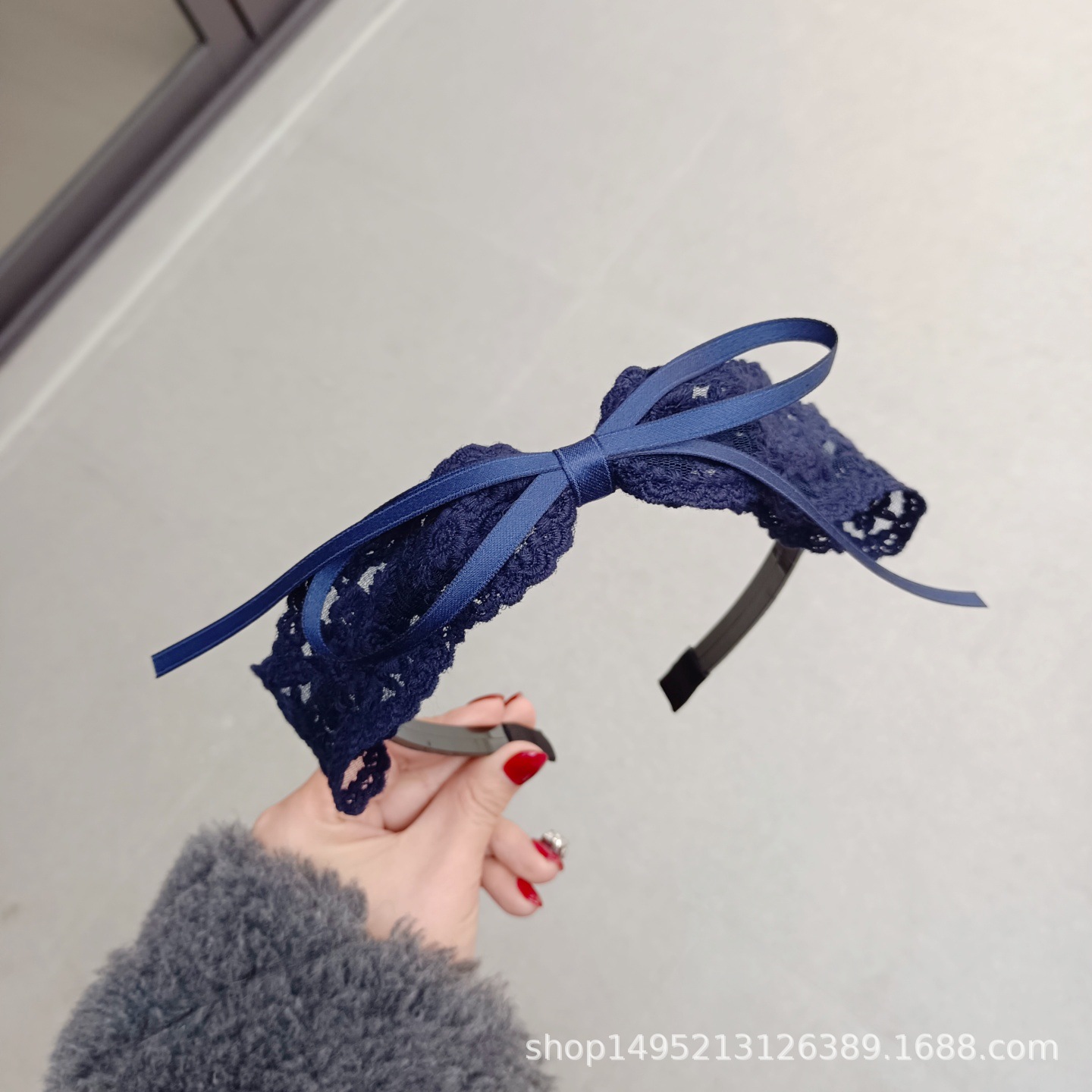 甜美儿童中小学生少女发箍藏蓝色蕾丝蝴蝶结压发发箍塑料带齿头箍