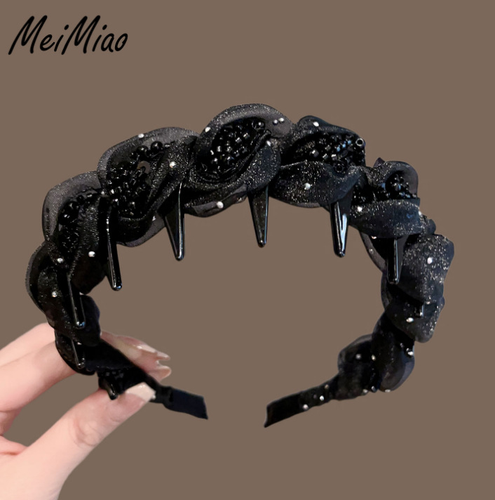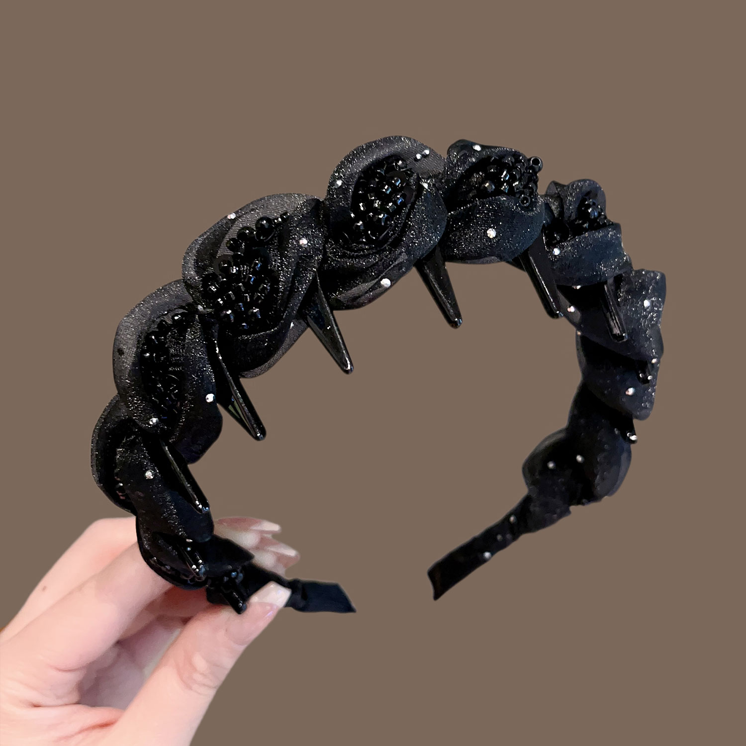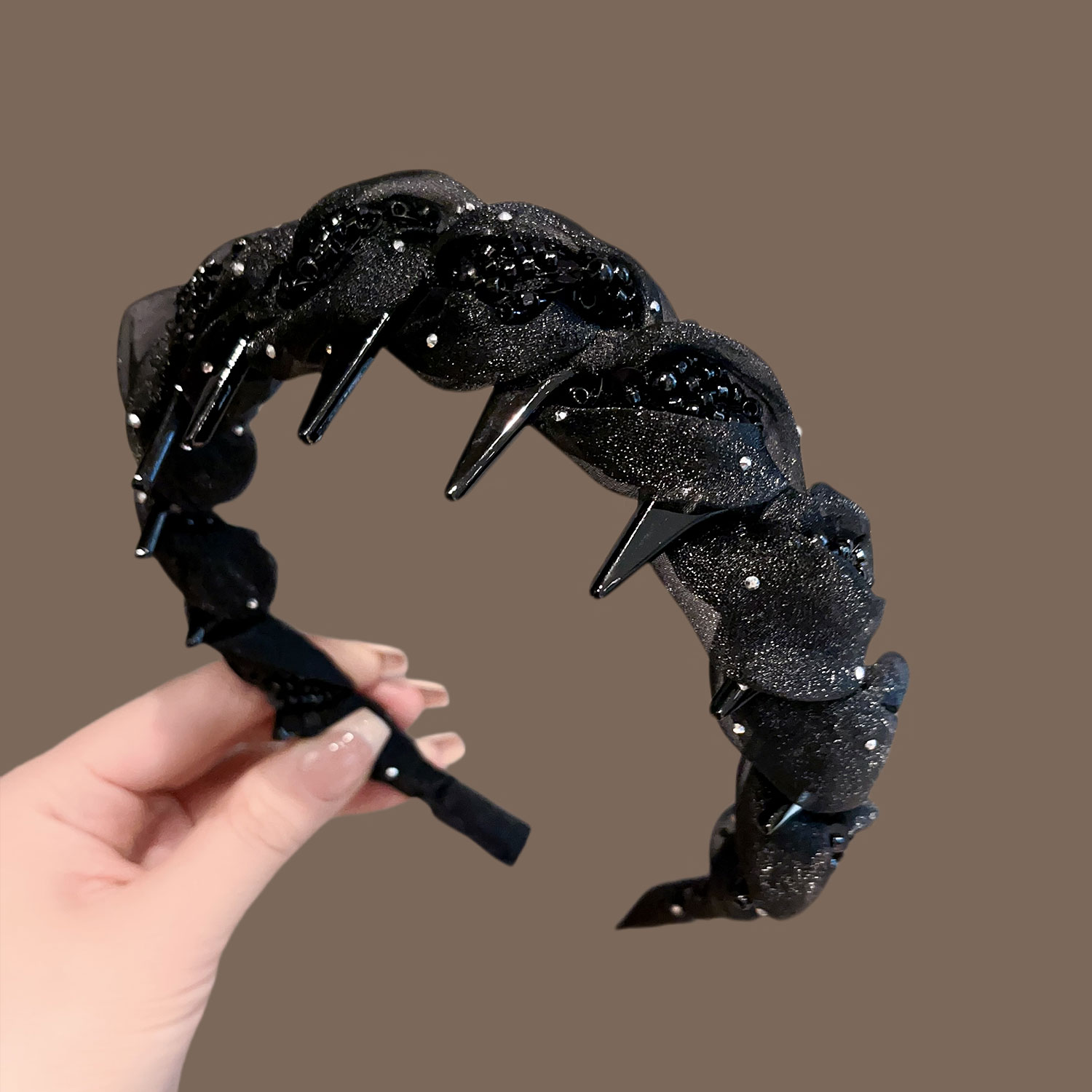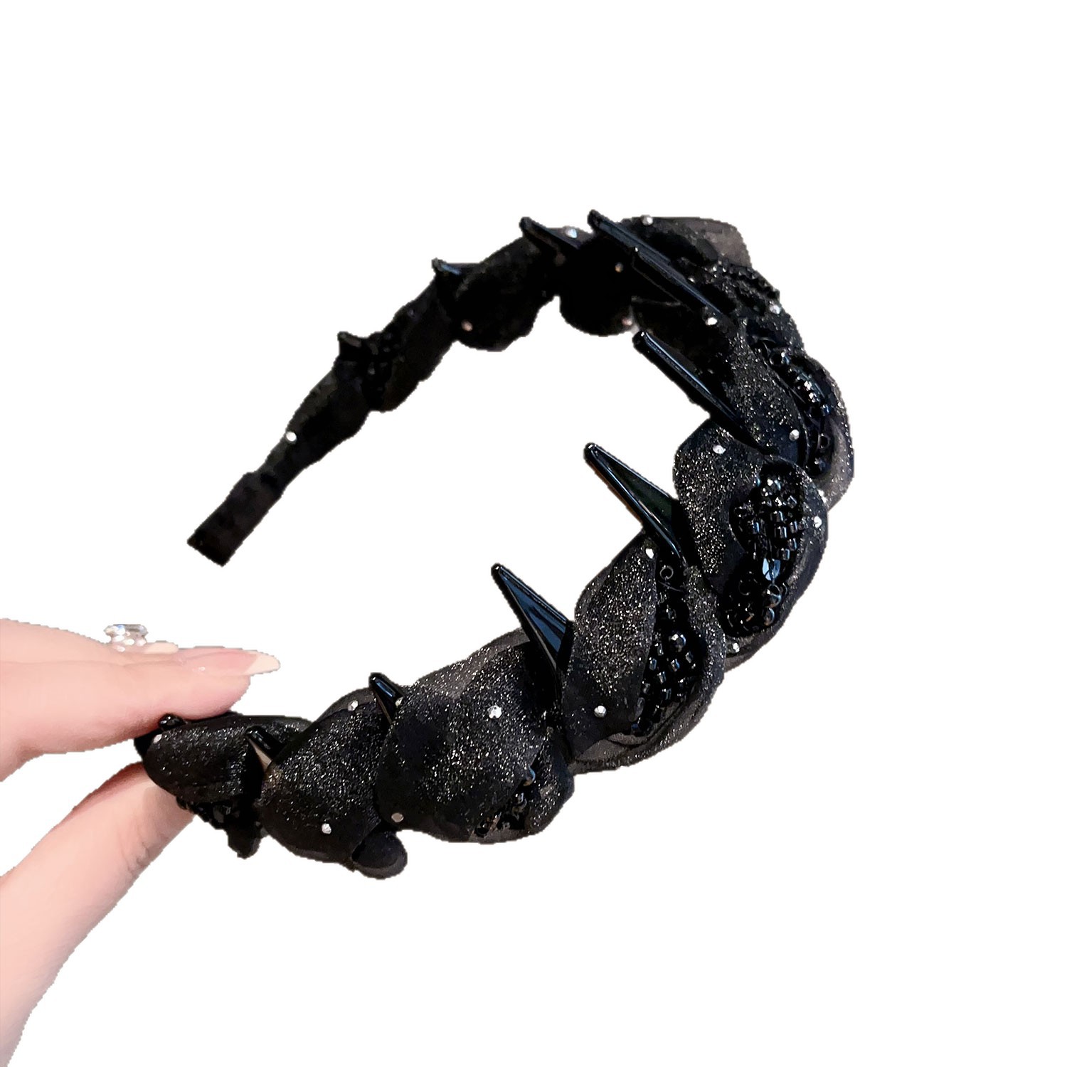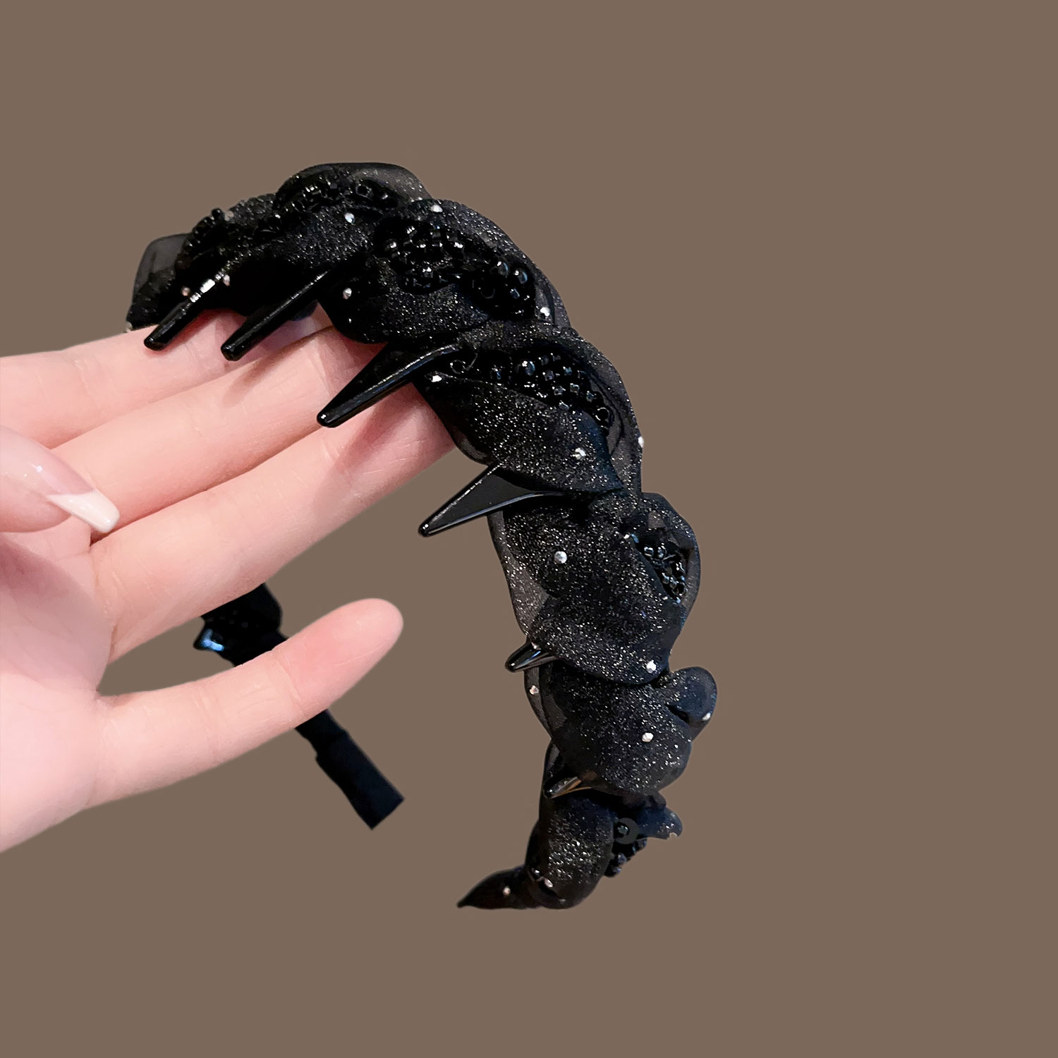 高级感时尚洋气串珠水晶麻花辫发箍高颅顶带齿头箍轻奢压发发捆