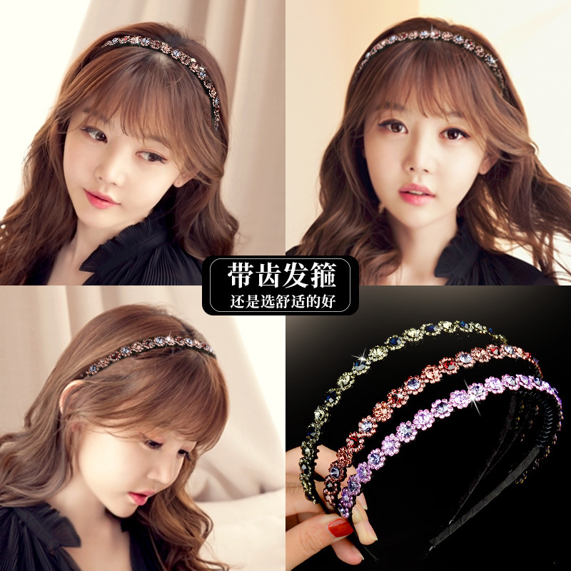 发箍女水钻带齿头箍夹子韩国简约压发防滑发夹成人发卡水晶短头饰