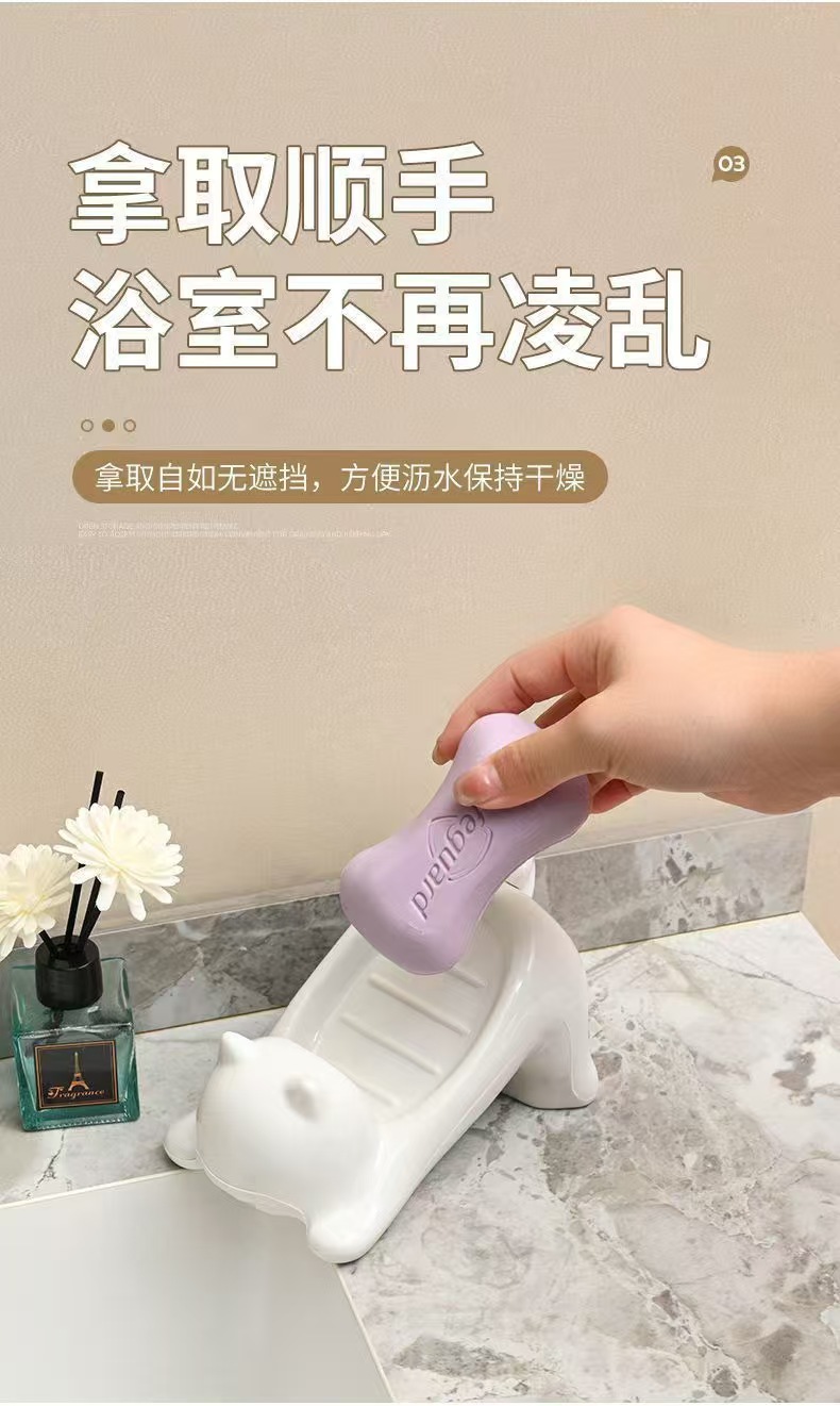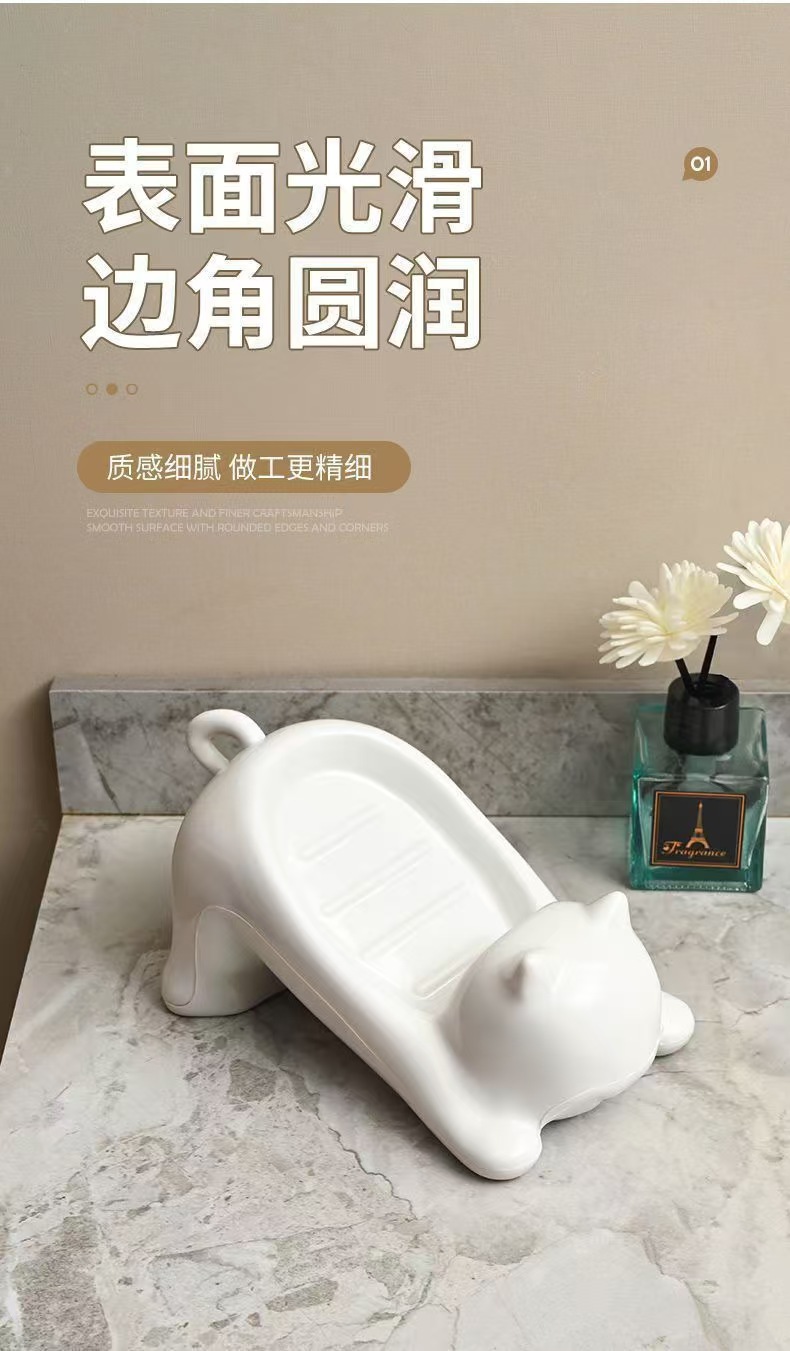 卡通可爱猫咪肥皂盒创意不积水浴室卫生间香皂盒置物架家用沥水盒