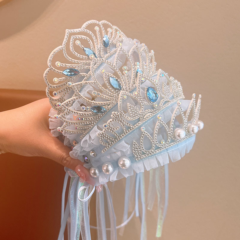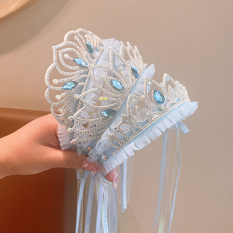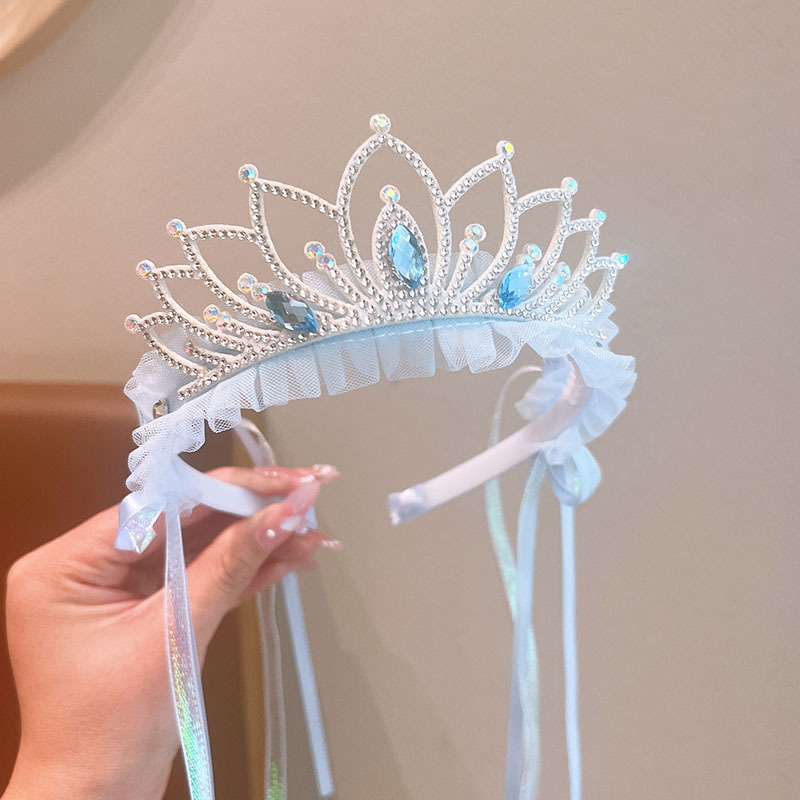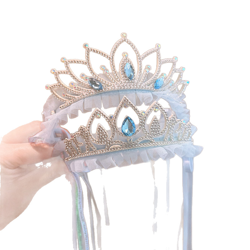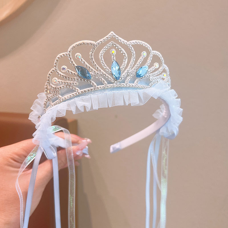 儿童发箍艾莎公主钻石皇冠头箍小女孩冰雪蕾丝头饰生日礼物发饰