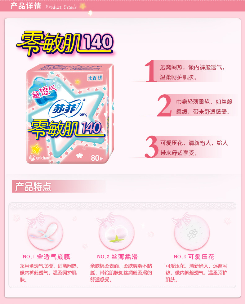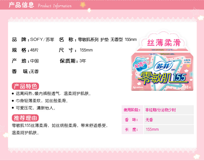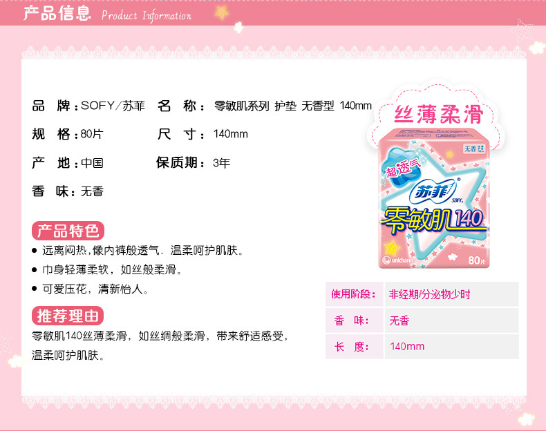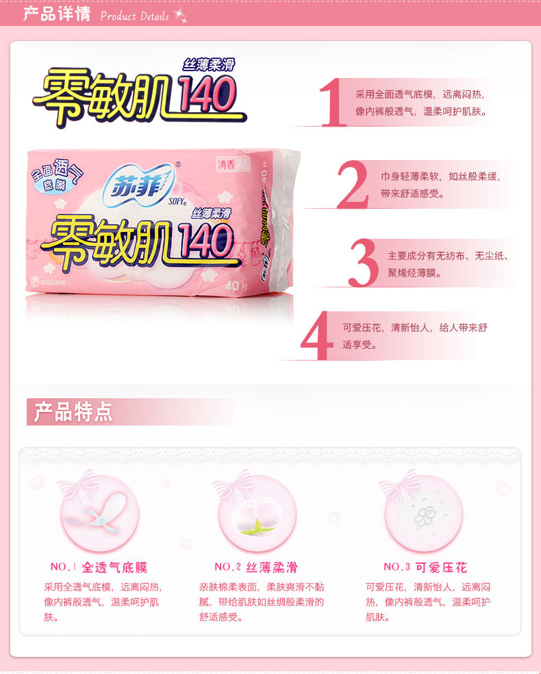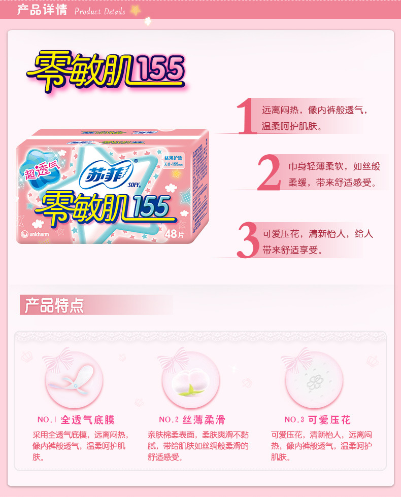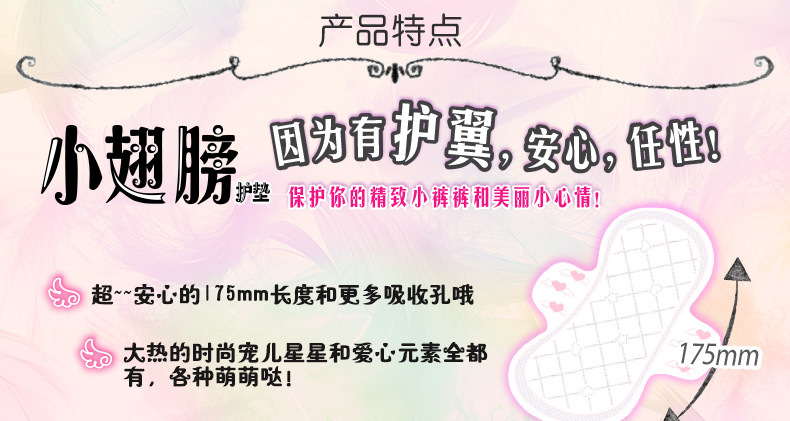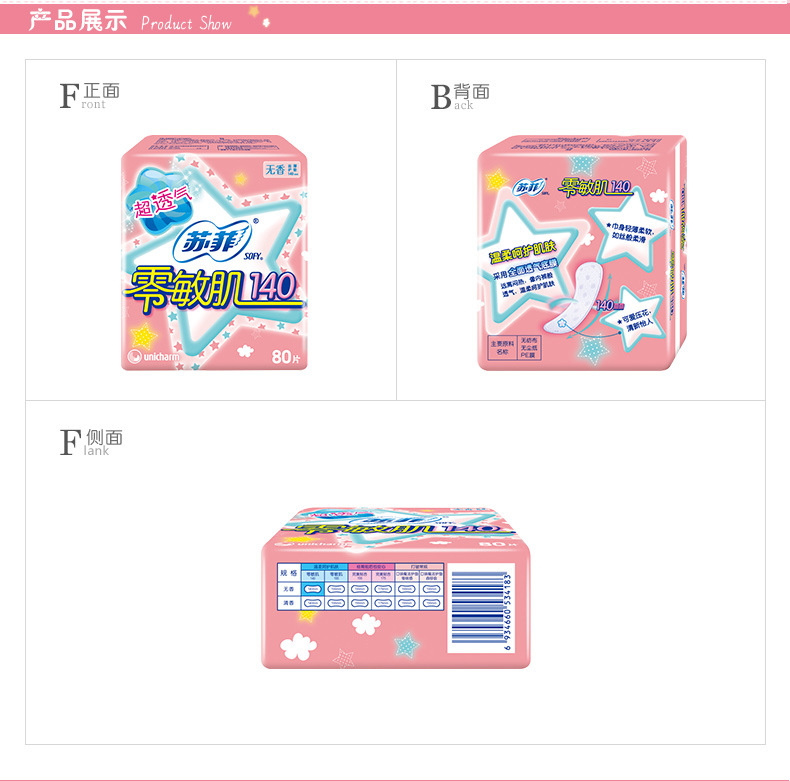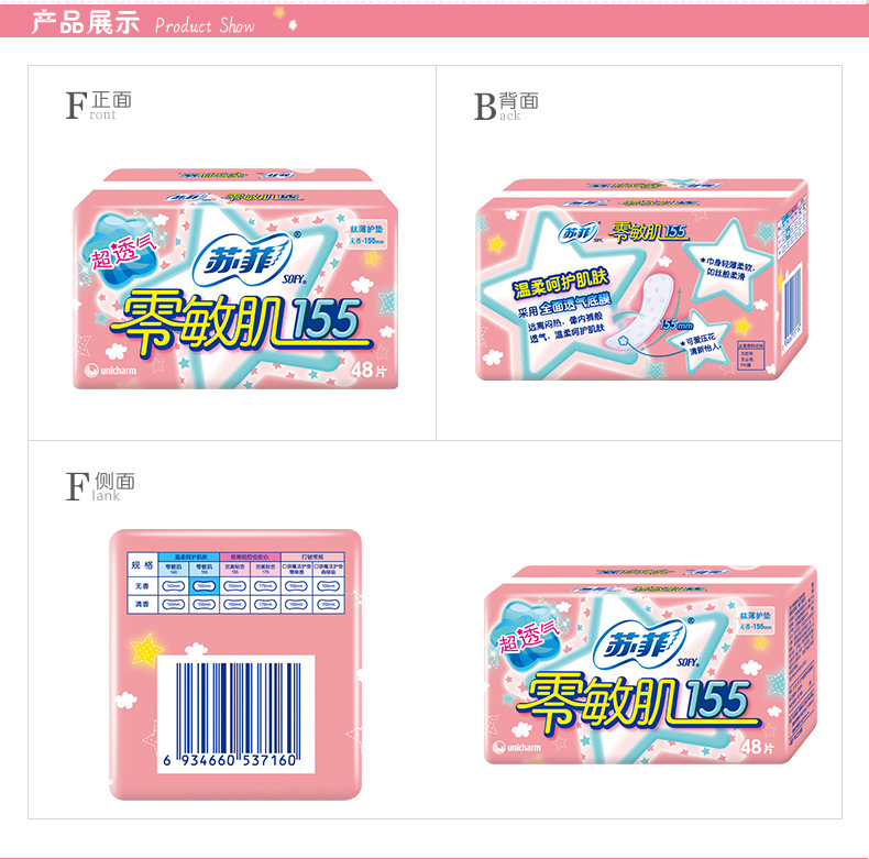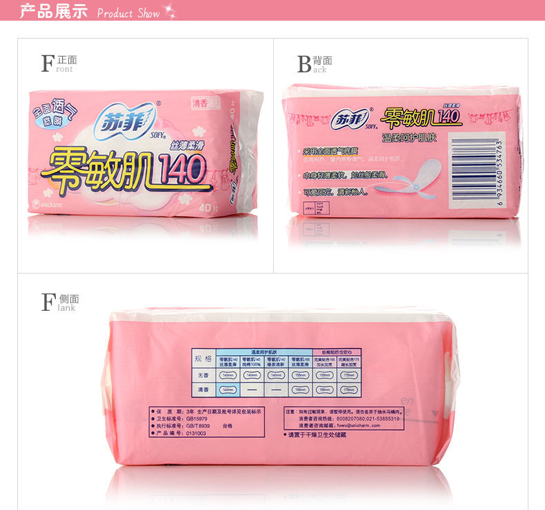 苏菲护垫小翅膀零敏肌卫生巾姨妈巾纯棉透气护垫迷你一件代发