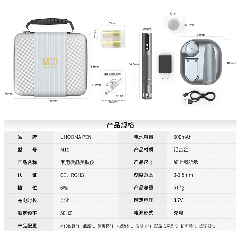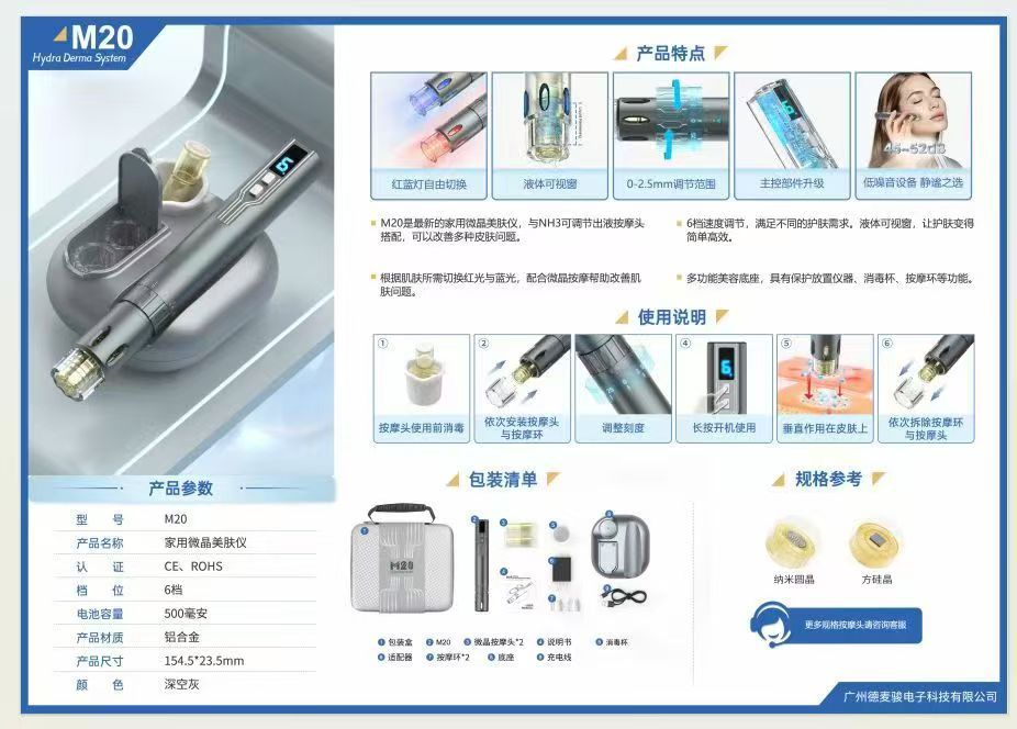 新品M10电动纳米微针微晶浅导仪器导入仪面部无针水光仪器美容仪