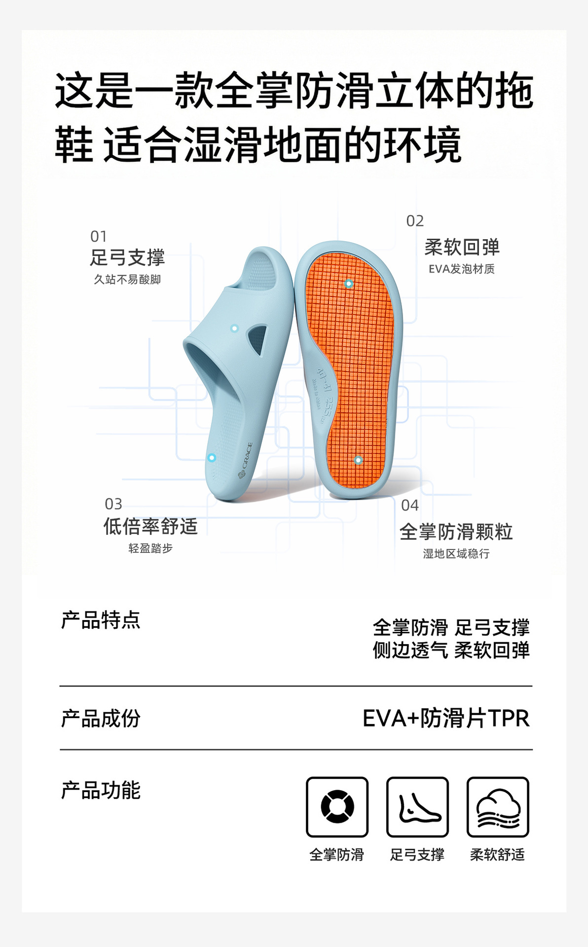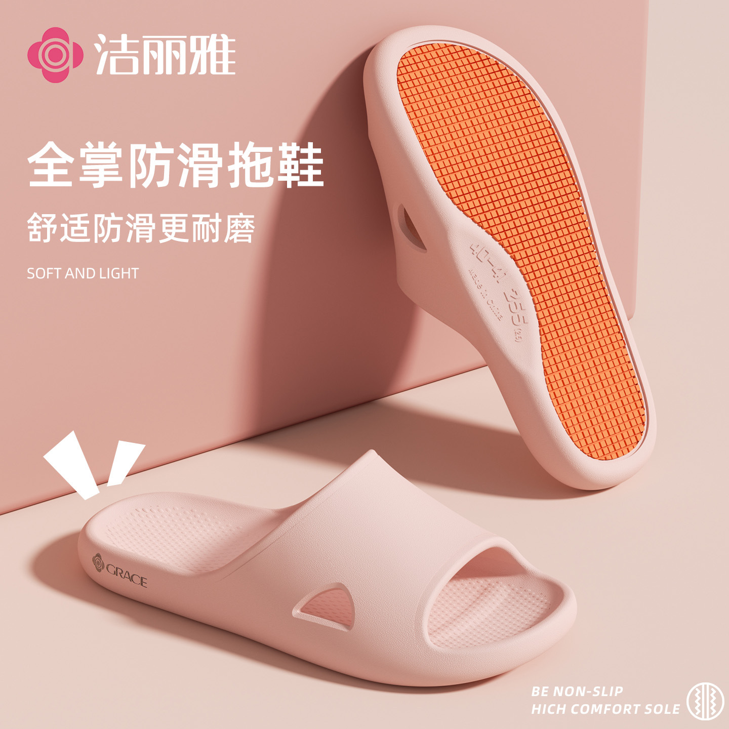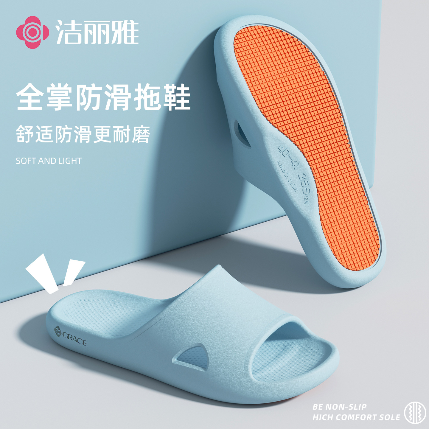 洁丽雅浴室防滑凉拖鞋女夏季2026新款居家洗澡eva室内情侣拖鞋男