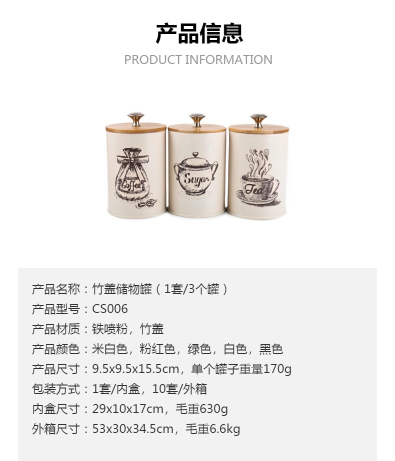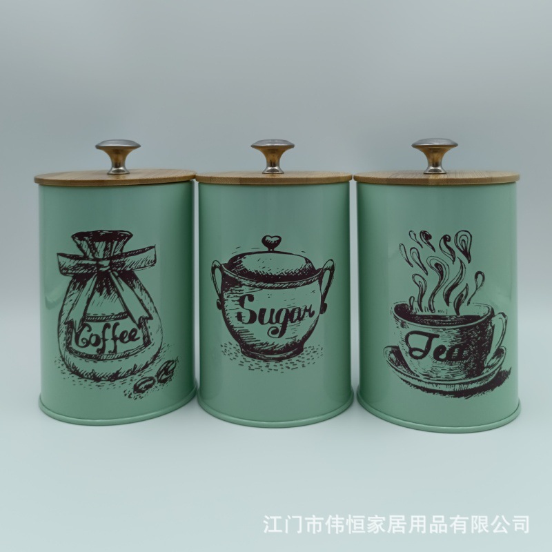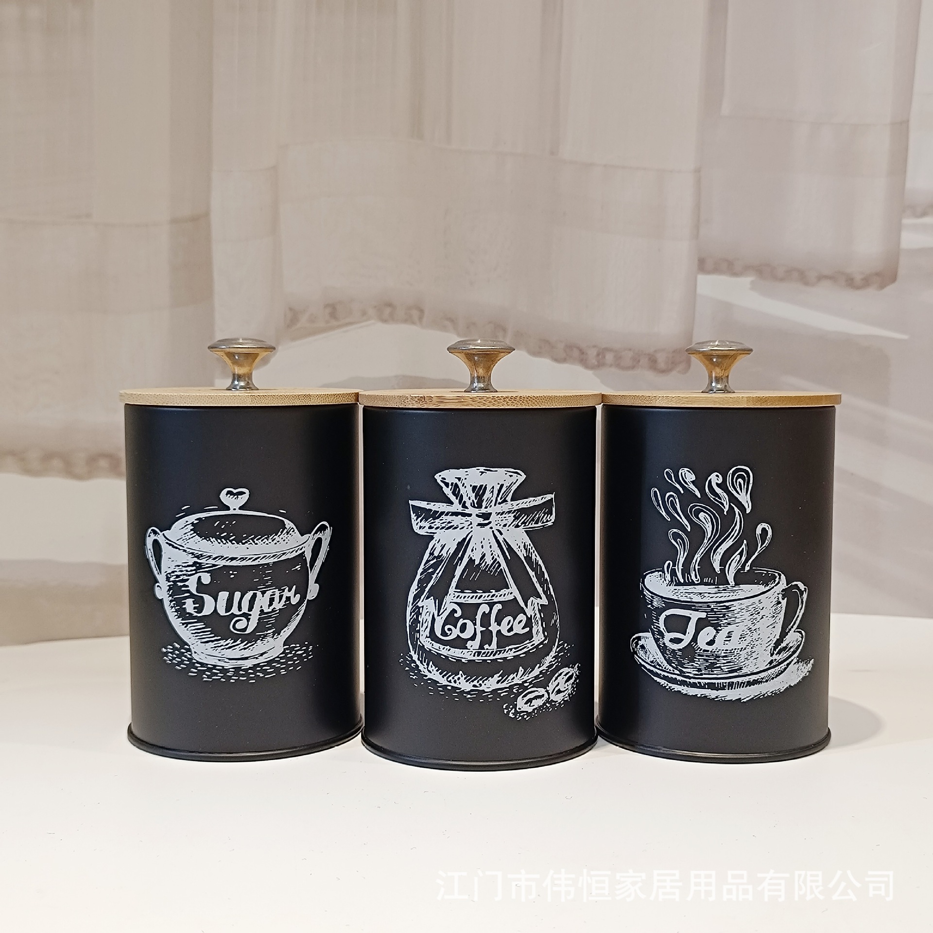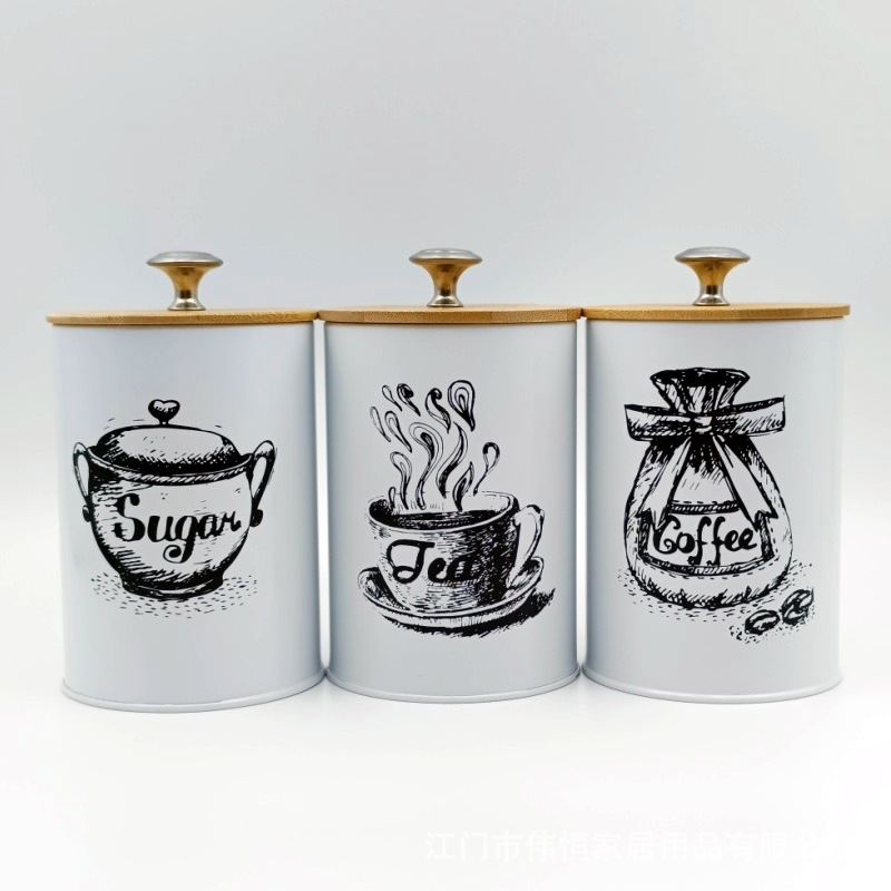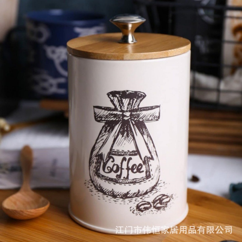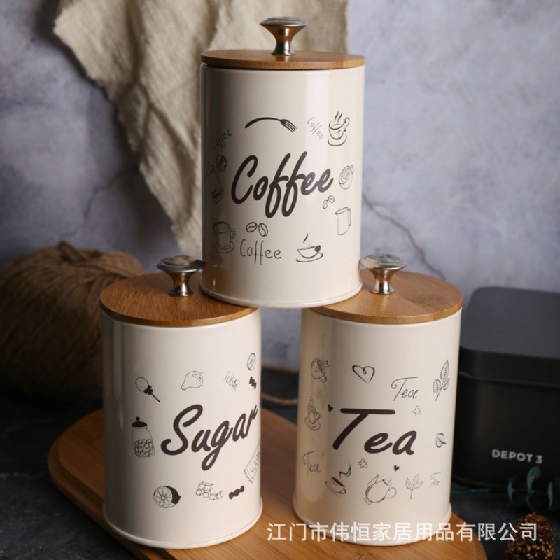 现代简约厨房客厅餐厅适用咖啡糖茶竹盖密封储存罐储物罐带盖