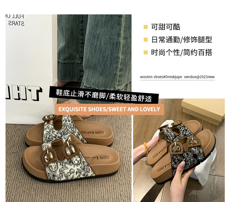 厚底勃肯凉拖鞋女夏外穿2026新款小众设计感沙滩凉鞋拖鞋跨境防滑