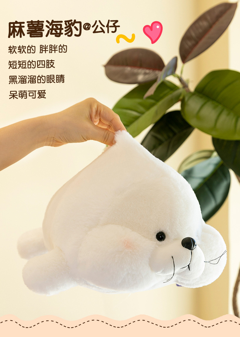 新款可爱麻薯海豹公仔毛绒玩具圆嘟嘟玩偶儿童睡觉安抚玩偶生日礼