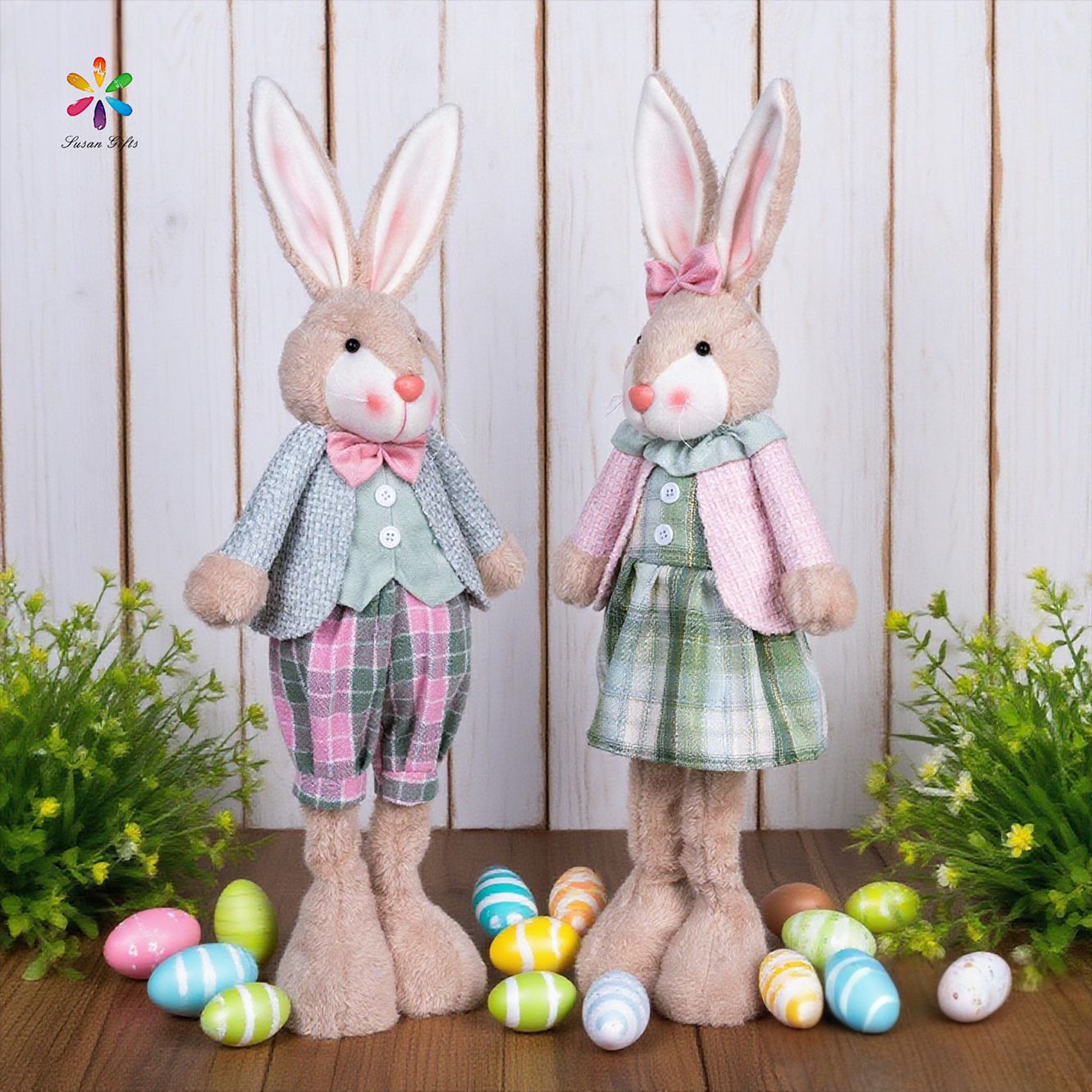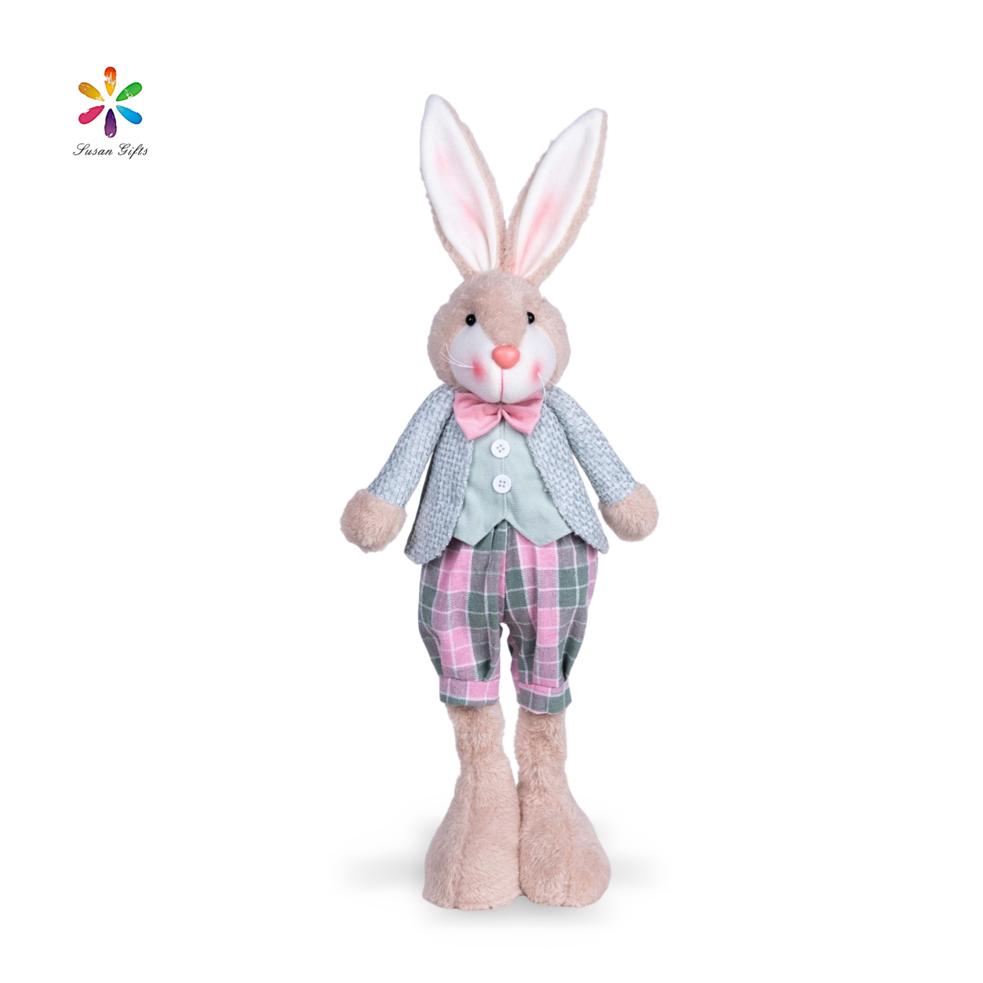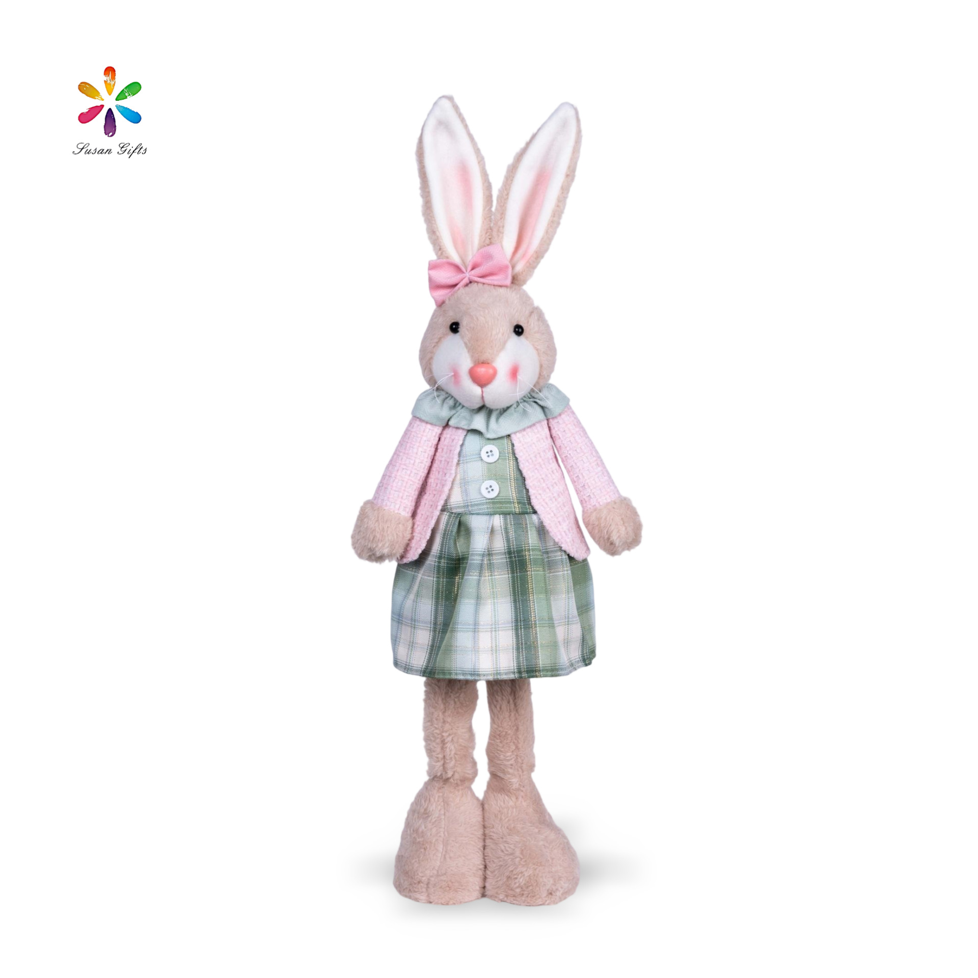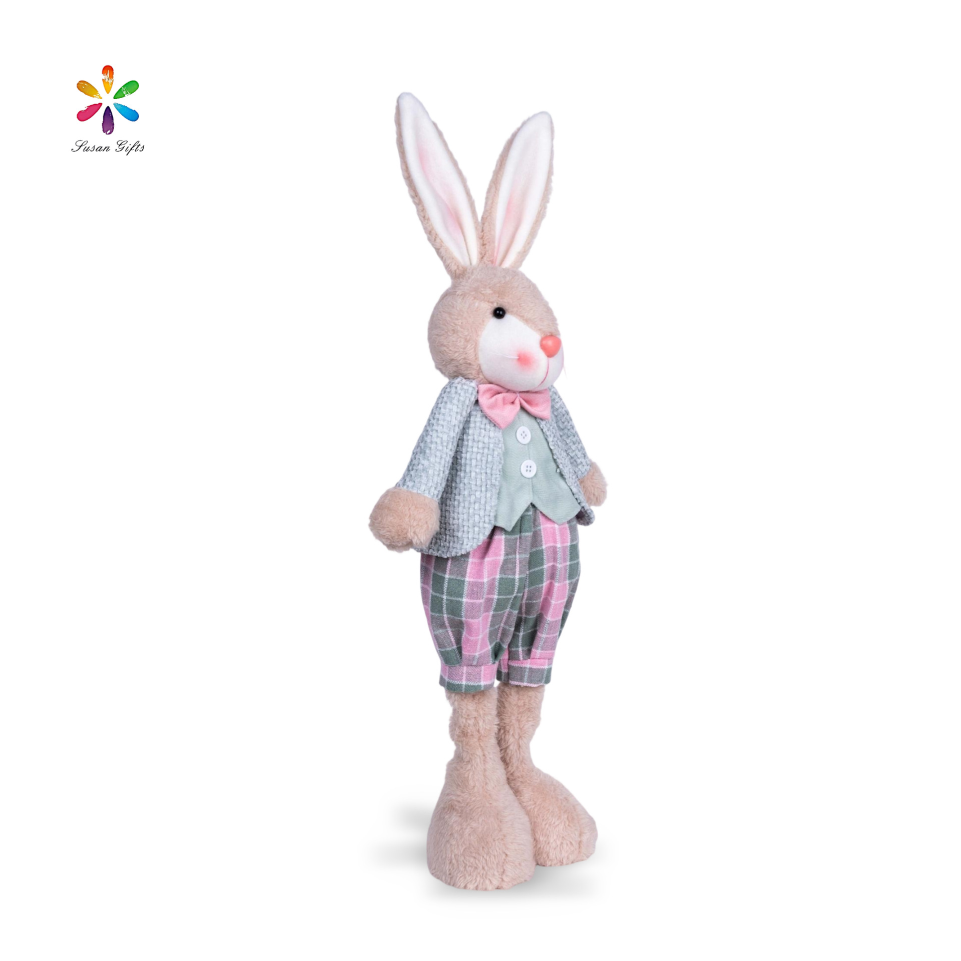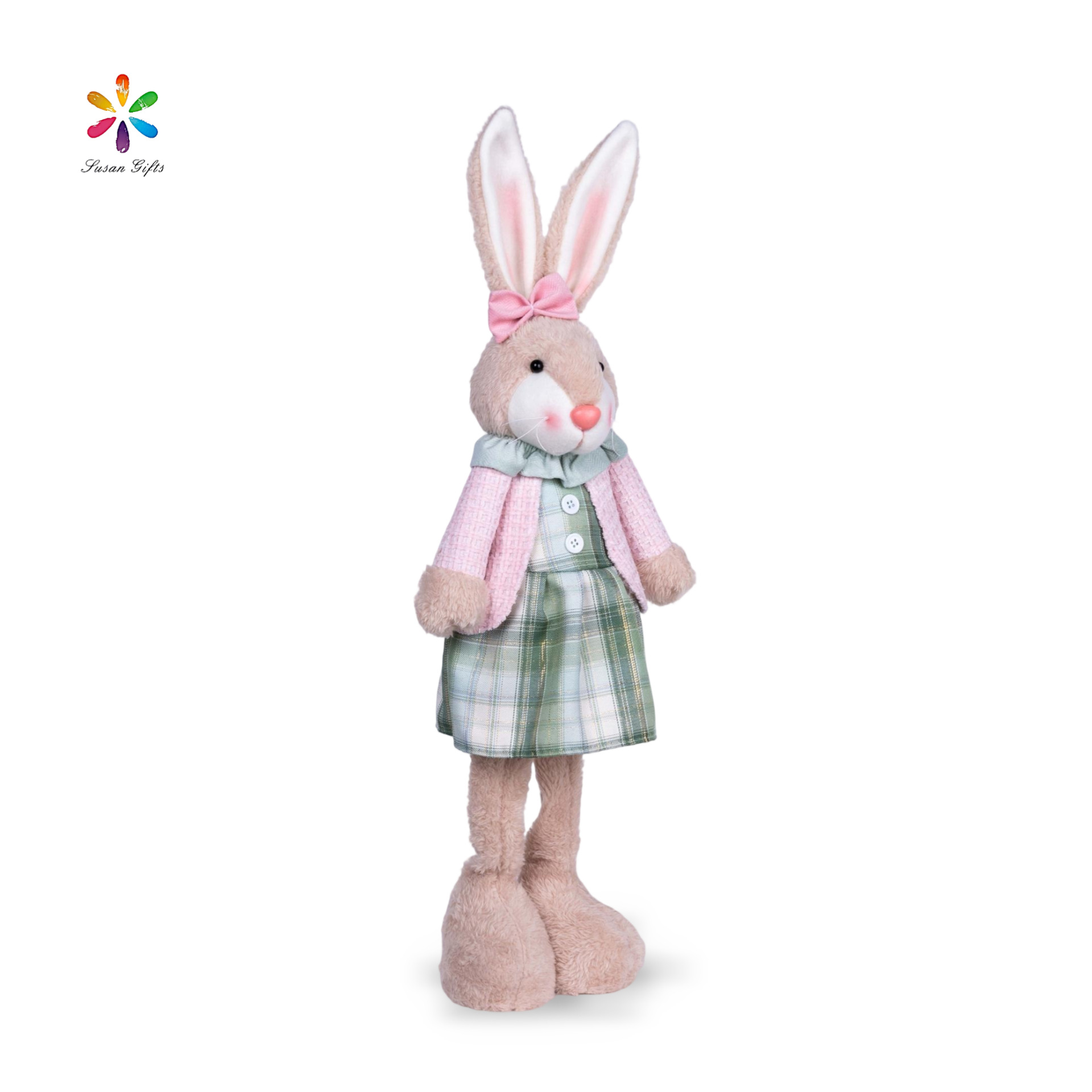 棕色兔子复活节可爱派对漂亮摆件春季假日房间批发红绿站姿大号