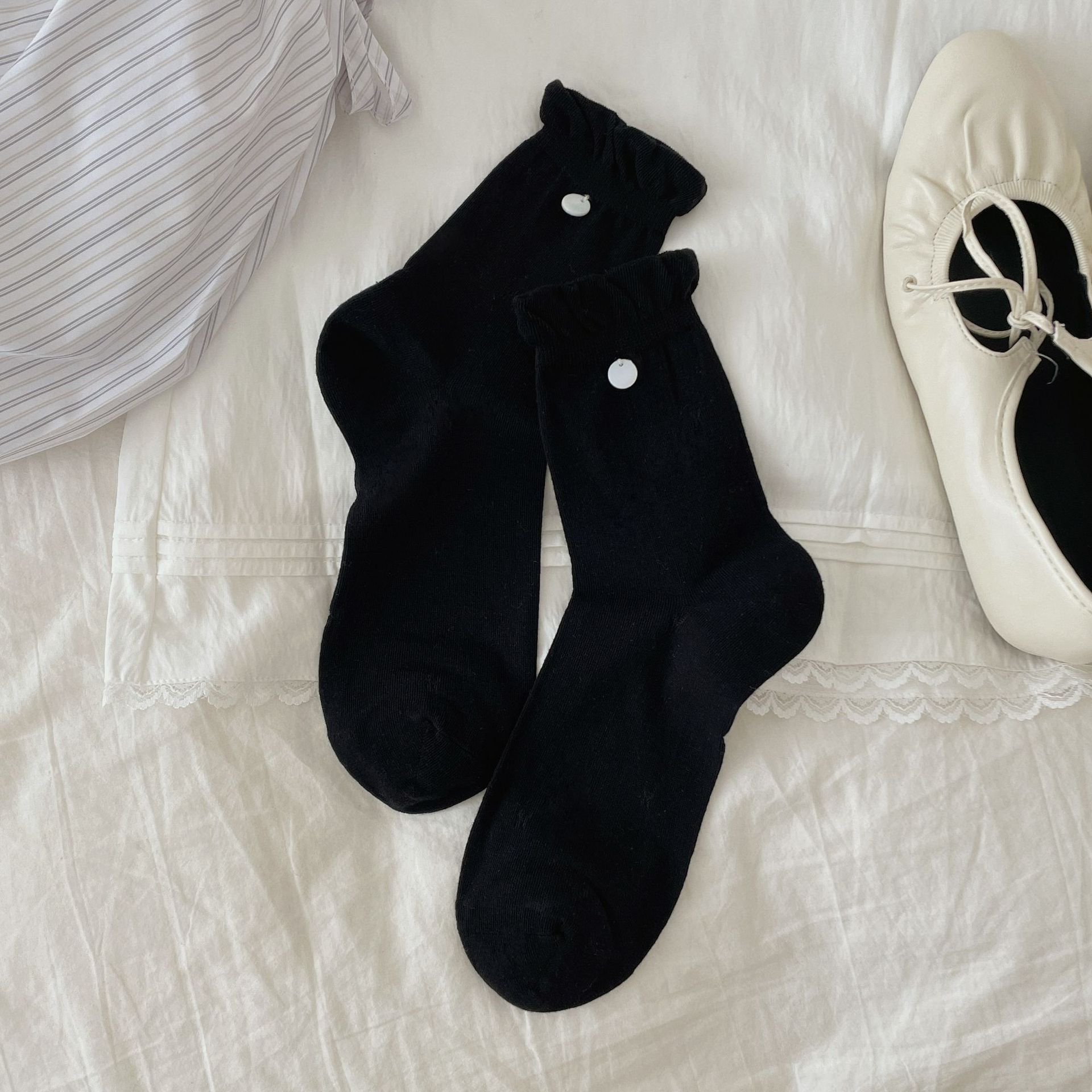 春夏立体蝴蝶结无骨中筒袜甜美袜子女少女花边袜灰色麻花堆堆袜
