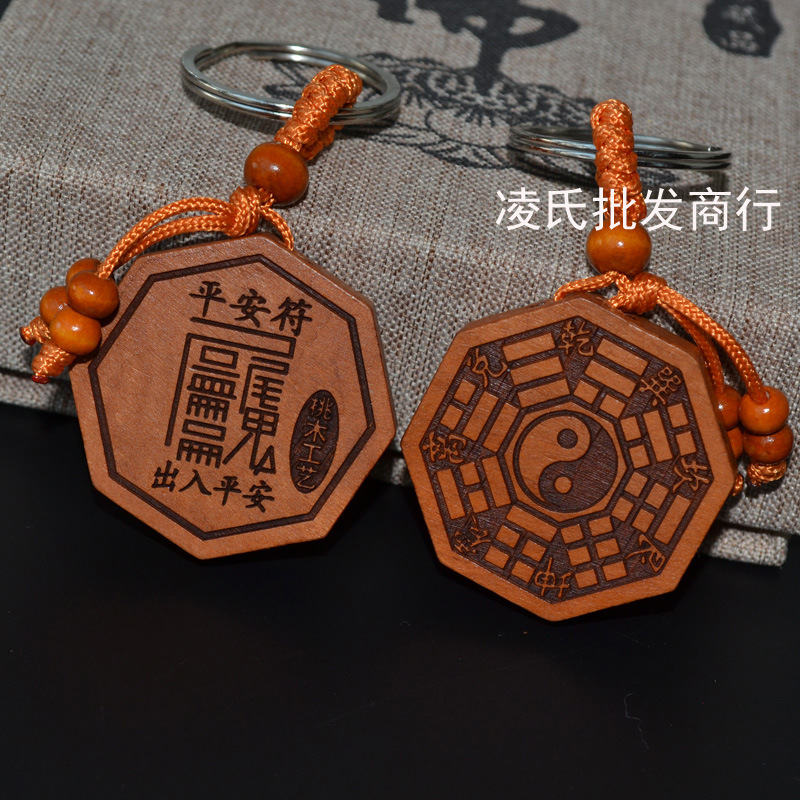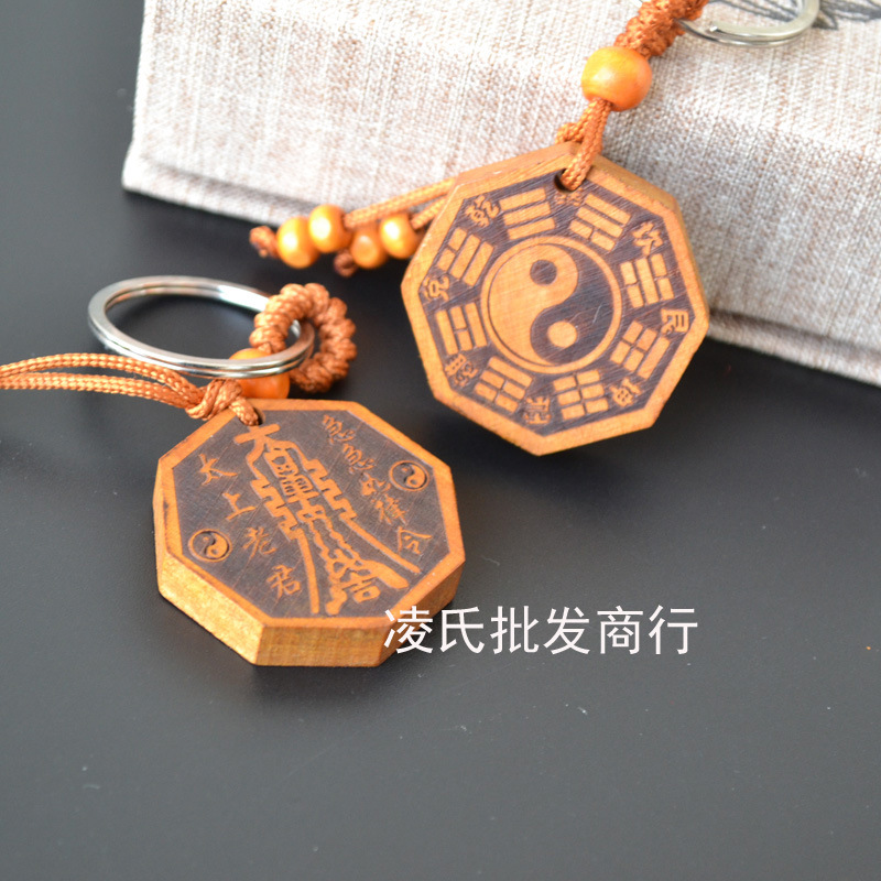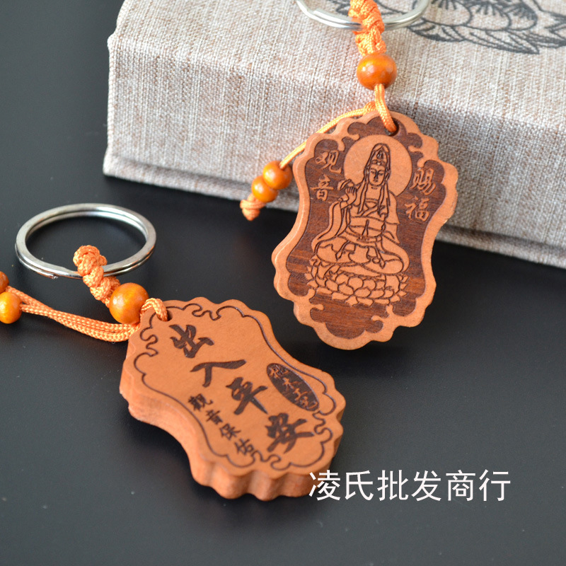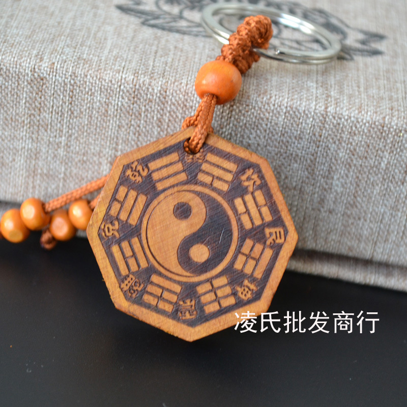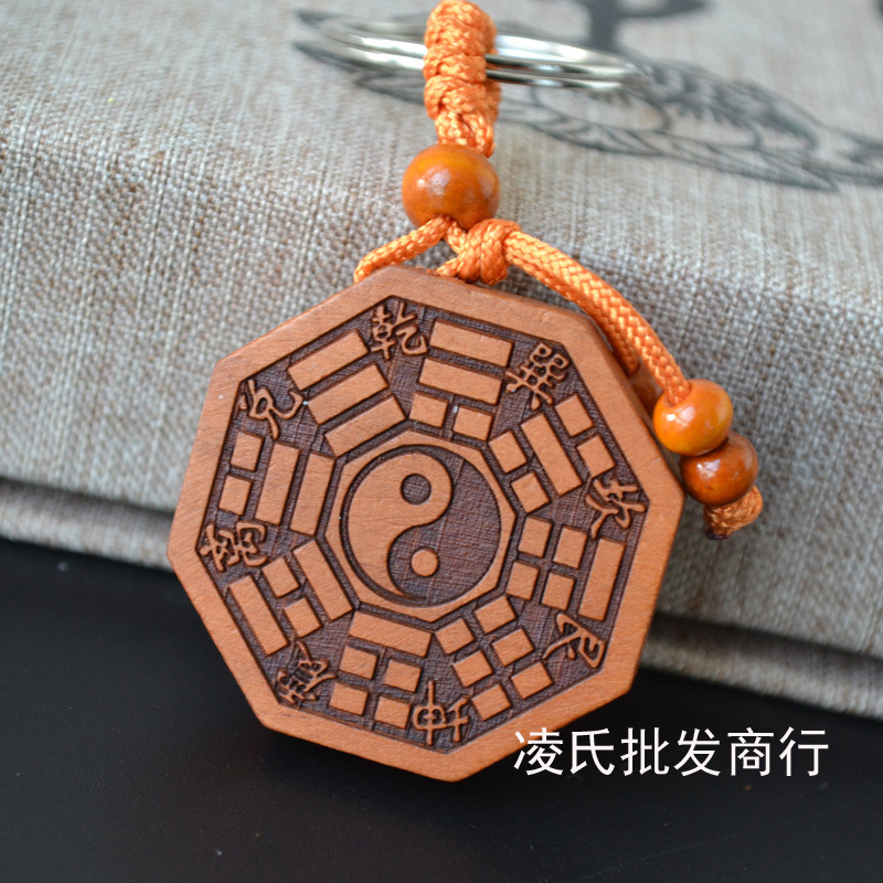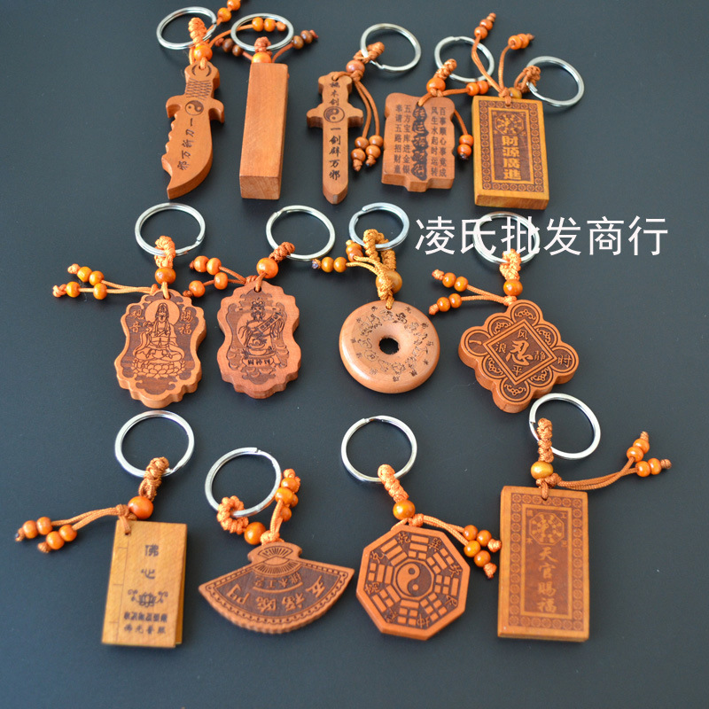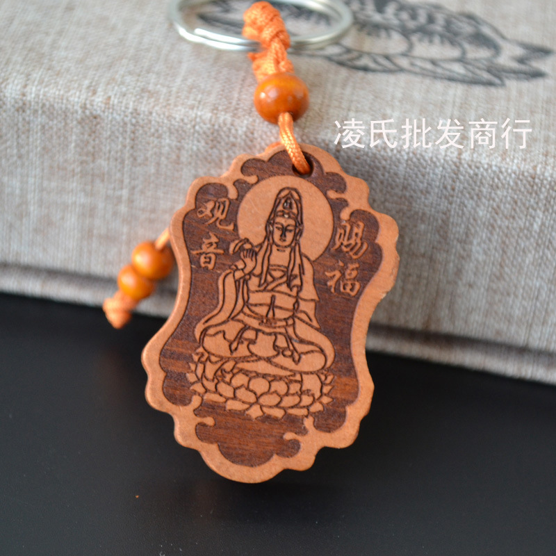 桃木钥匙扣挂件批发观音佛八卦汽车钥匙扣链腰挂个性创意男女饰品
