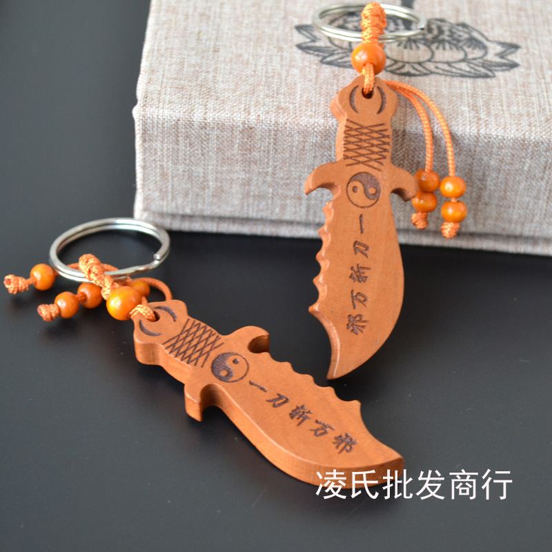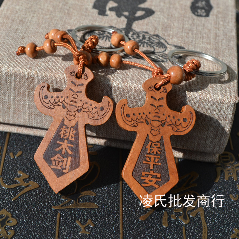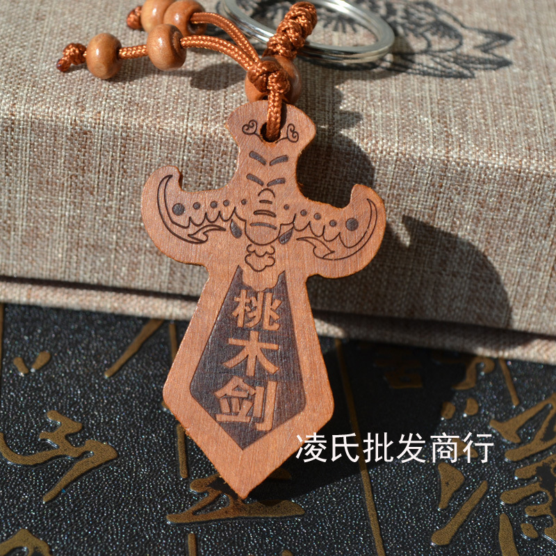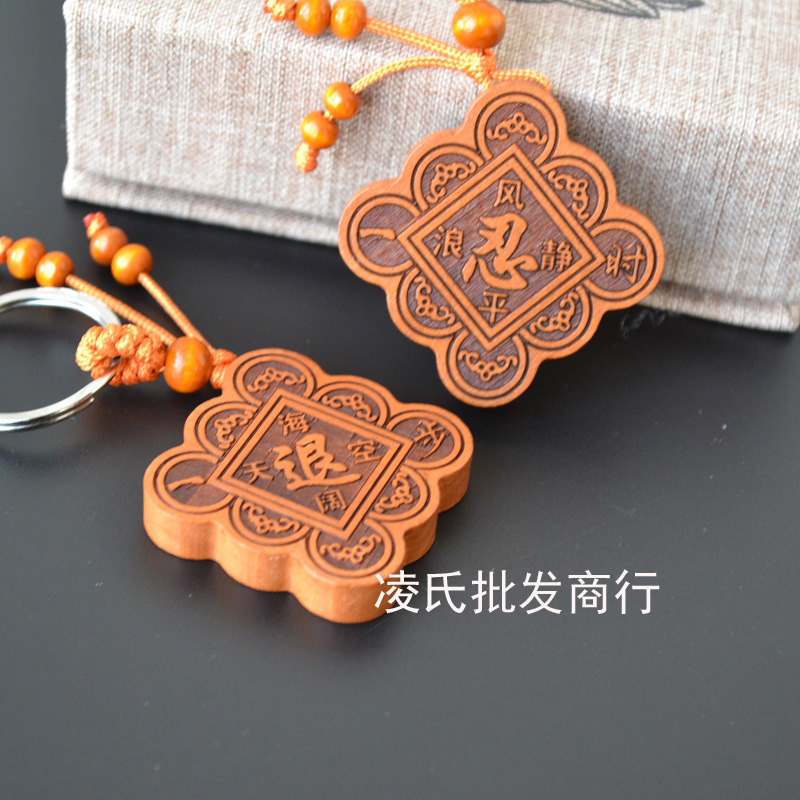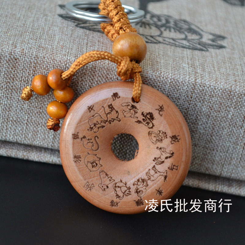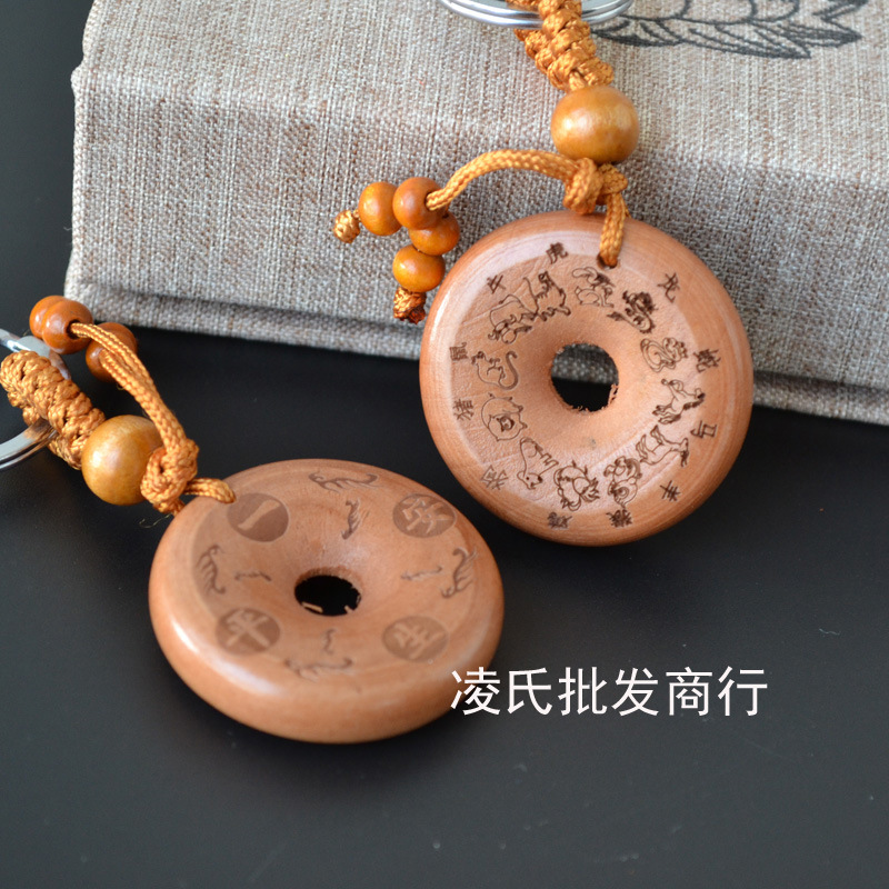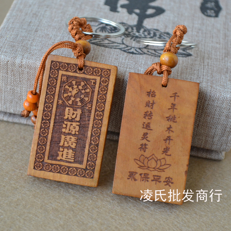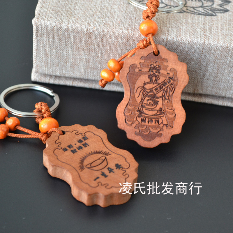 桃木钥匙扣挂件批发观音佛八卦汽车钥匙扣链腰挂个性创意男女饰品