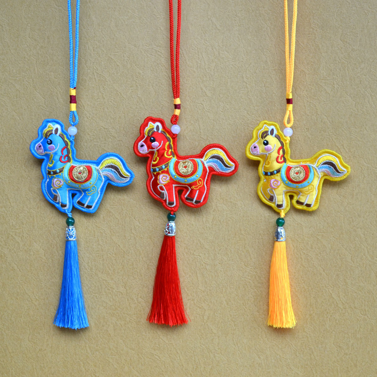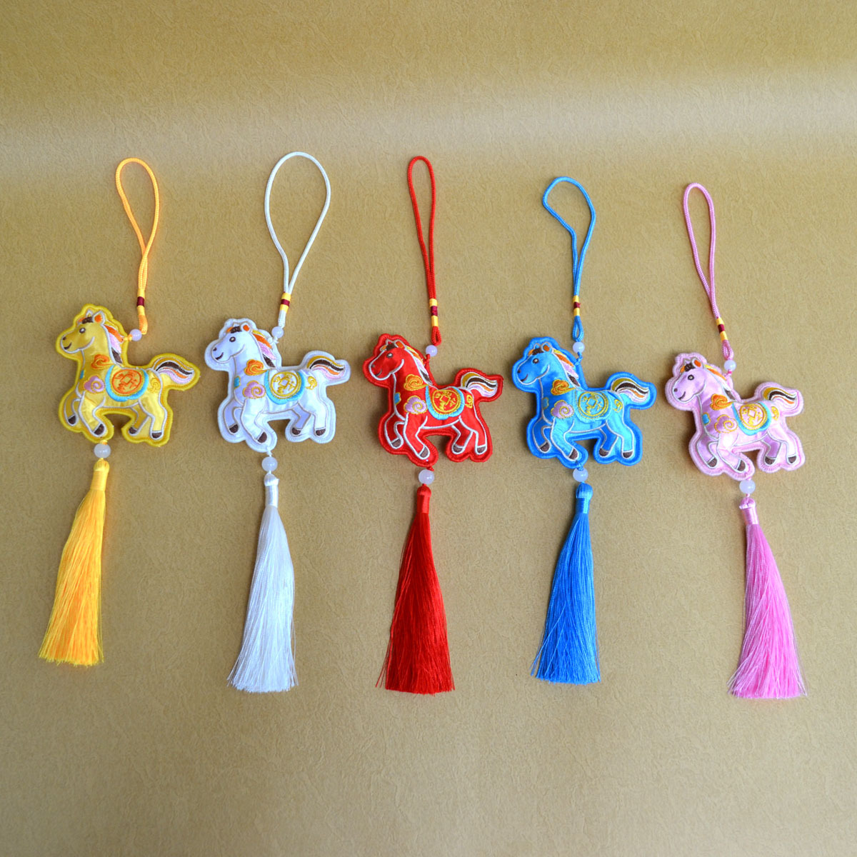 马年香包挂件双面刺绣新年流苏香囊春节装饰品生肖马吉祥物车挂饰