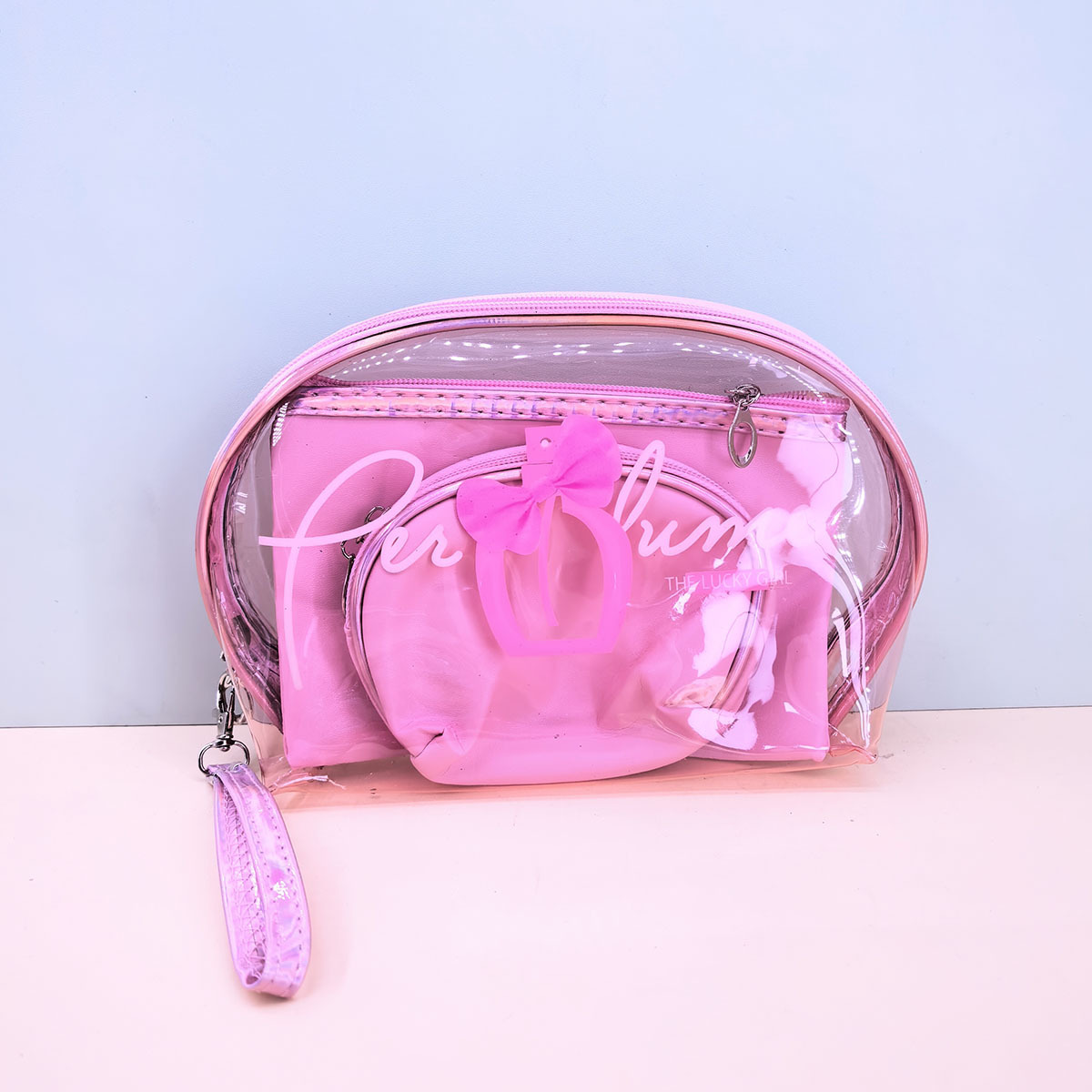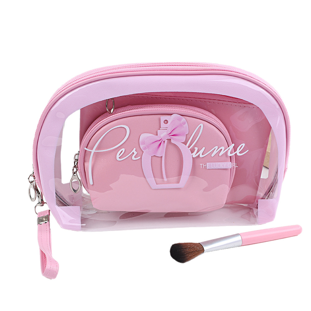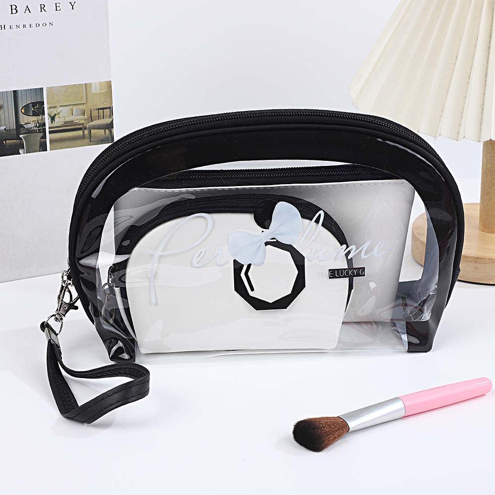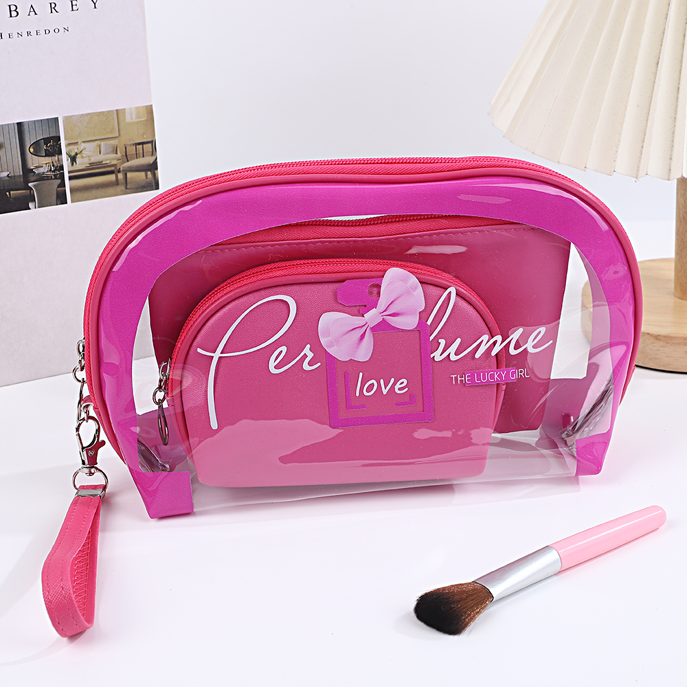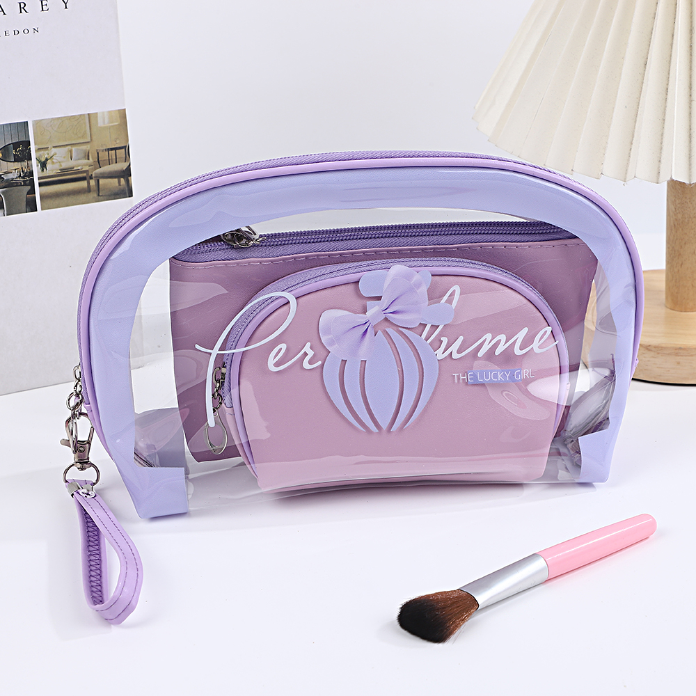 2026创意印花透明三件套洗漱包PVC手提便携女士化妆品收纳包袋