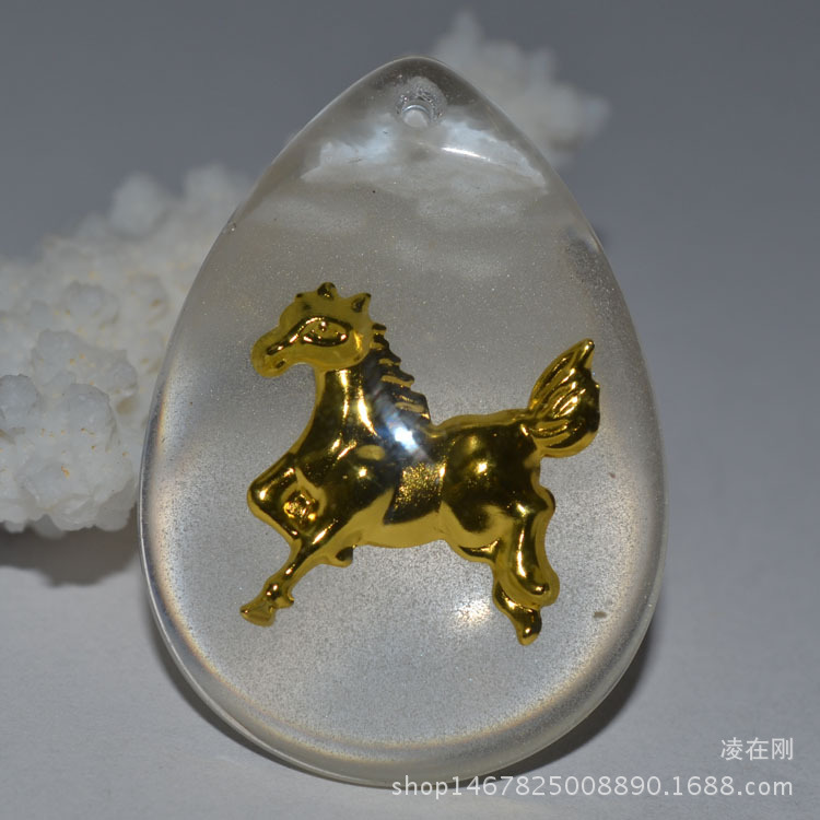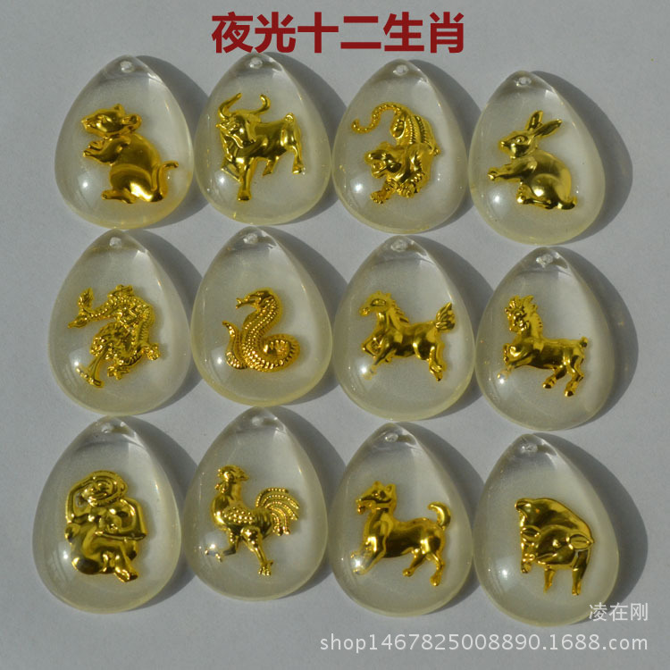 热销晶美金水晶镶金包金吊坠男女款夜光十二生肖项链大小号批发