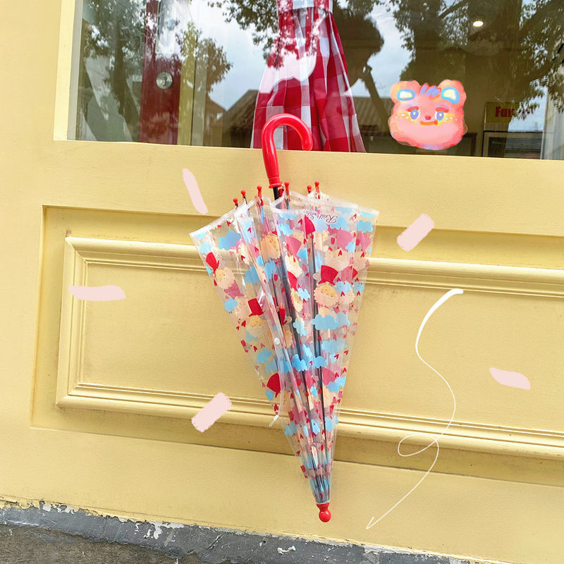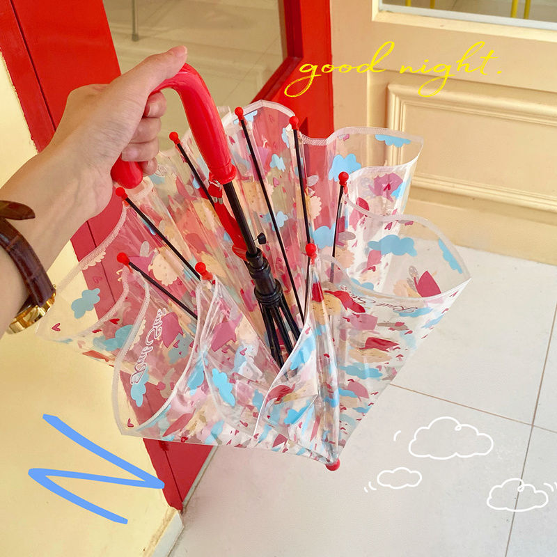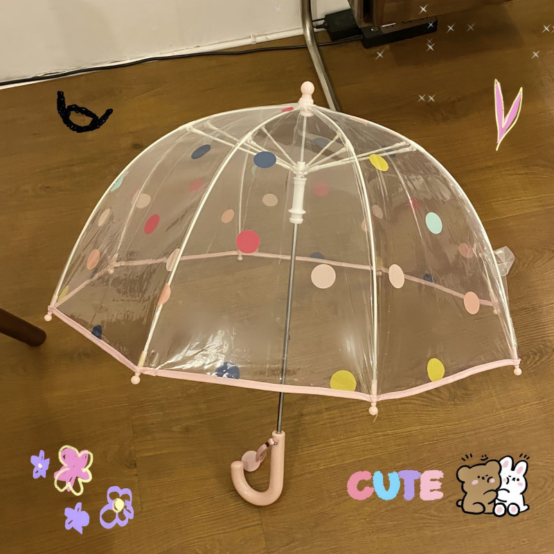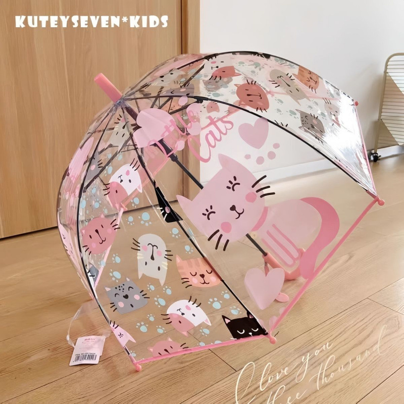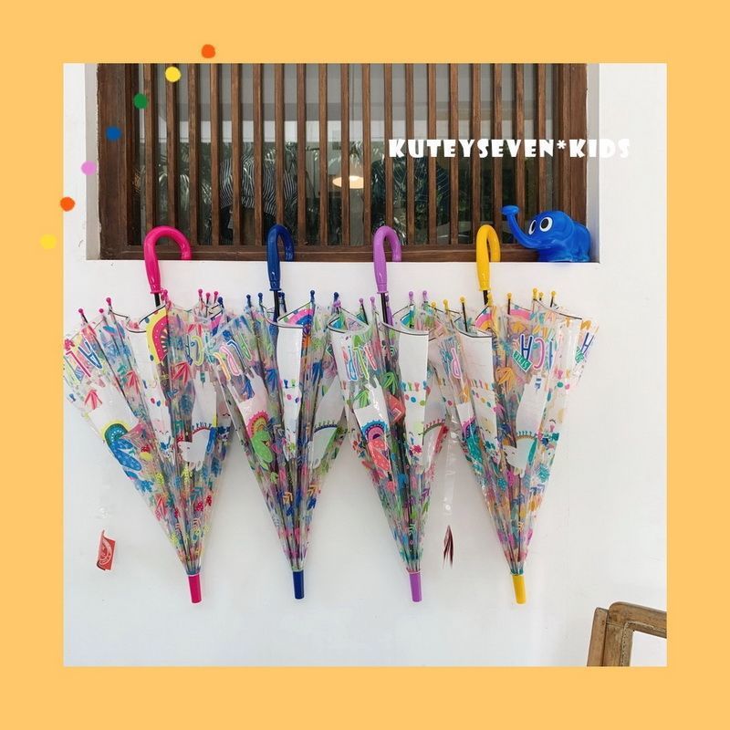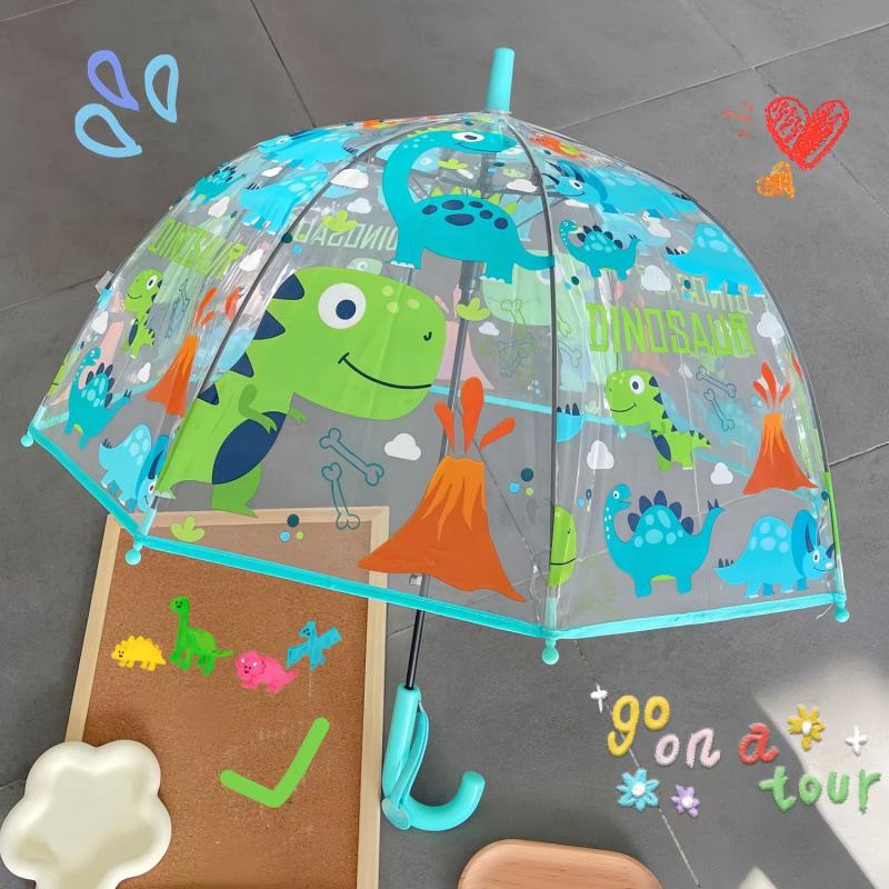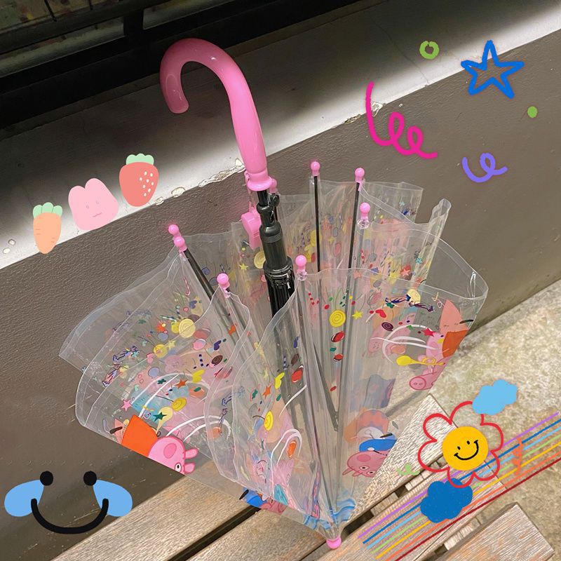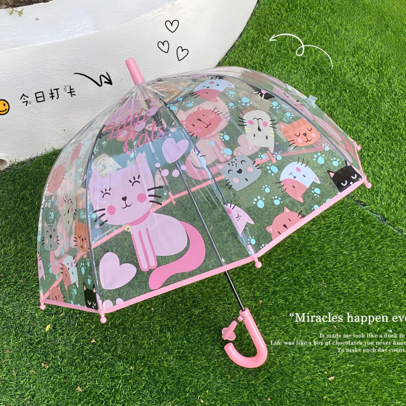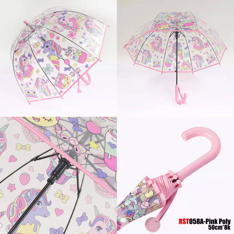 儿童独角兽透明雨伞幼儿园宝宝携带加厚长柄伞可爱卡通时尚风