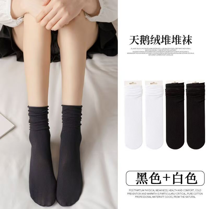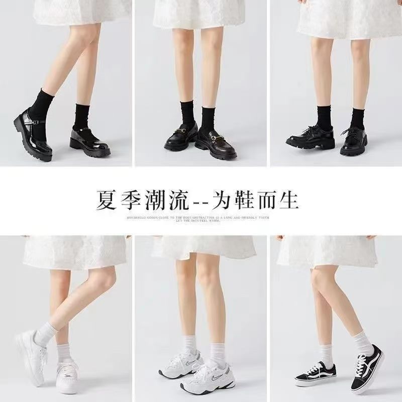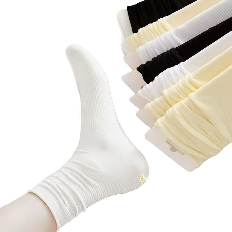女士袜子女潮长中筒丝袜夏季超薄透气黑白色韩版堆堆袜冰冰袜