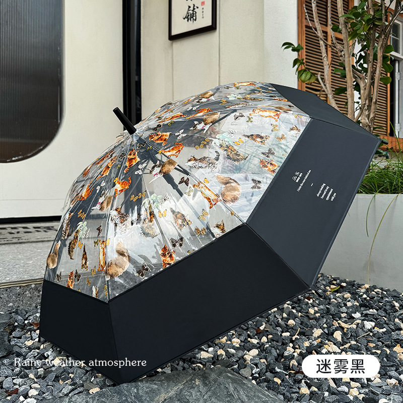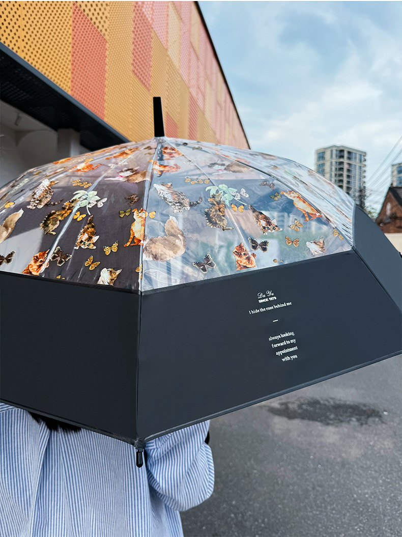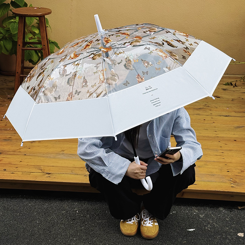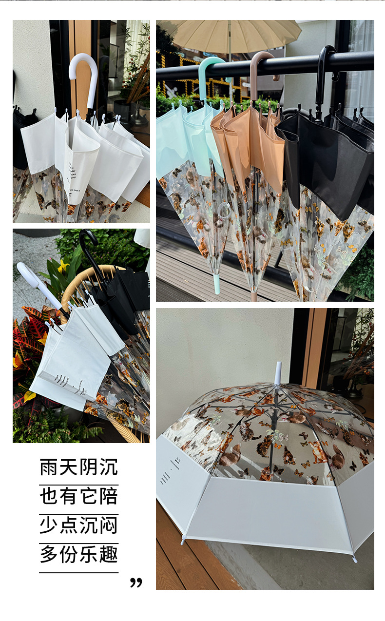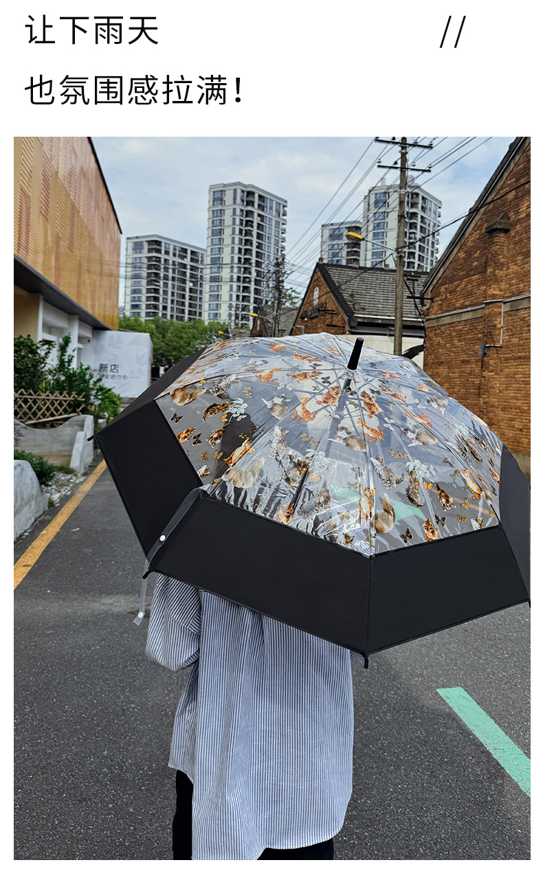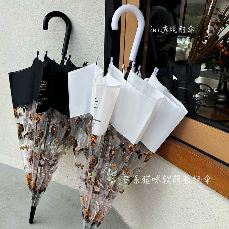 小红书热销爆款雨伞可爱猫咪透明雨伞ins长柄伞防风防雨塑料伞