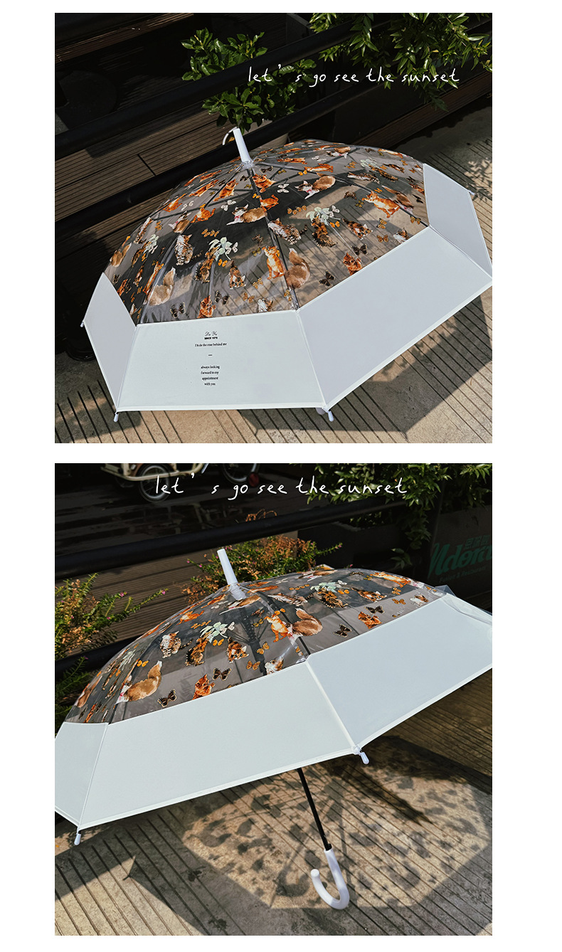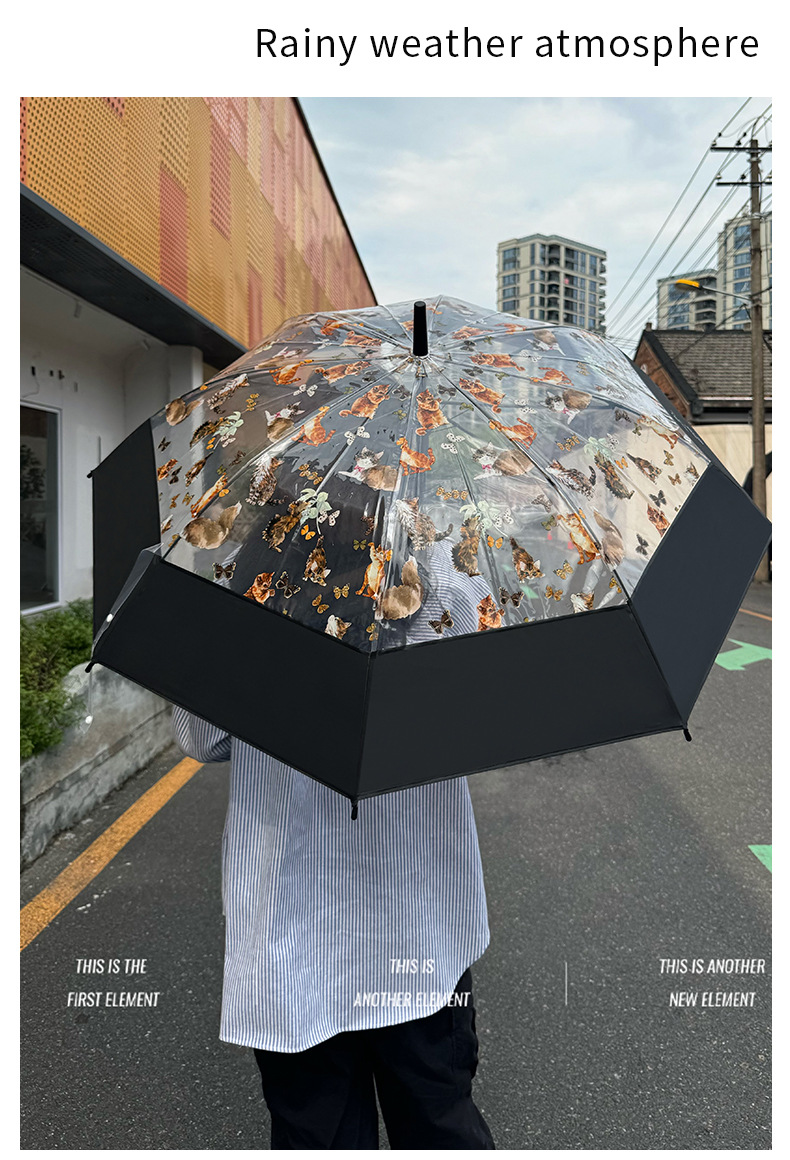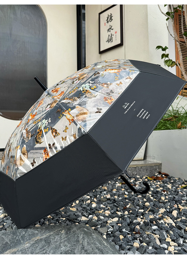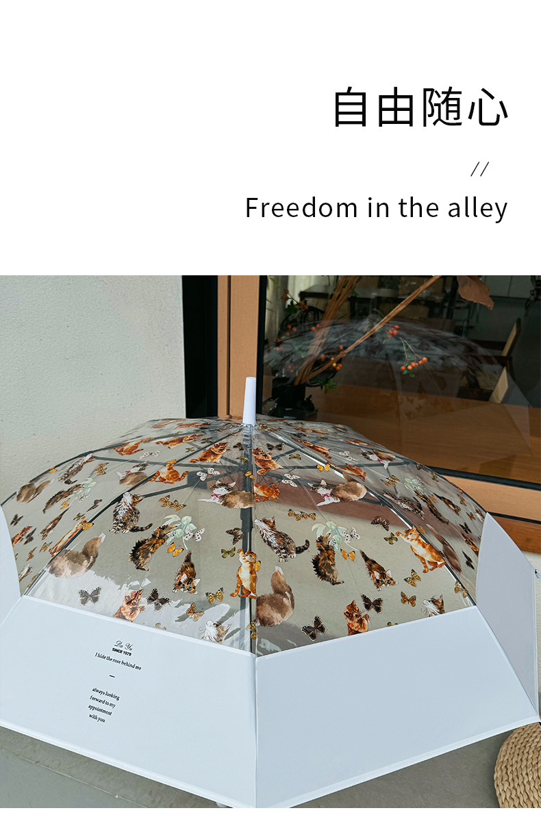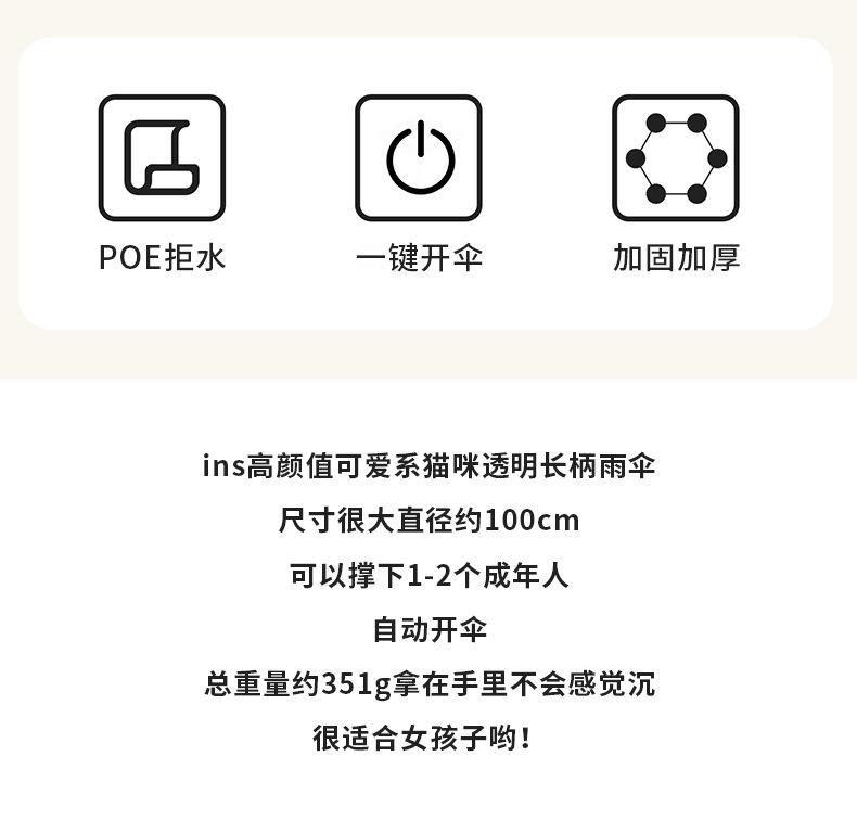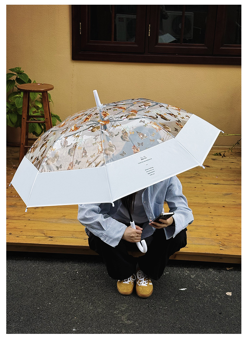 小红书热销爆款雨伞可爱猫咪透明雨伞ins长柄伞防风防雨塑料伞