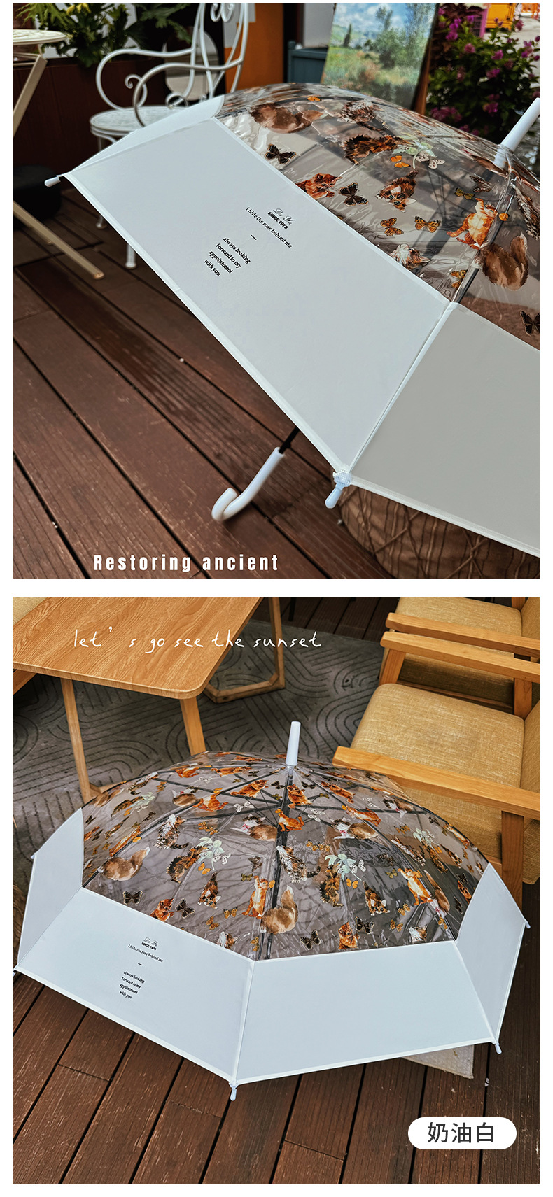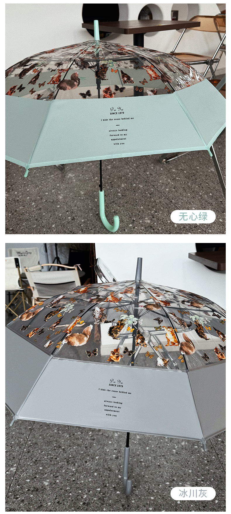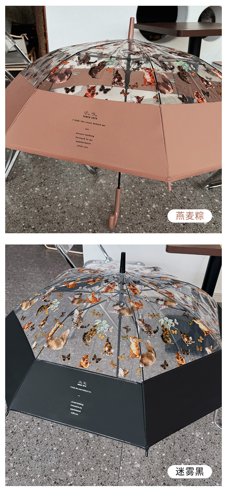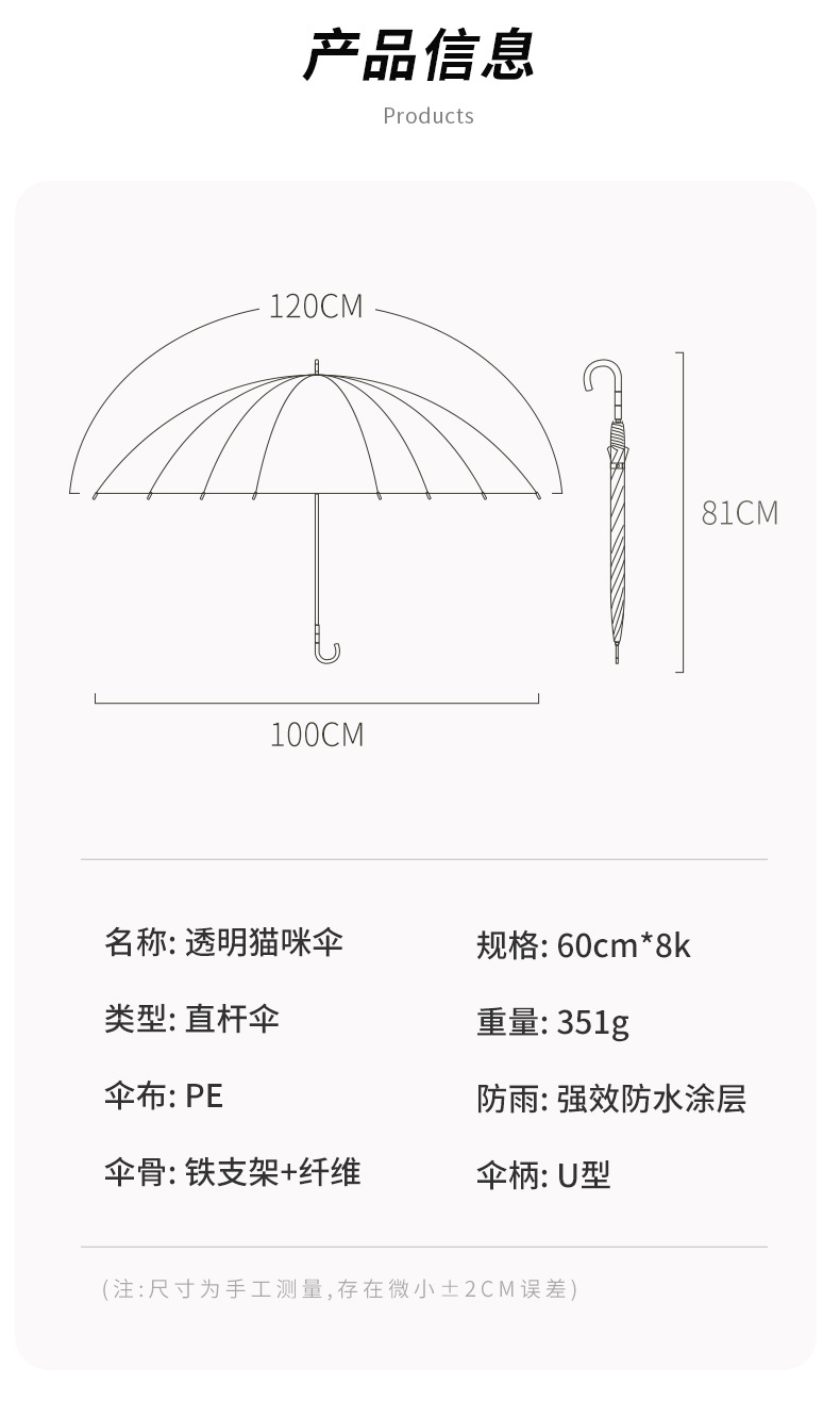 小红书热销爆款雨伞可爱猫咪透明雨伞ins长柄伞防风防雨塑料伞