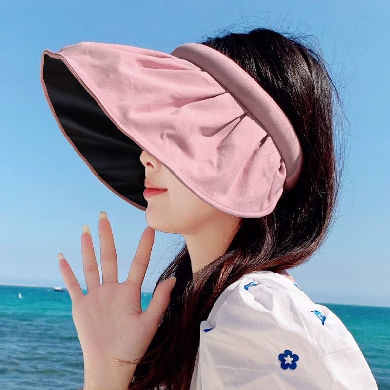 黑胶贝壳防晒帽女夏季防紫外线百搭遮阳帽子冰丝大帽檐空顶帽