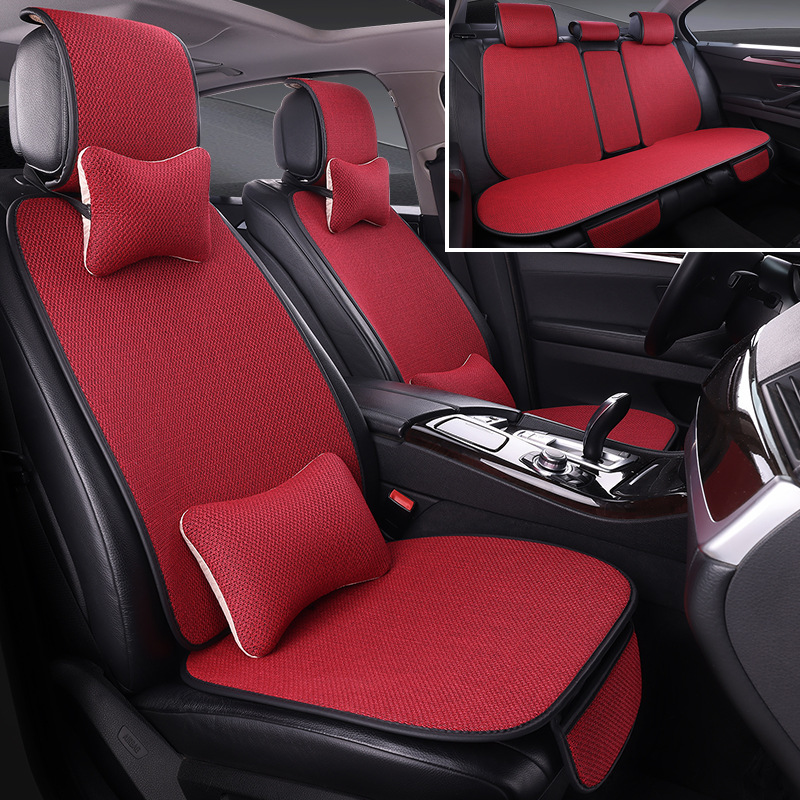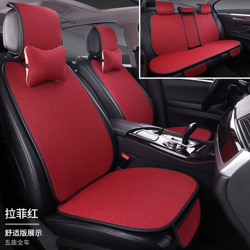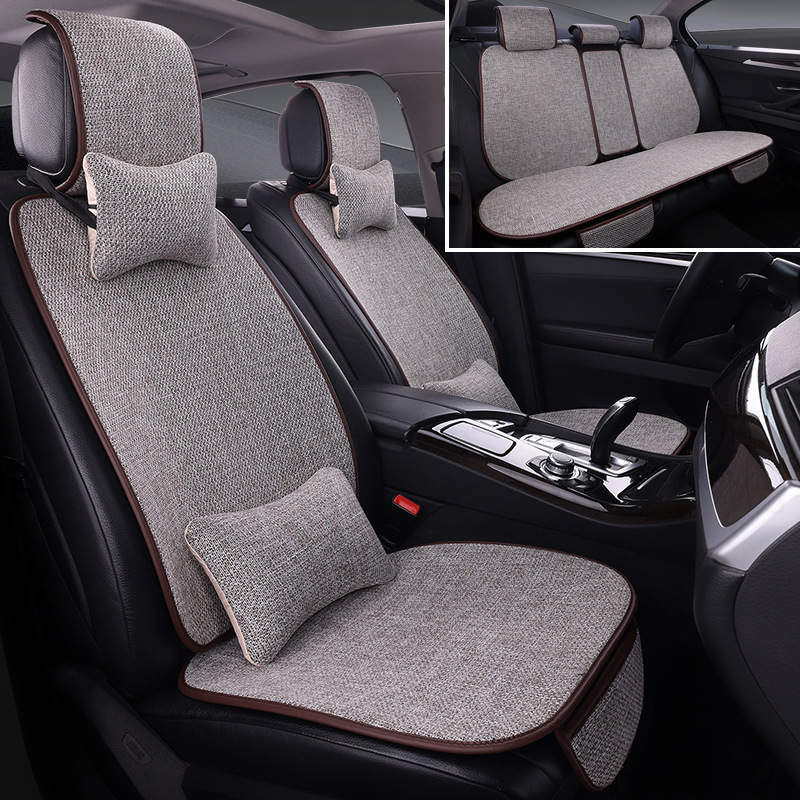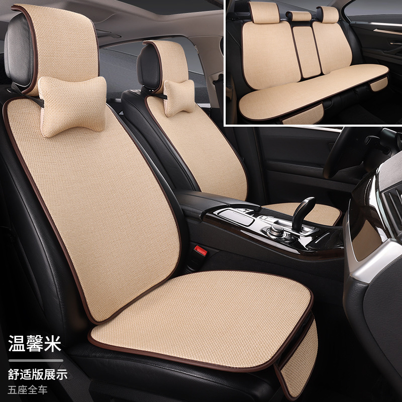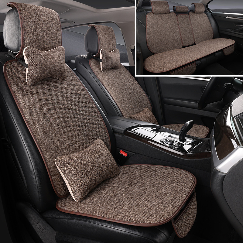 批发汽车坐垫四季通用亚麻连体布艺七件套五座全套全包