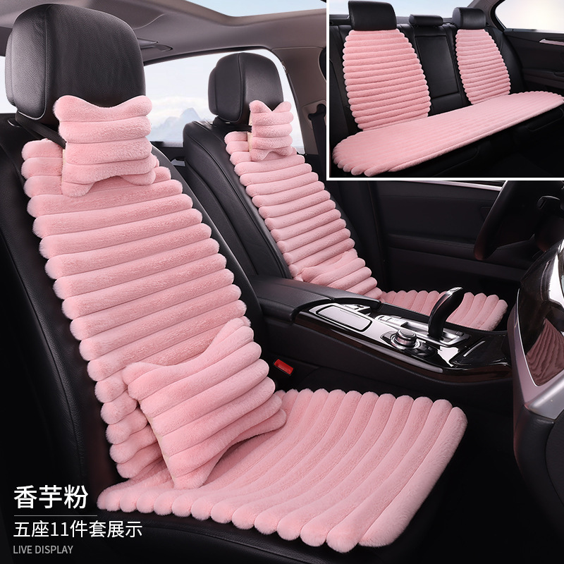 冬季横格毛绒七件套整车皮毛一体保暖毛垫加厚通用汽车坐座垫