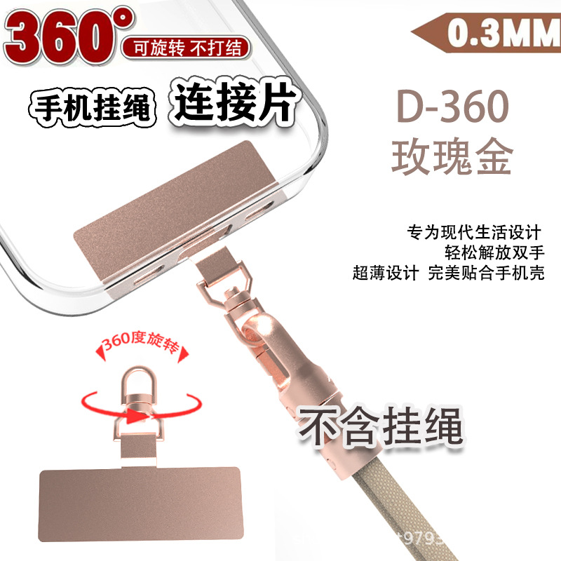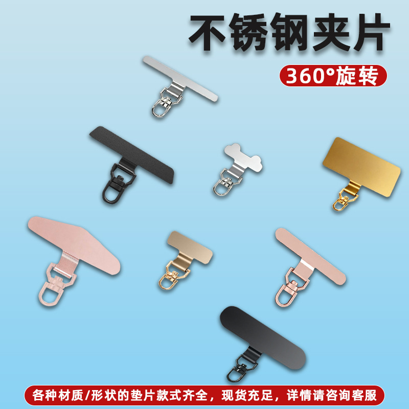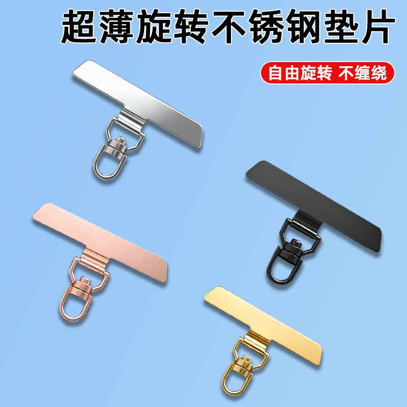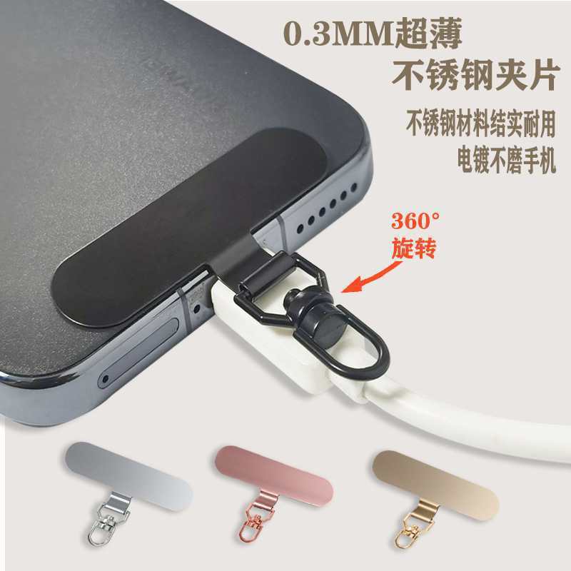 手机挂绳垫片不锈钢夹片360旋转超薄金属通用背贴固定绳连接挂片