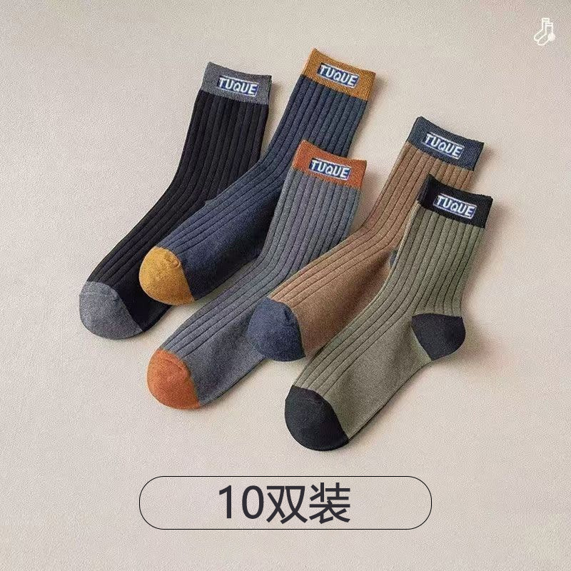 男士中筒袜秋冬运动吸汗透气经典日系拼色字母百搭青年学生运动袜