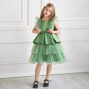 2025儿童礼服女童拼接花童礼服金丝布公主裙婚纱蓬蓬礼服裙演出服