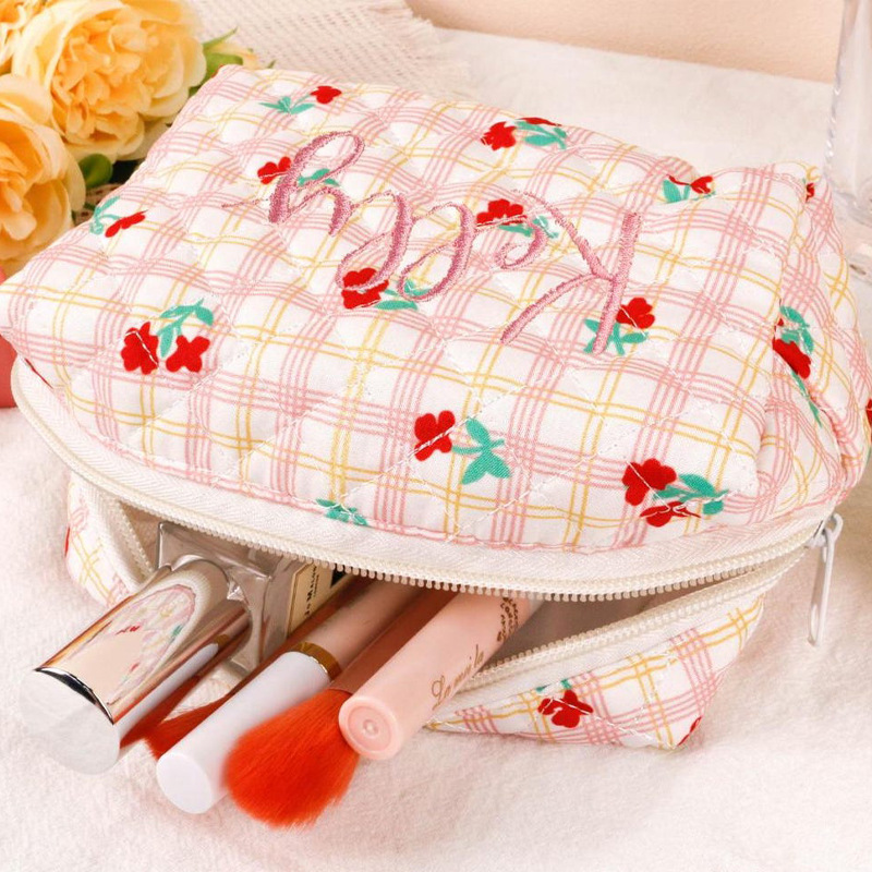 个性化花卉首饰化妆品收纳包花朵印花PU皮大容量防水便携女士款