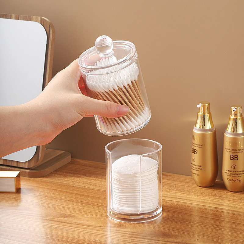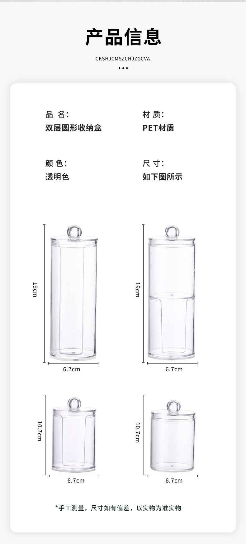 多功能亚克力棉签盒双层圆形卸妆棉盒家用透明收纳盒化妆棉收纳筒