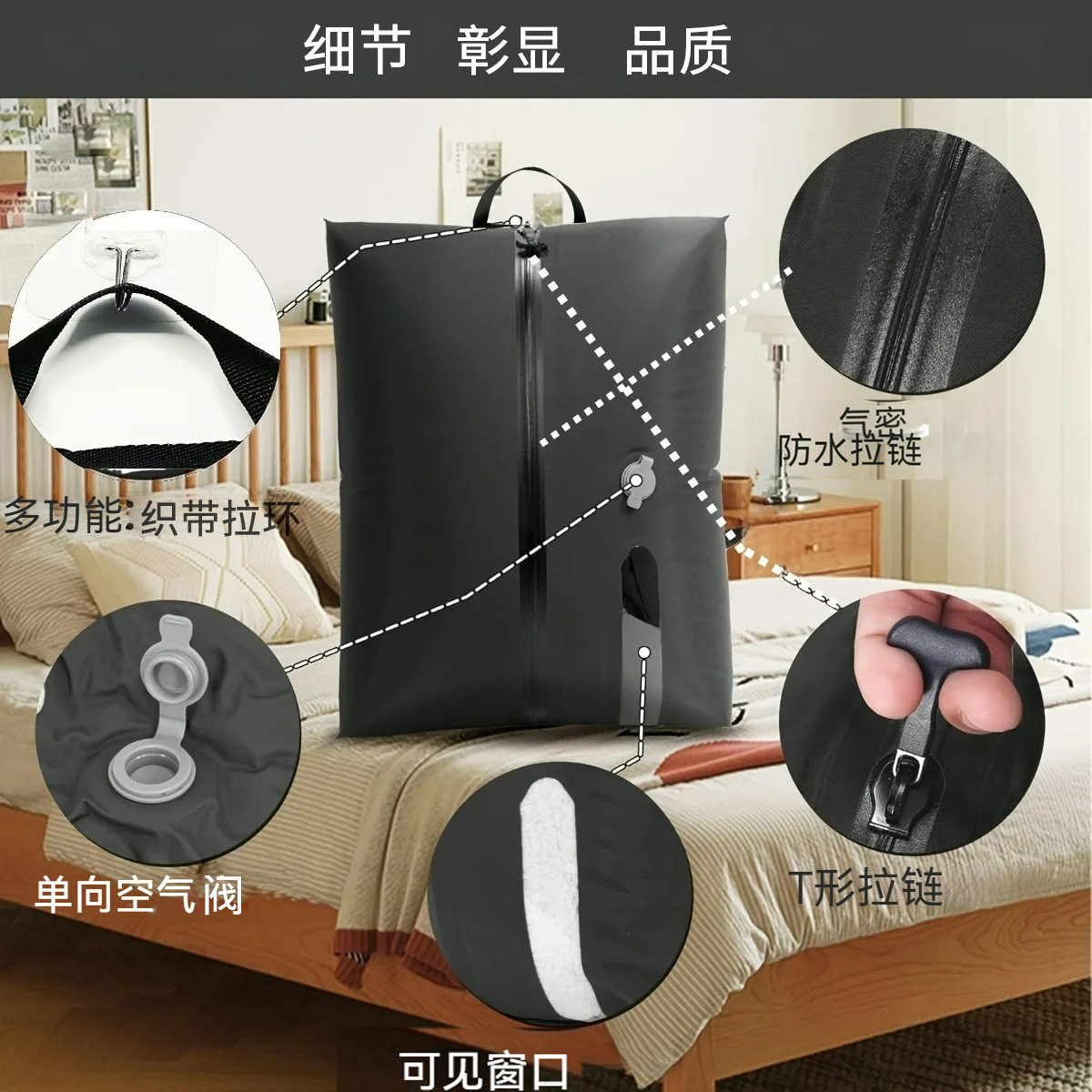 新款跨境拉链真空防水袋装耐磨压缩袋户外旅行收纳扩容包