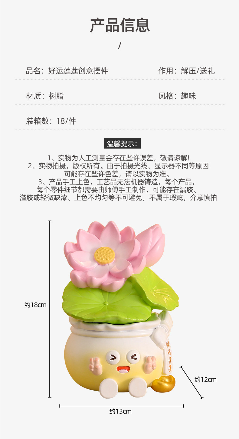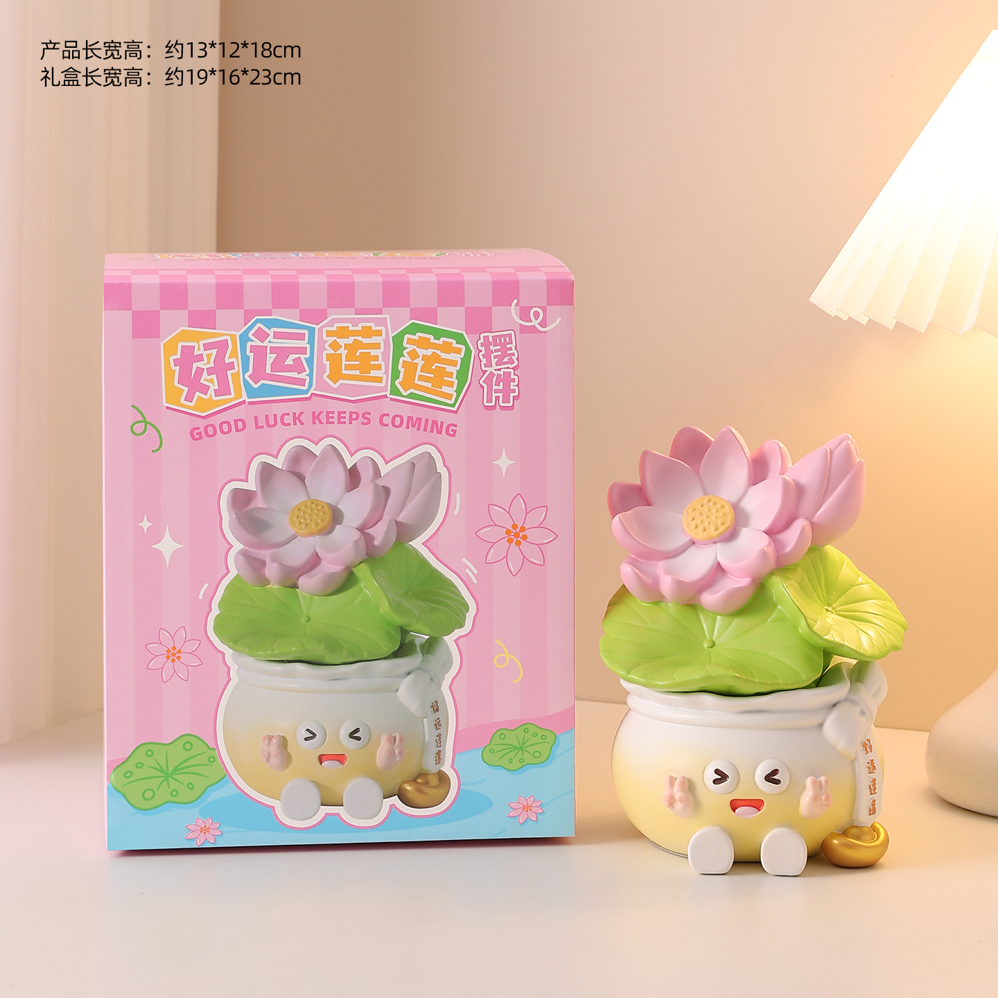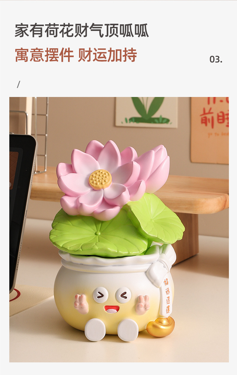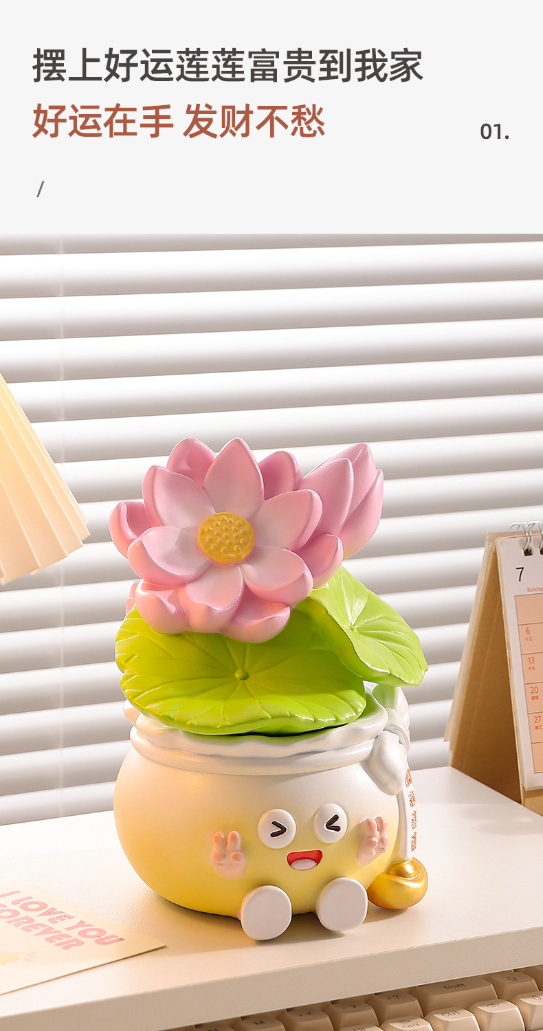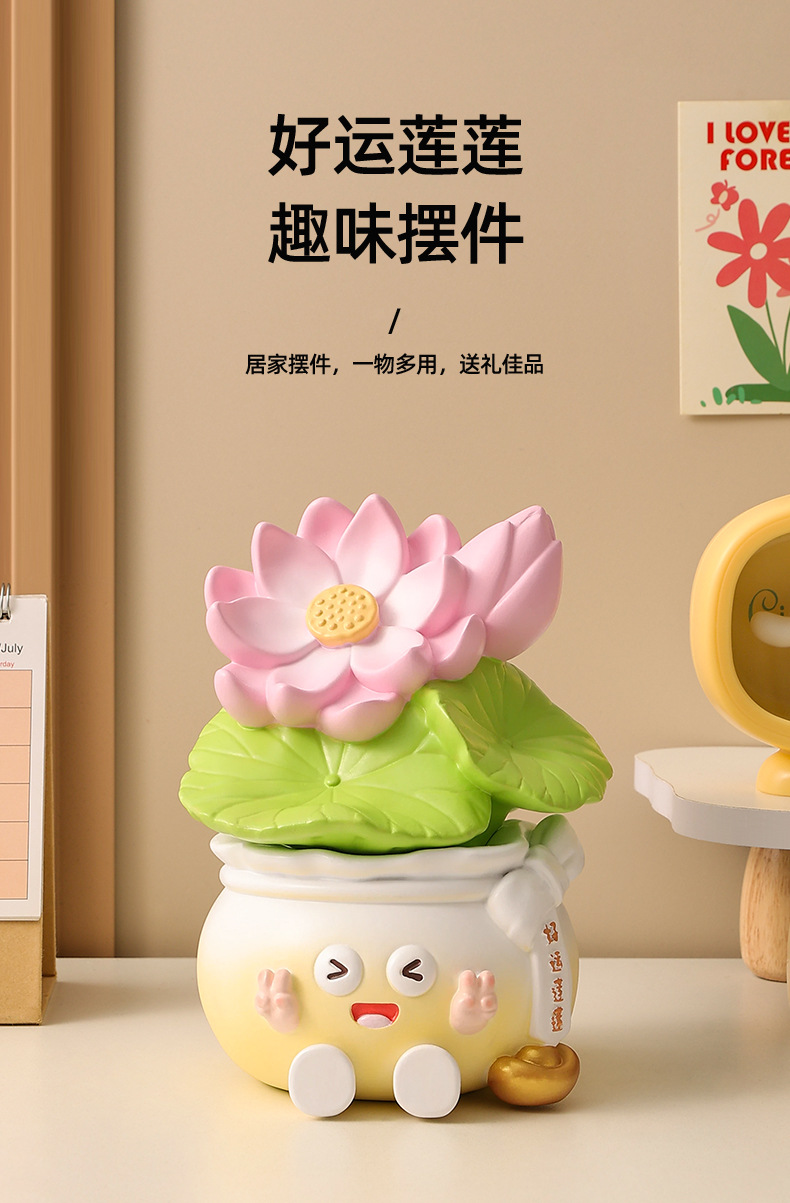 新款创意好运莲莲树脂摆件家居装饰乔迁新居布置办公桌面创意礼品