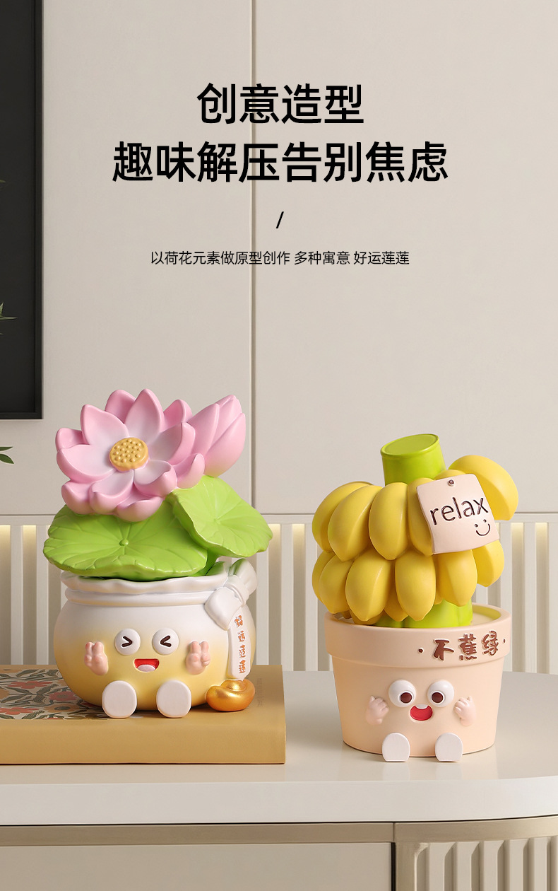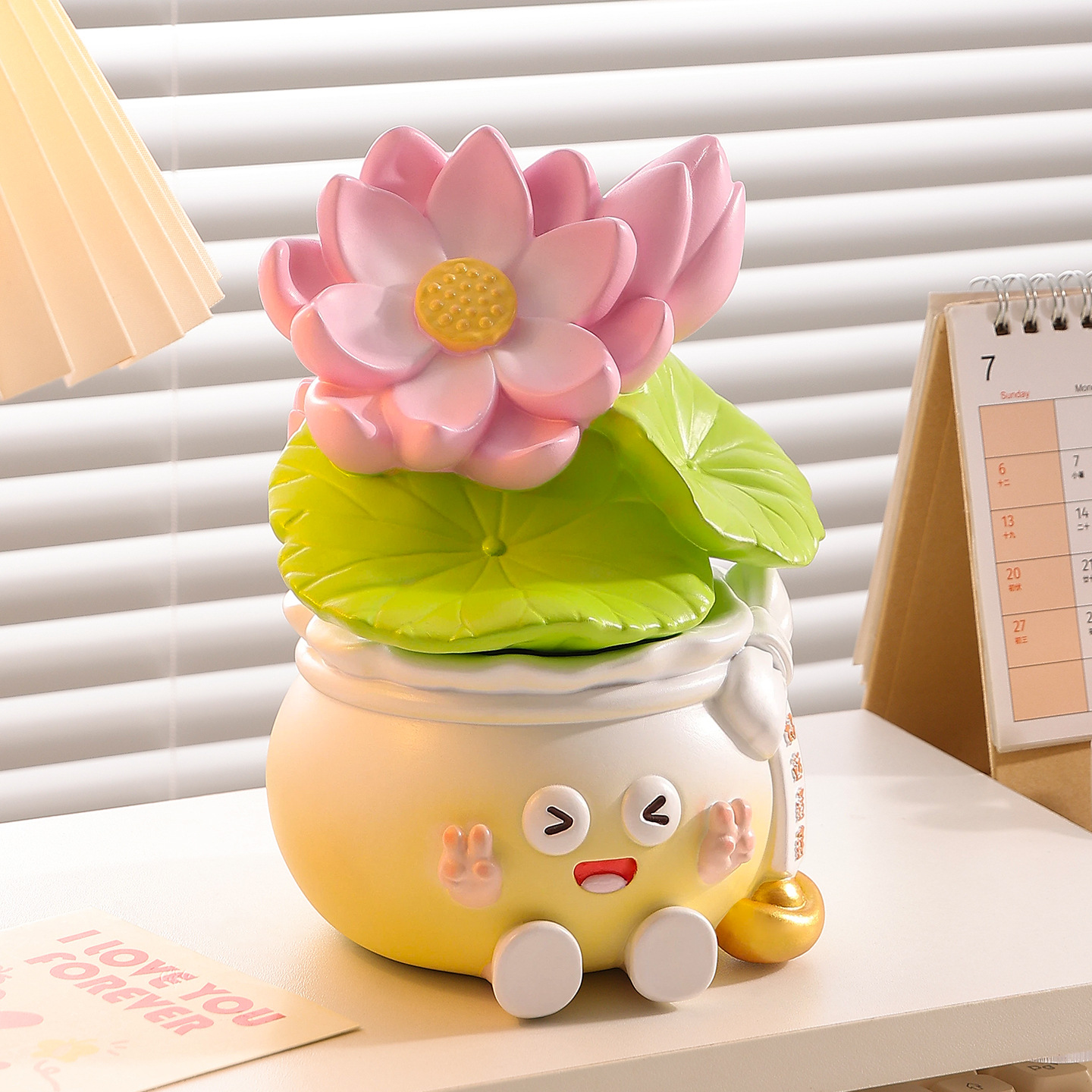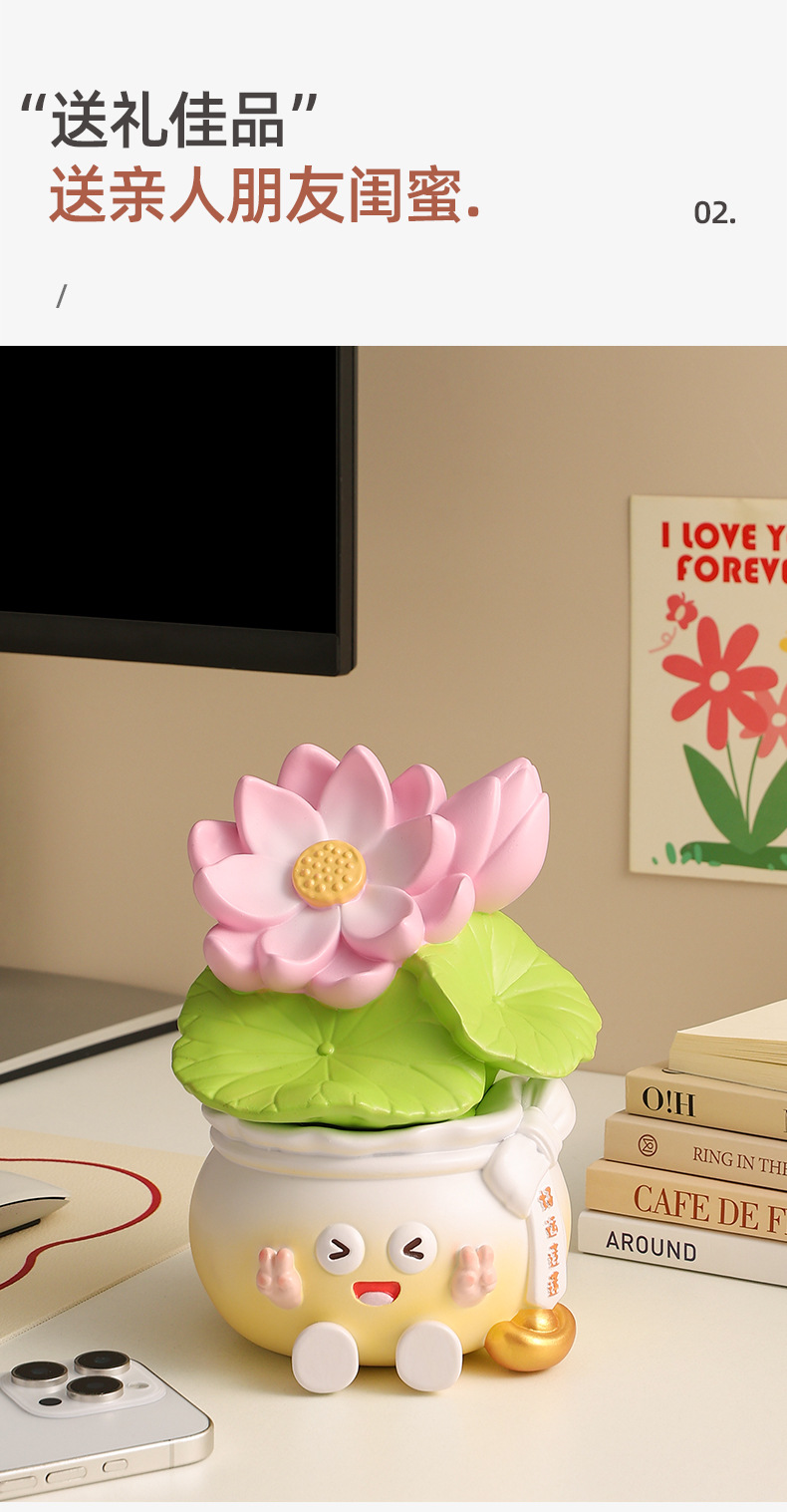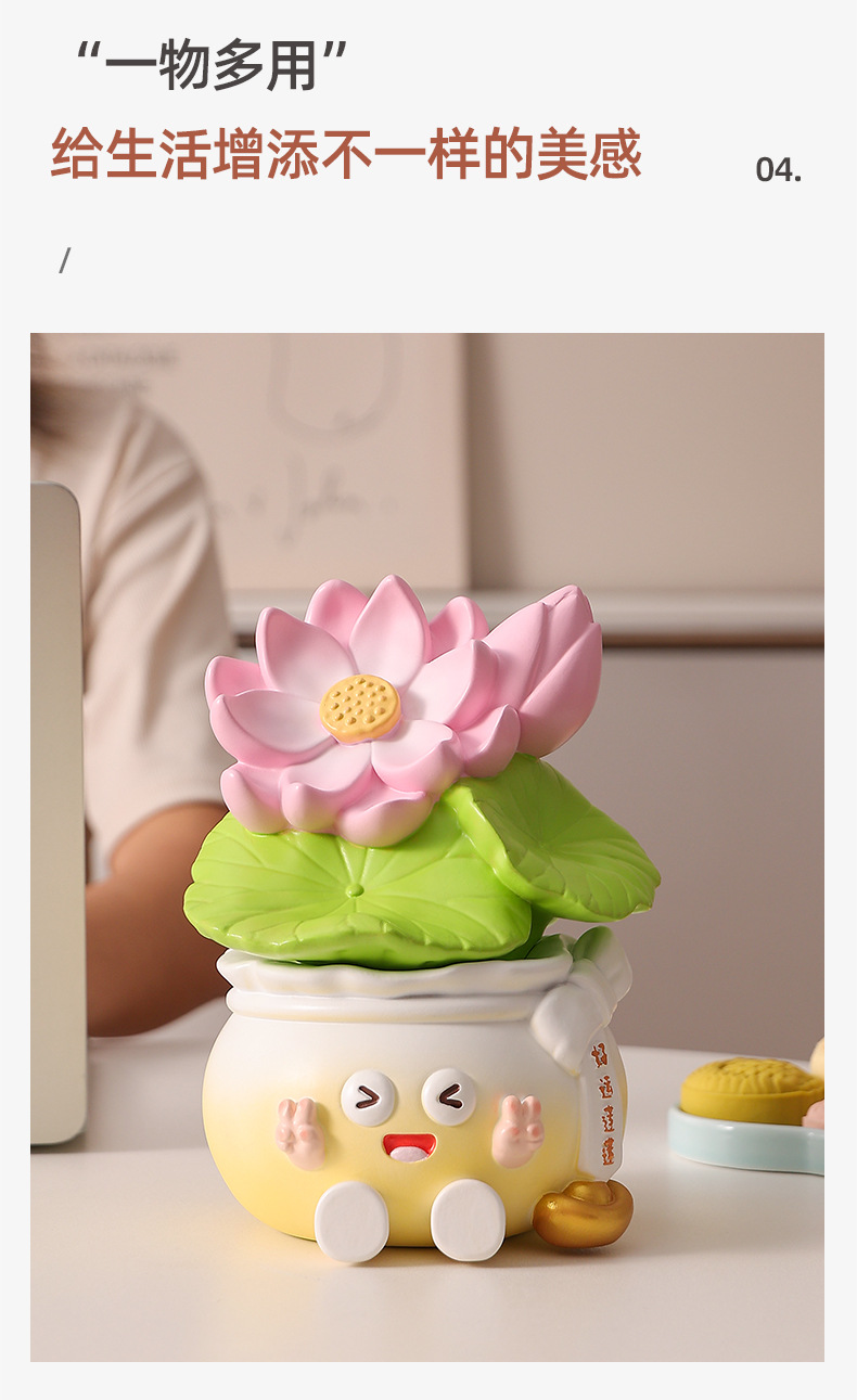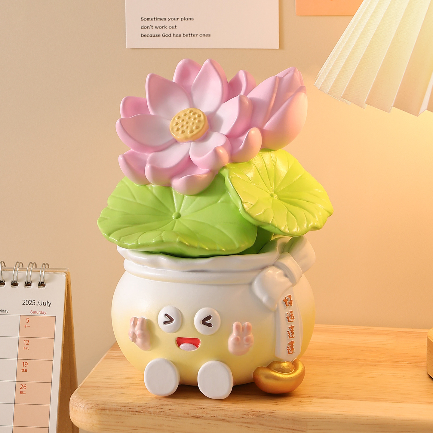 新款创意好运莲莲树脂摆件家居装饰乔迁新居布置办公桌面创意礼品