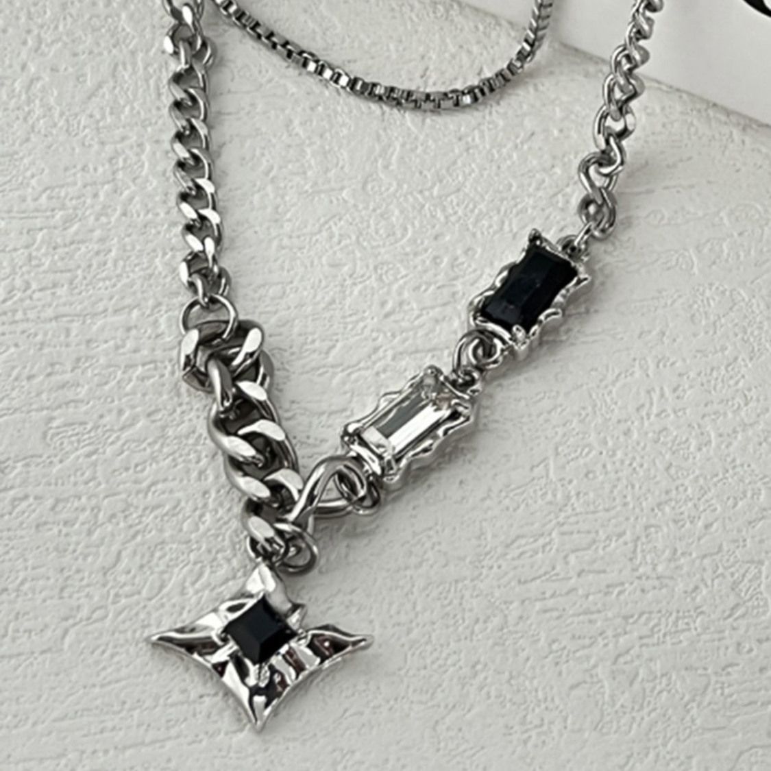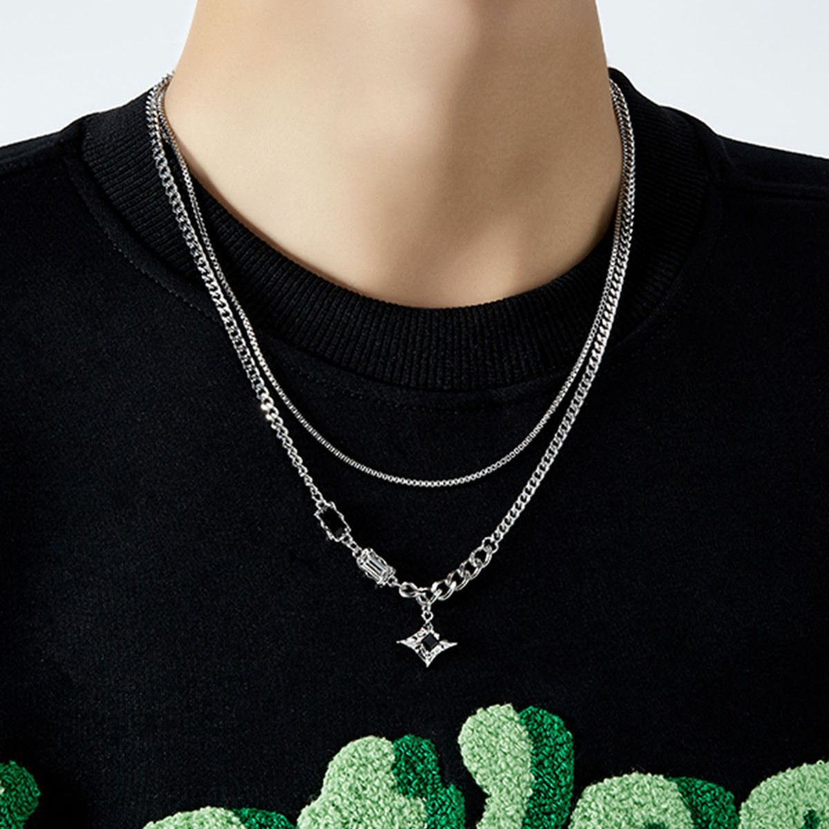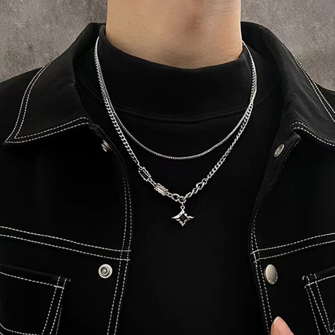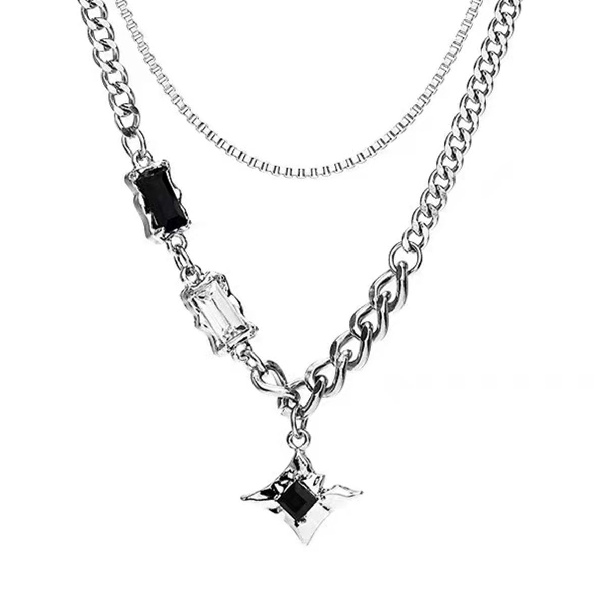 王嘉尔同款项链男款潮流四芒星双层卫衣锁骨链高级感男士小众